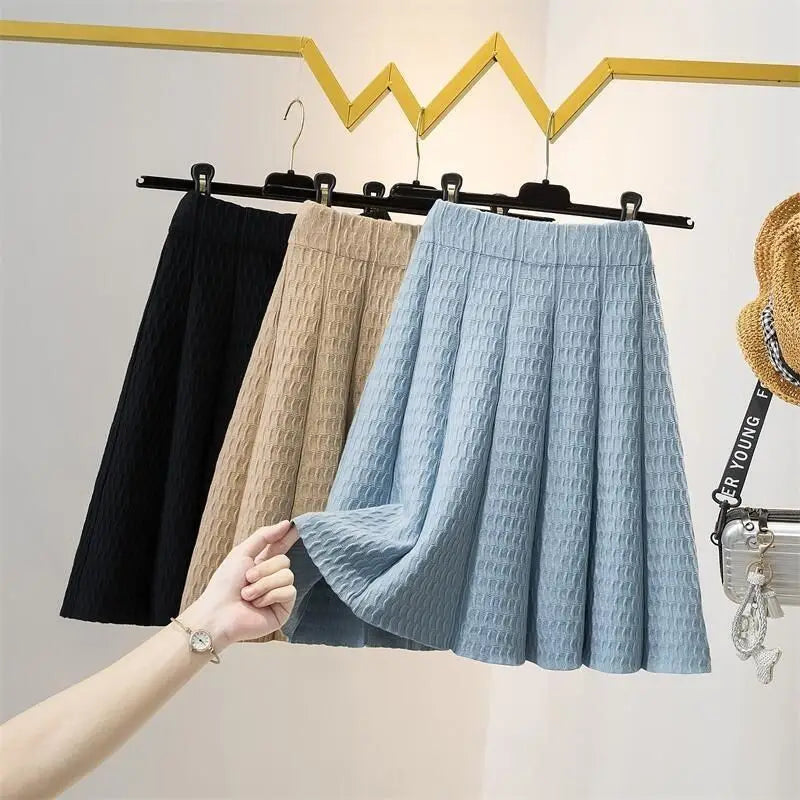 Yipinpay and Winter High Waist Knitted Half Skirt Women Versatile A-line Skirt Pleated Skirt Wearing Short Skirt Outside Women