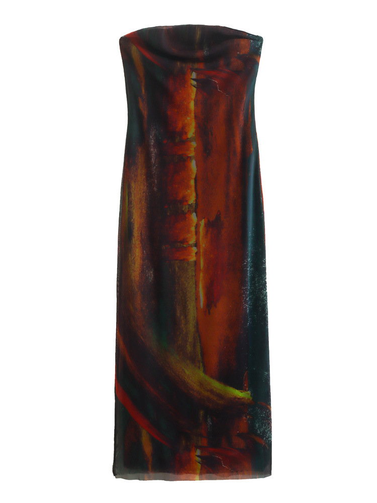 Yipinpay And Winter New Style Printed Silk Mesh Slim And Breast Style Long Dress