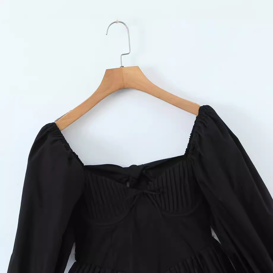 Yipinpay And Winter New Three-Dimensional Steel Trap Chest Pleated Back Long-Sleeved Dress