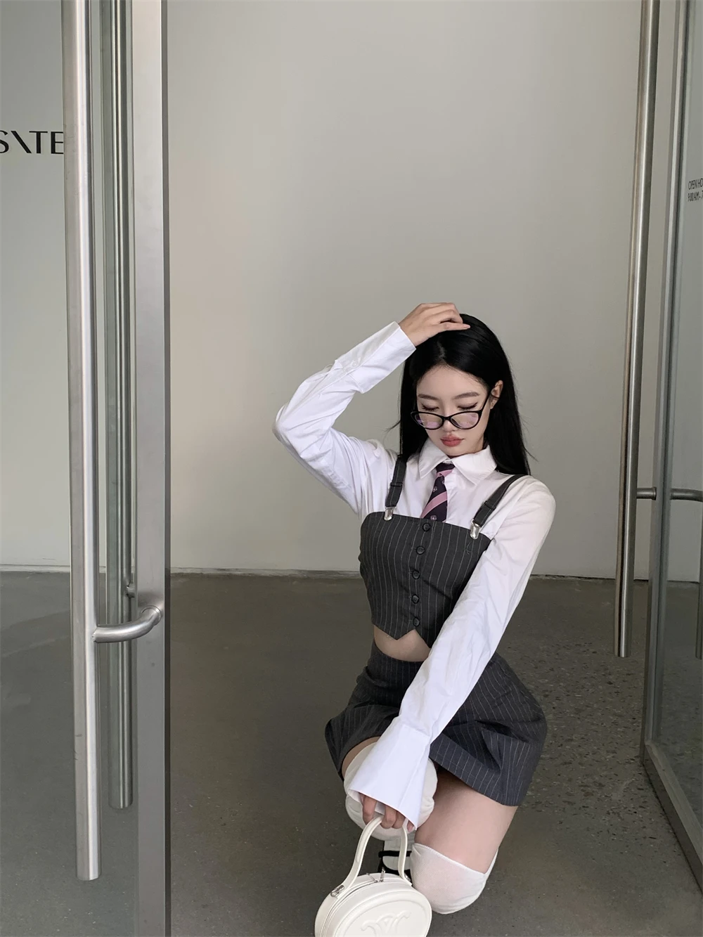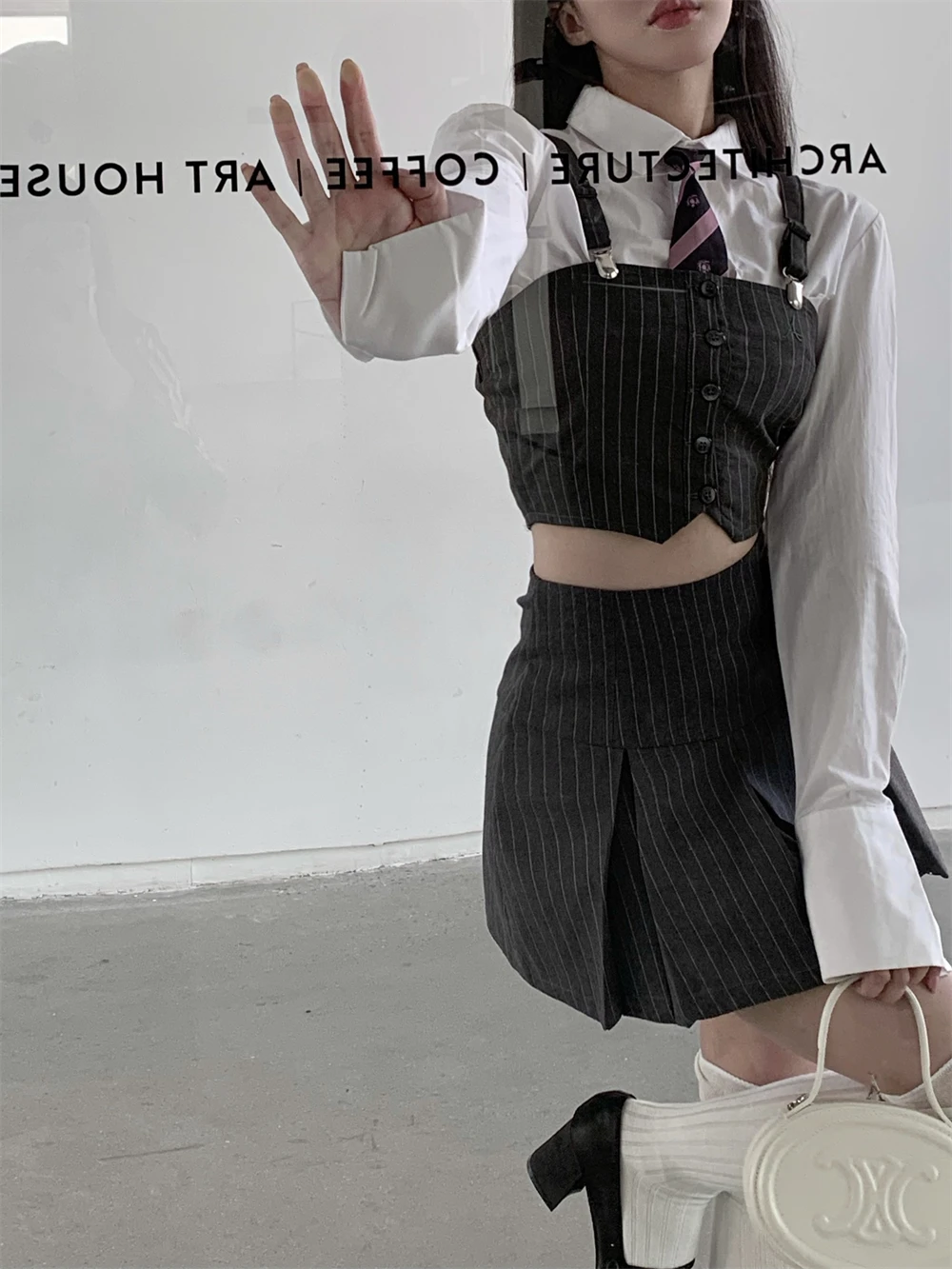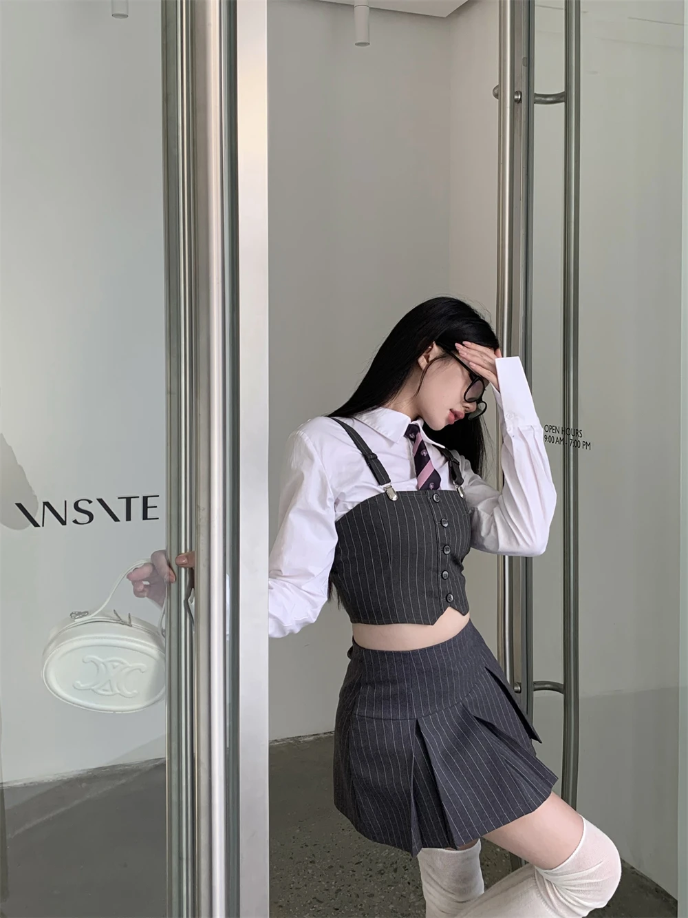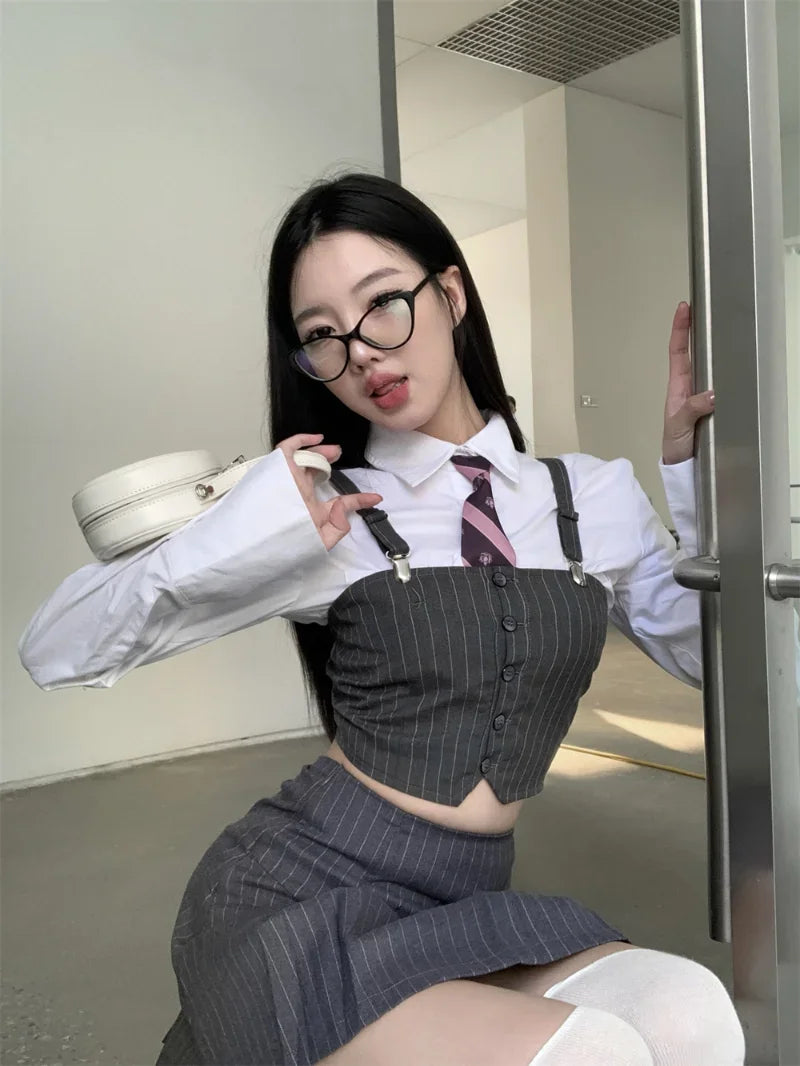 Yipinpay and Winter Sweet Hot Girls American College Style Suit Vest Long Sleeve Shirt with Tie Short Skirt Fashion 3-Piece Suit