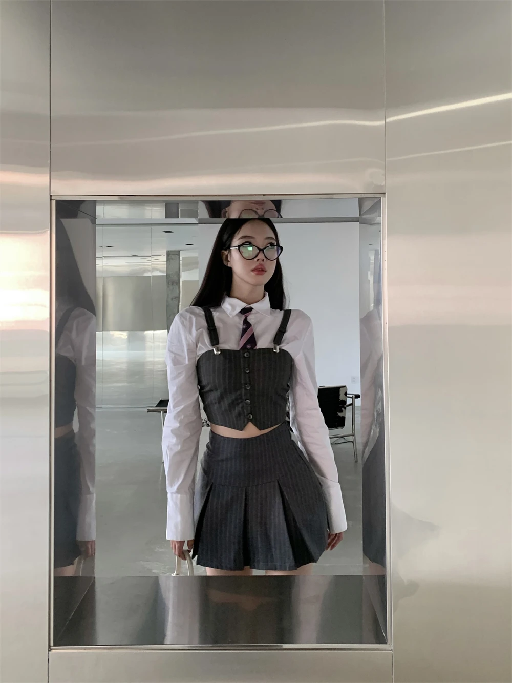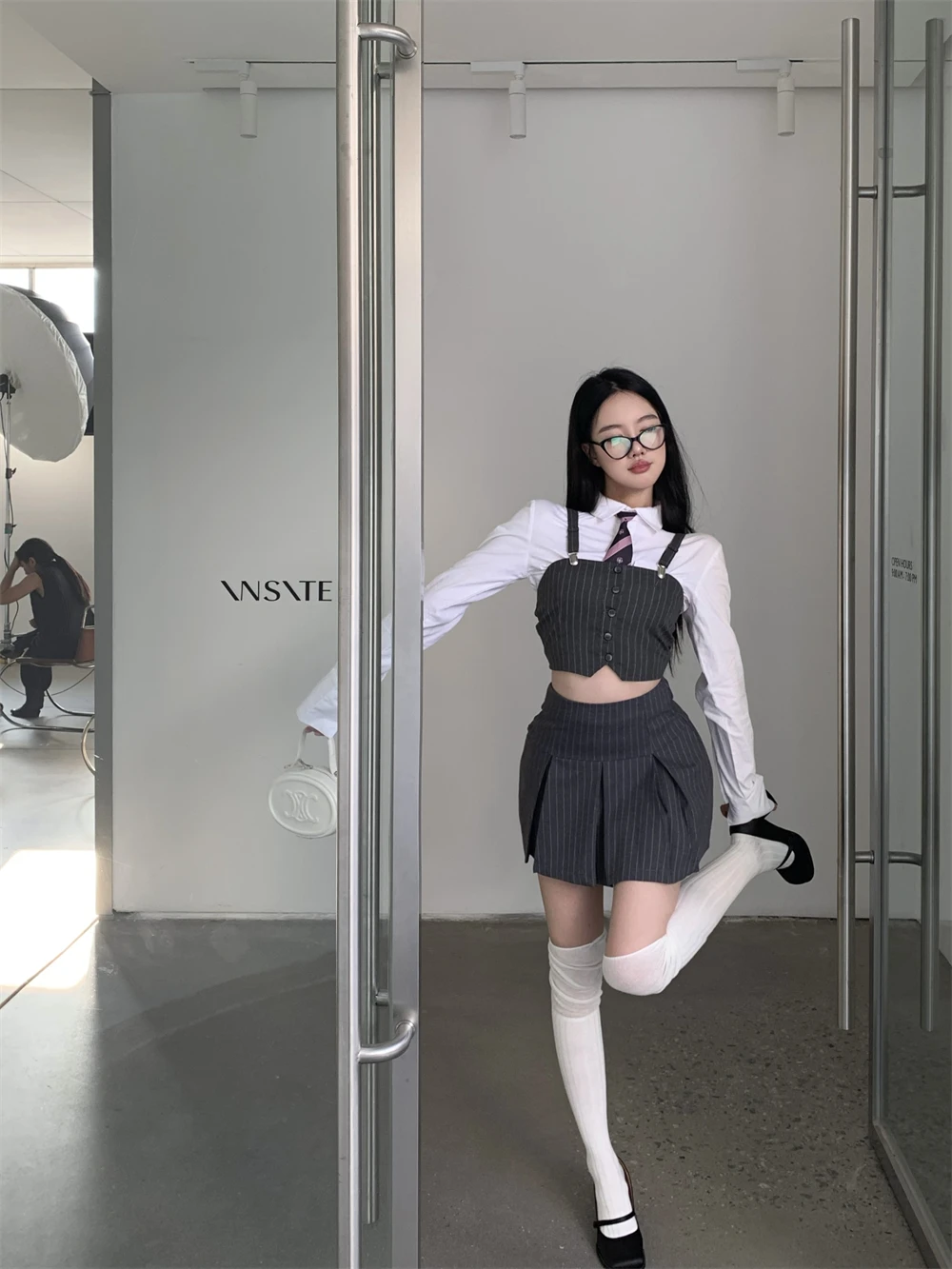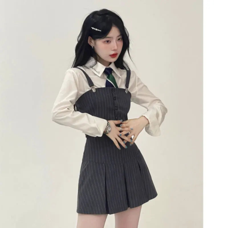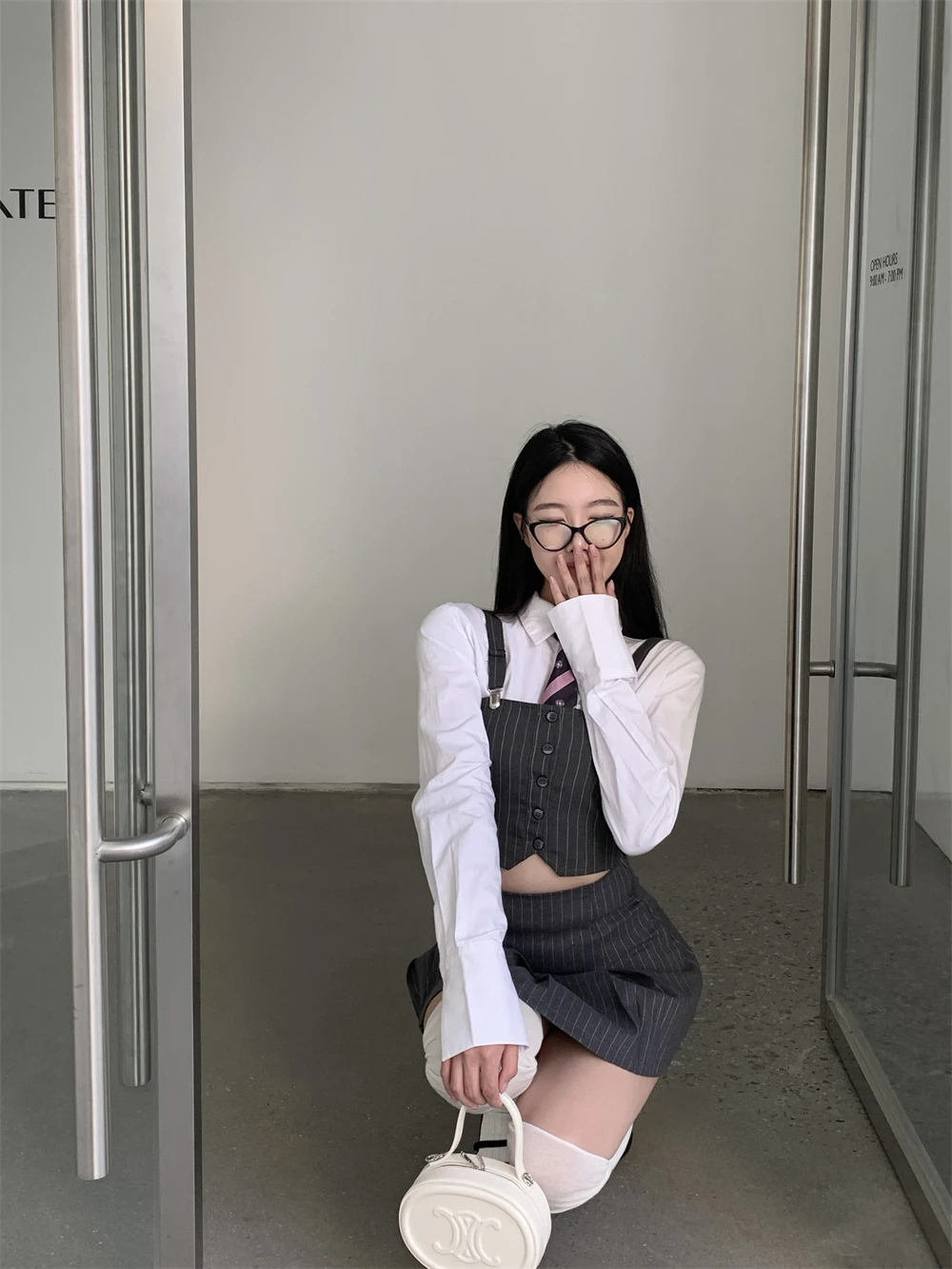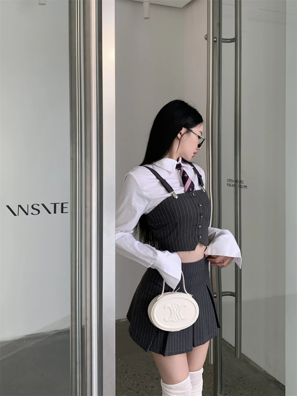 Yipinpay and Winter Sweet Hot Girls American College Style Suit Vest Long Sleeve Shirt with Tie Short Skirt Fashion 3-Piece Suit