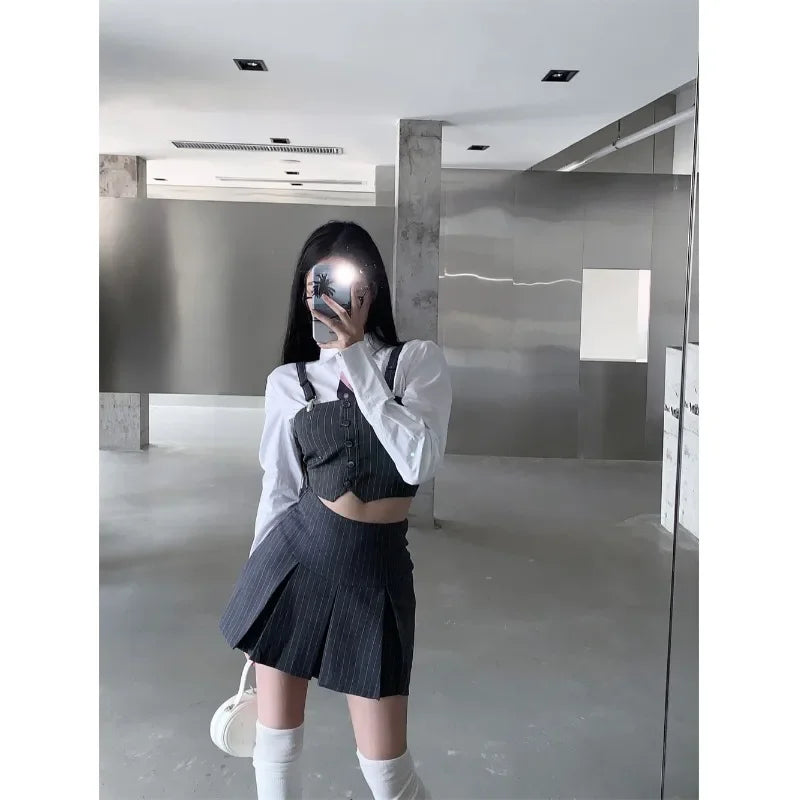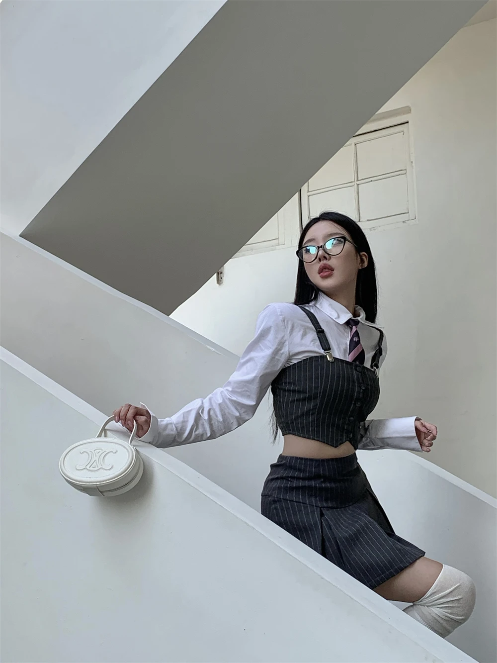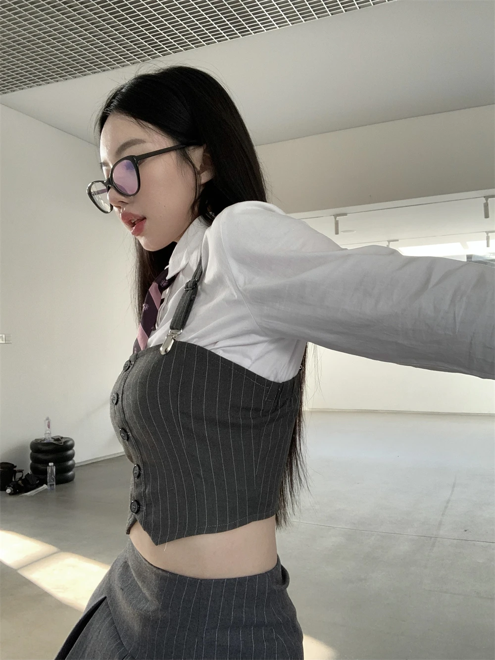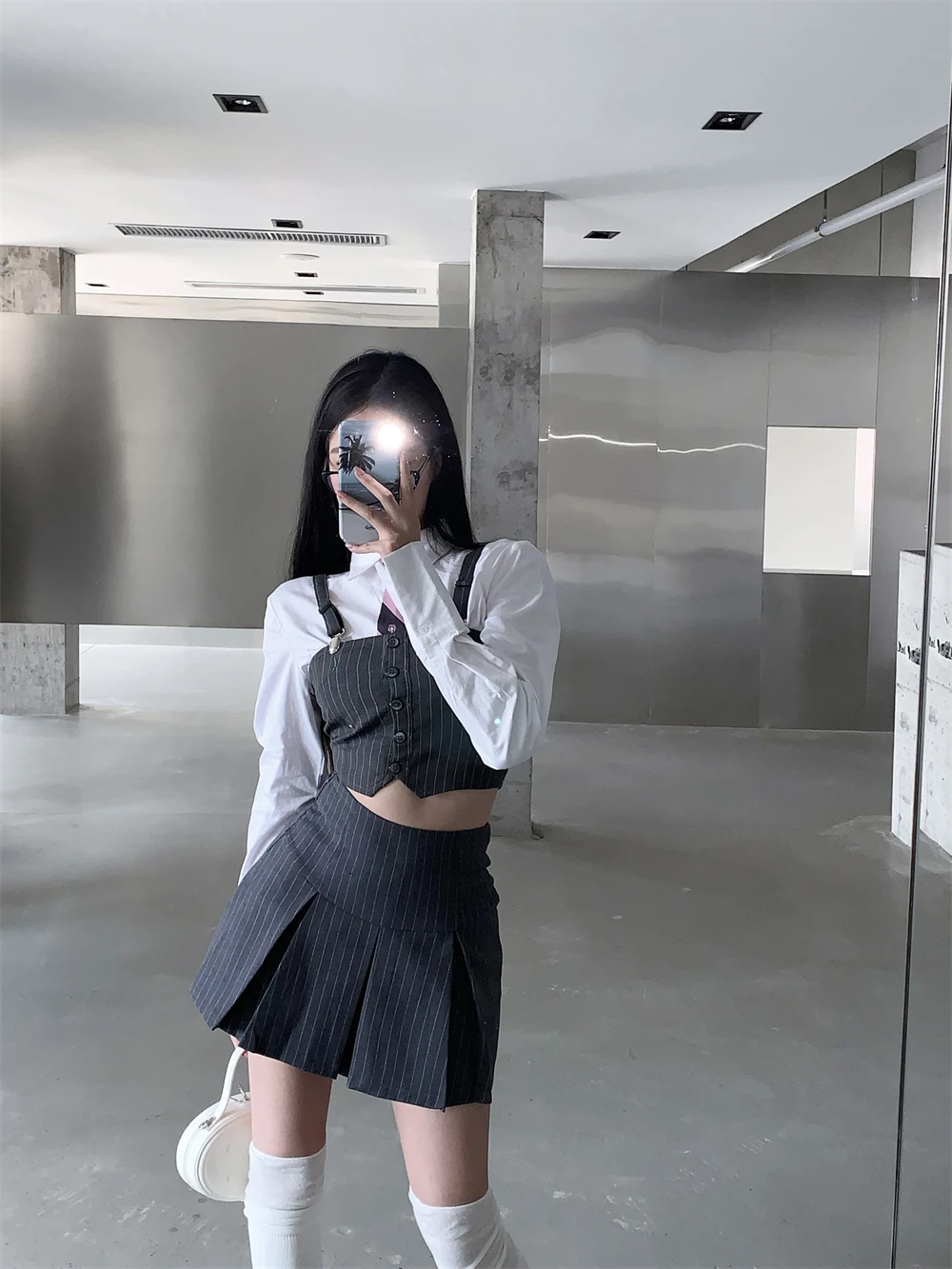 Yipinpay and Winter Sweet Hot Girls American College Style Suit Vest Long Sleeve Shirt with Tie Short Skirt Fashion 3-Piece Suit