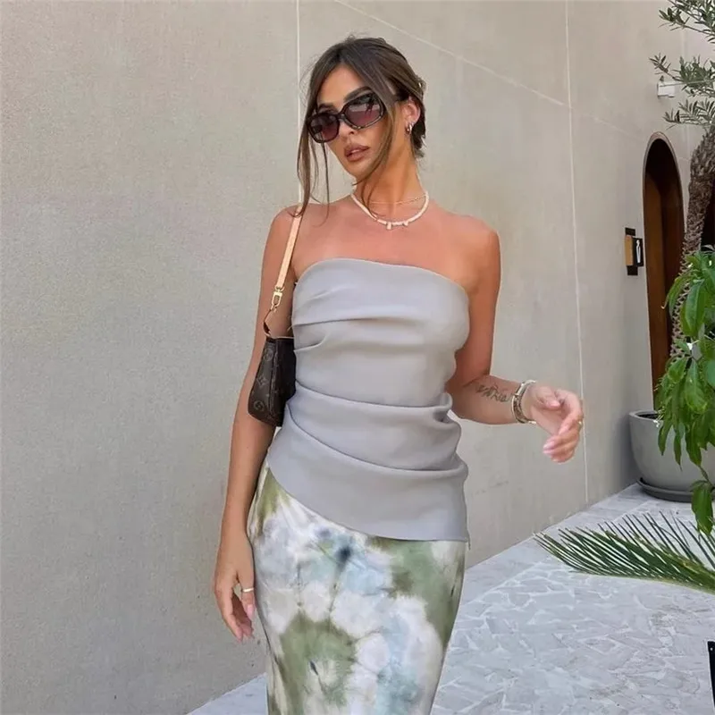Yipinpay Asymmetric Corset Top Women Off Shoulder Bustier Top Woman Pleated Sleeveless Sexy Tops Woman 2023 Backless Summer Tops