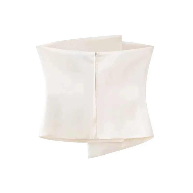 Yipinpay Asymmetrical White Top Women Satin Off Shoulder Tops For Women Backless Summer Crop Tops Woman Strapless Sexy Party Top