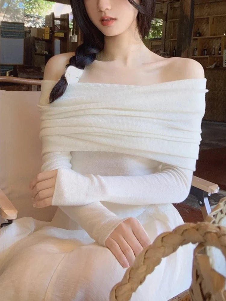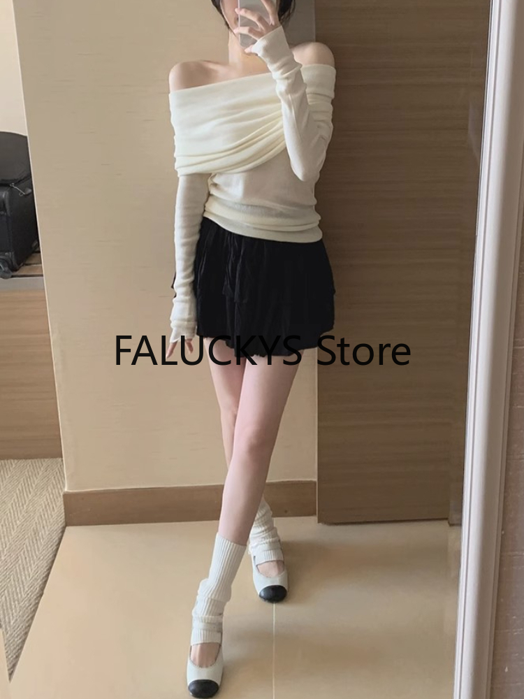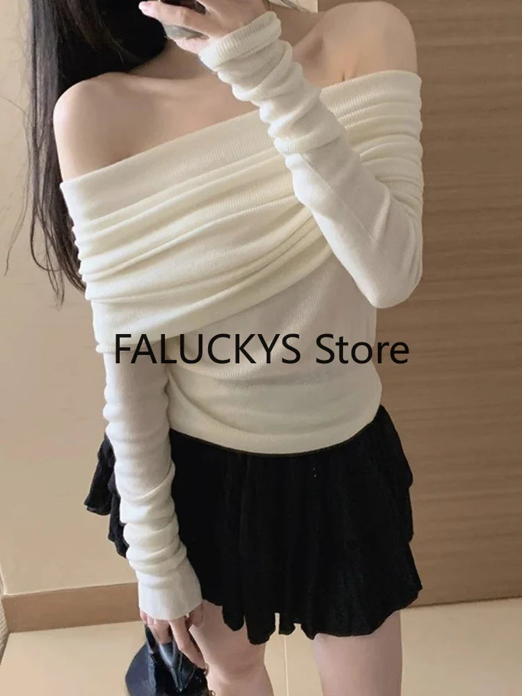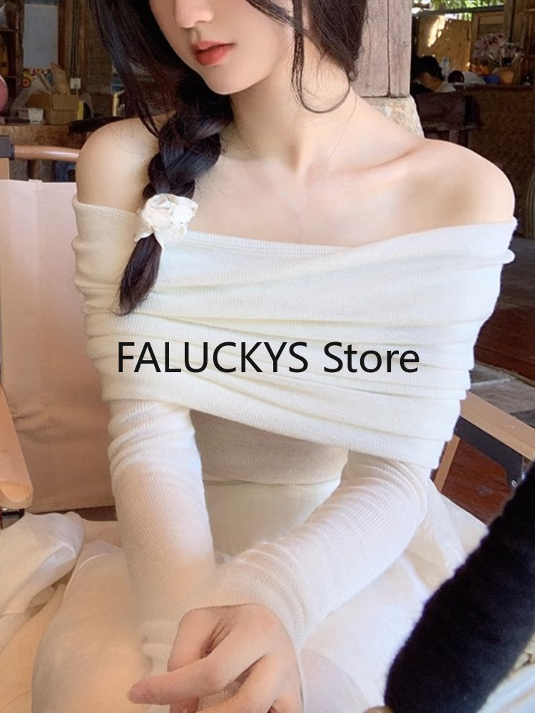 Yipinpay Autumn Elegant Sweet Blouse Office Lady Casual Long Sleeve Knitted Sweater Women Evening Party Slim Y2k Top Korean Fashion
