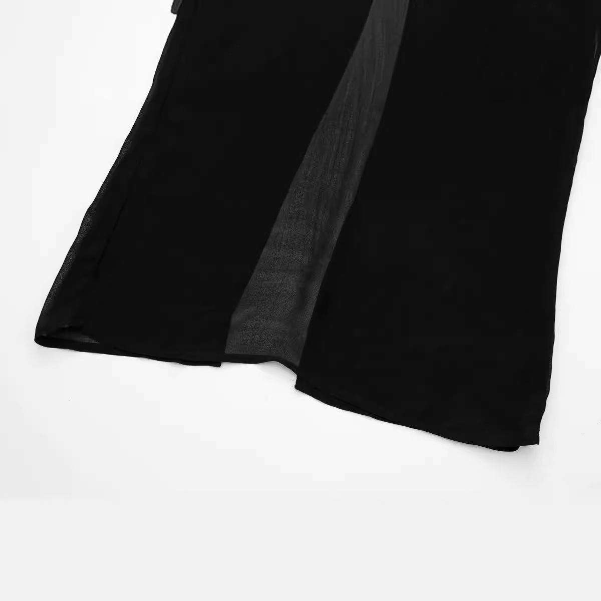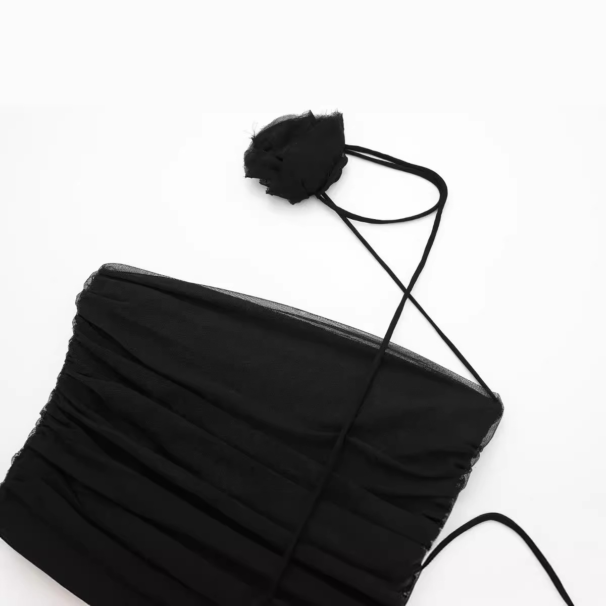 Yipinpay Autumn Flower Decorated Silk Net Pleated Dress 0881251