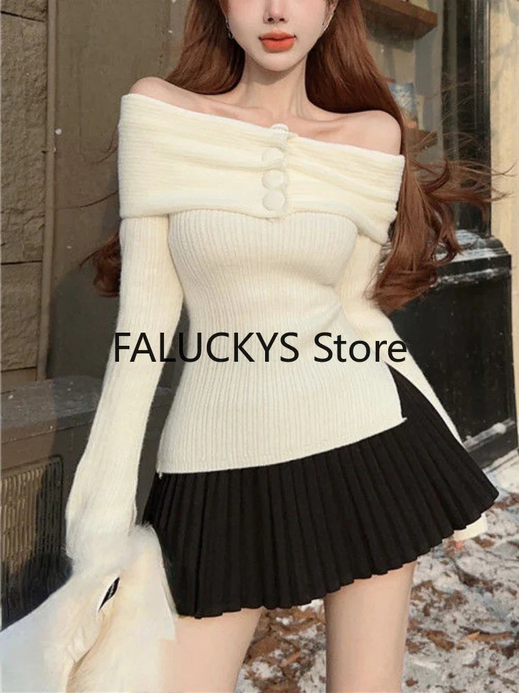 Yipinpay Autumn French Elegant Knitted Sweater Office Lady Casual Long Sleeve Blouse Women Party Sexy Y2K Top Korean Fashion Chic