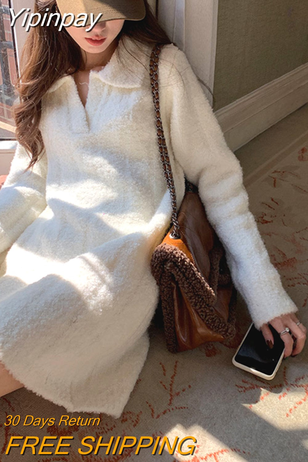 Yipinpay Autumn Knitted Y2k Mini Dress Elegant Sweater Woman Pure Color Korean Fashion Dress Casual Party Long Sleeve Dress Design