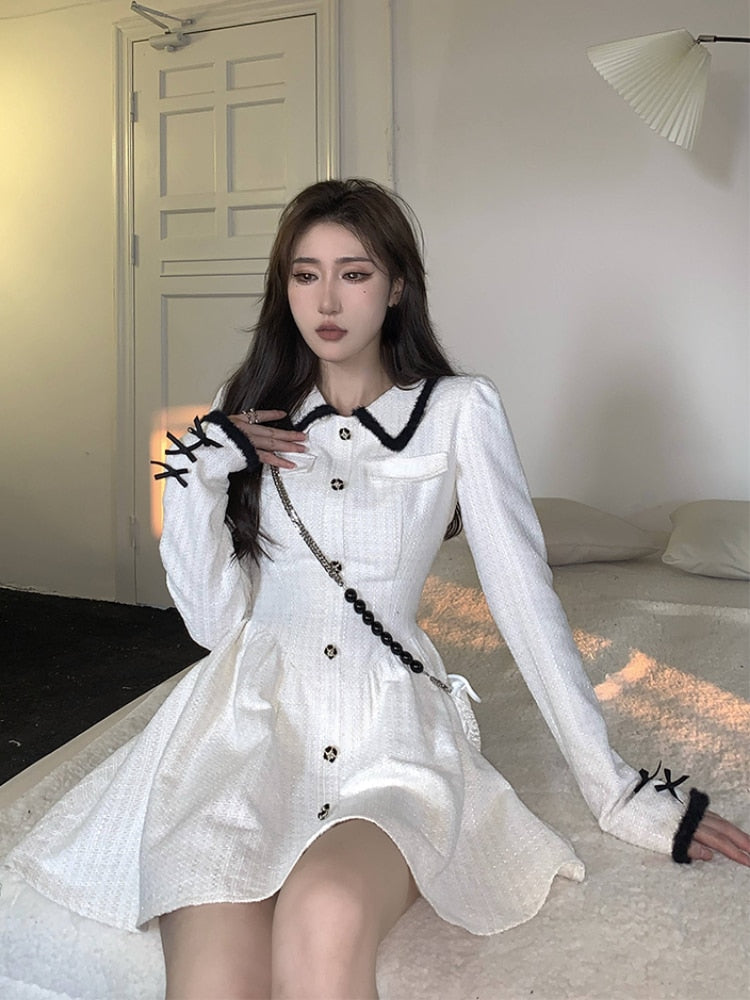 Yipinpay Autumn Pure Color Y2k Mini Dress Casual Elegant Short Party Dress Woman Slim Long Sleeve Korean Fashion Dress Design Chic