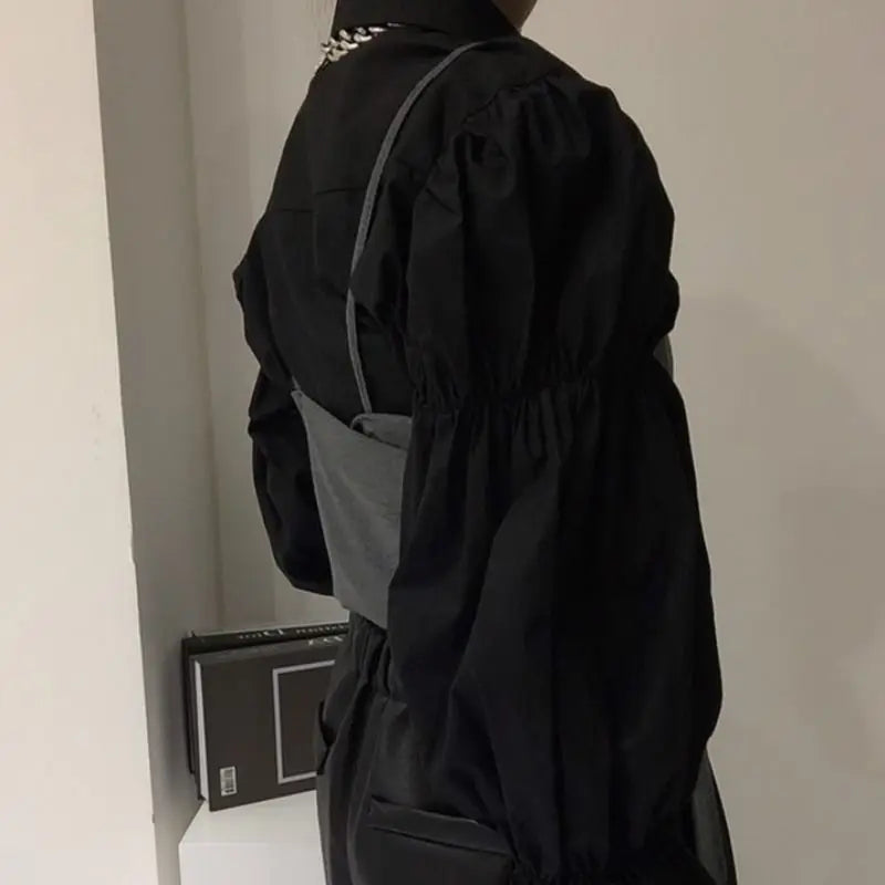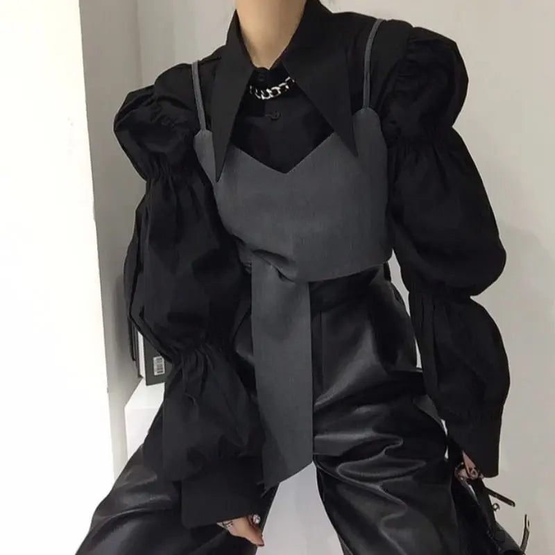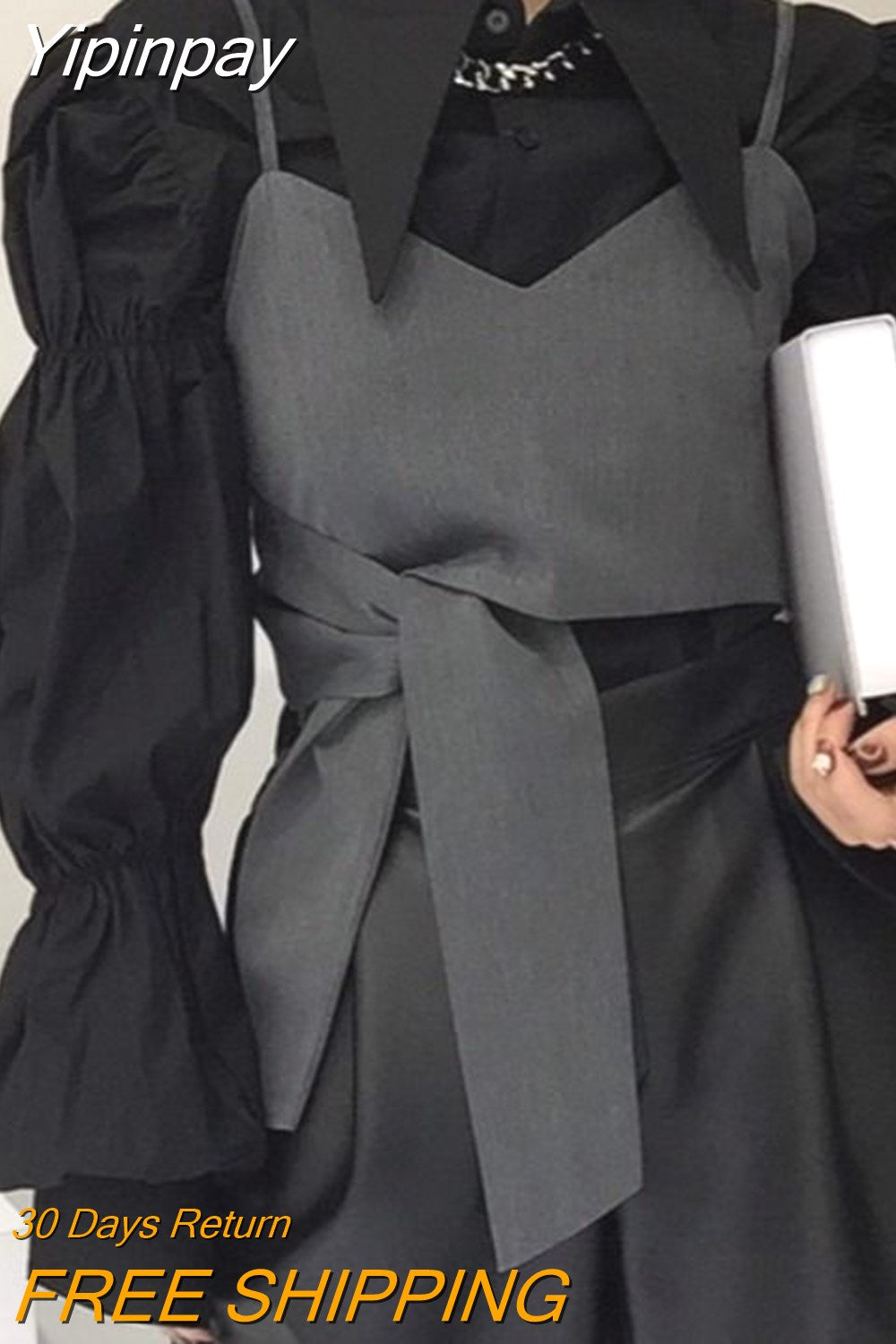 Yipinpay Autumn Turn Down Collar Shirt Lantern Sleeve Blouse Casual Top Bandage Grey Camisole Camisas De Mujer Blusas