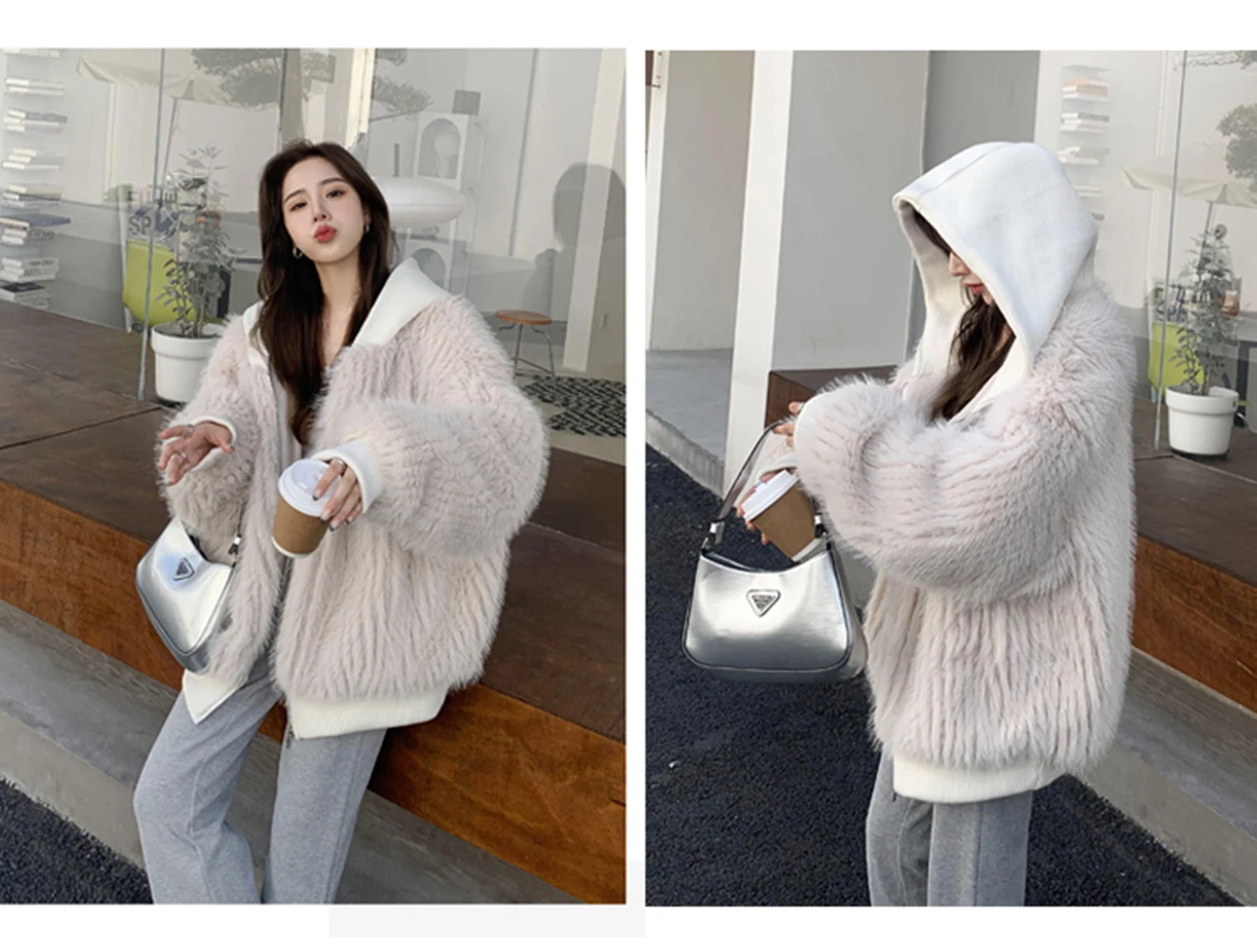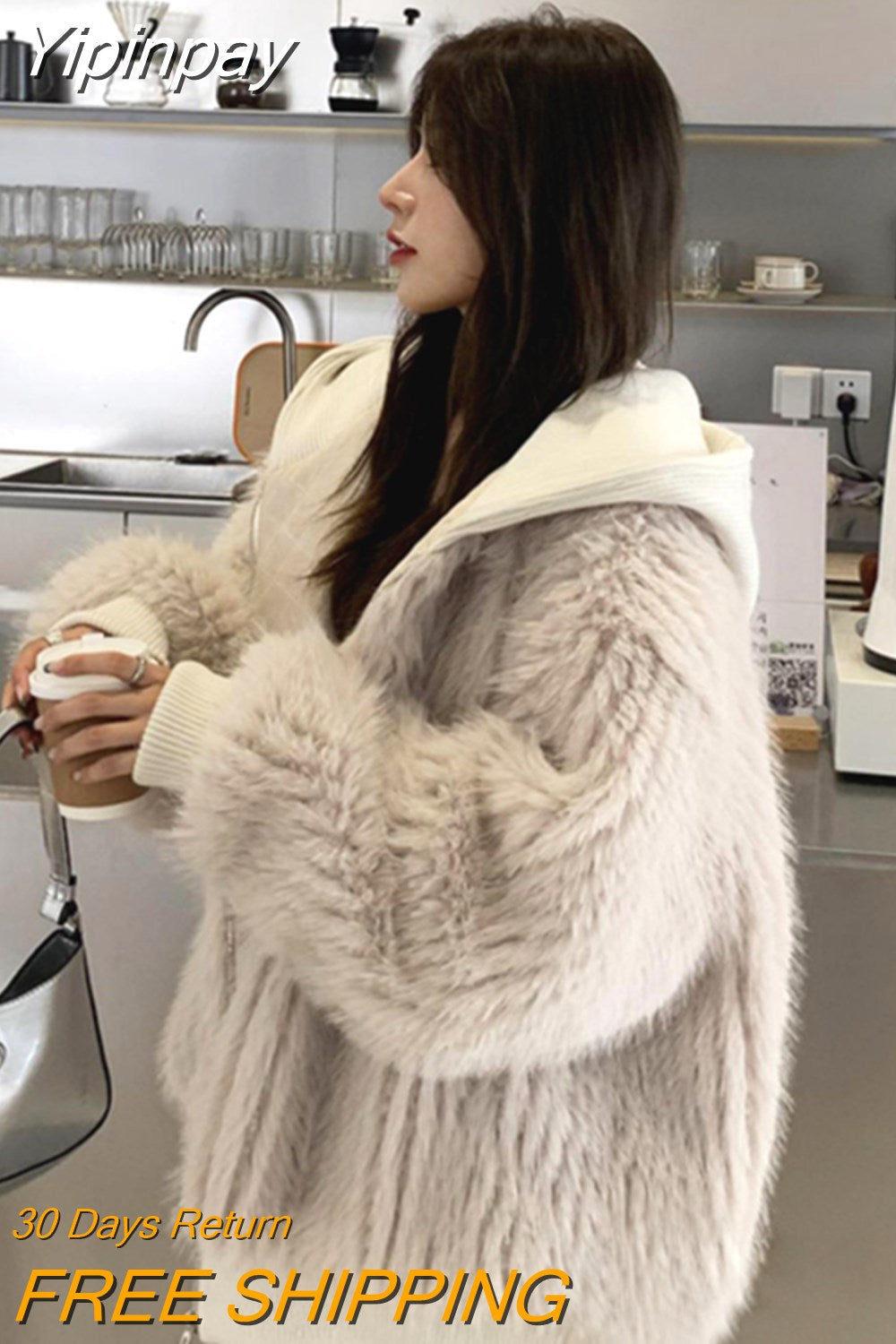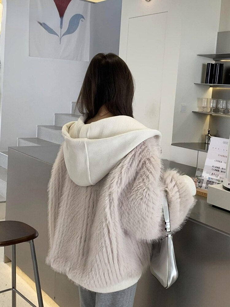 Yipinpay Autumn Winter Loose Casual Hairy Shaggy Soft Warm Faux Fur Coat Women with Hood Long Sleeve Korean Fashion 2023