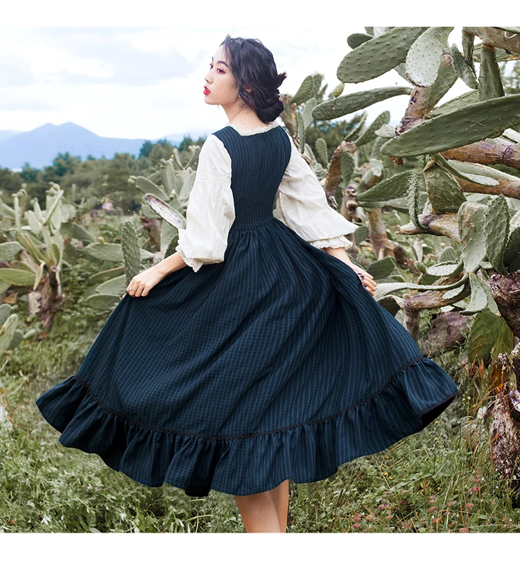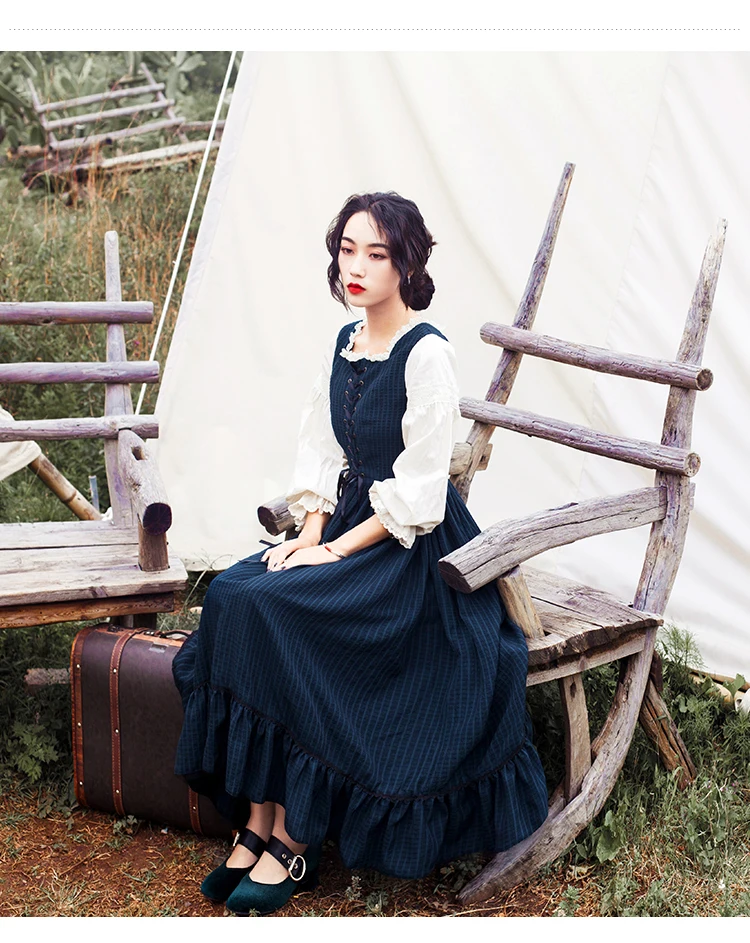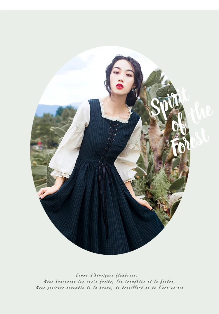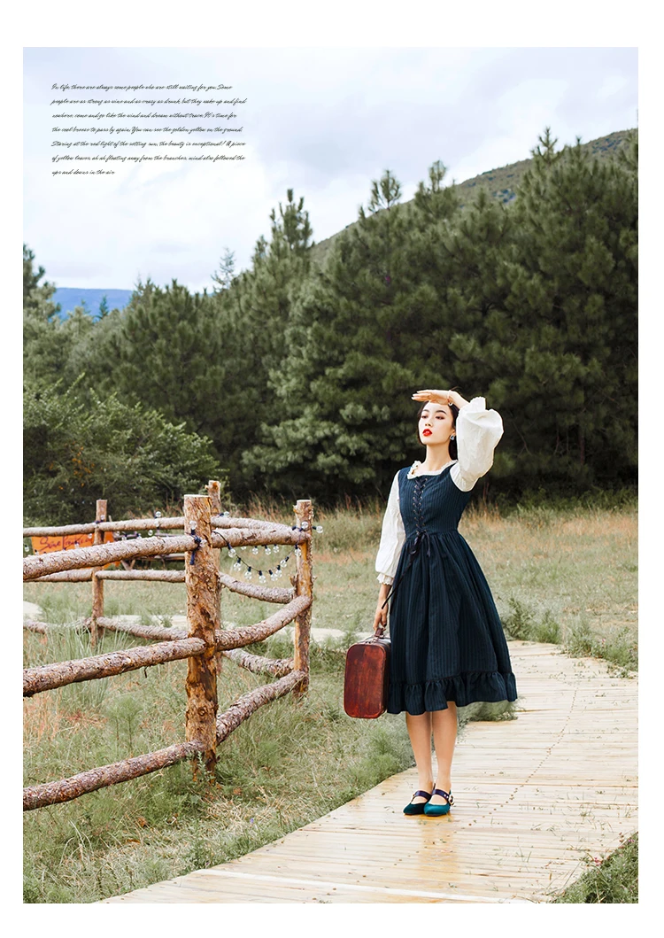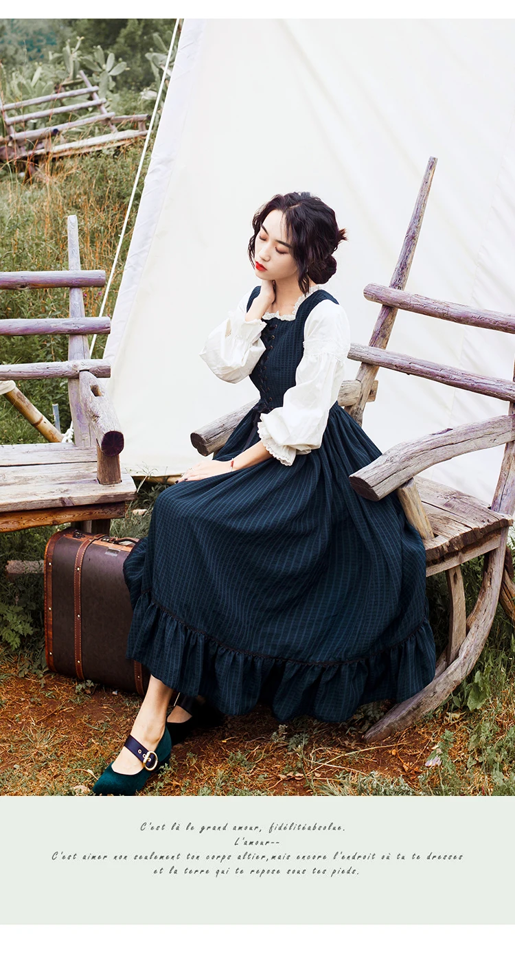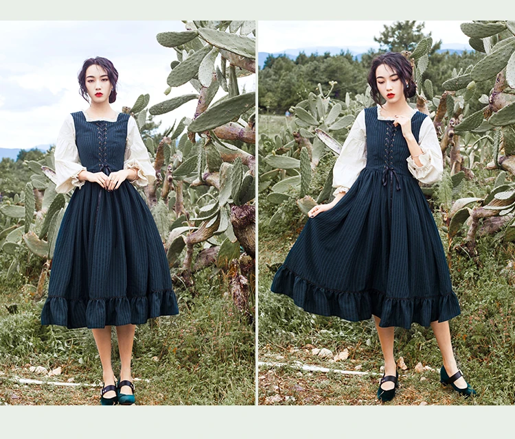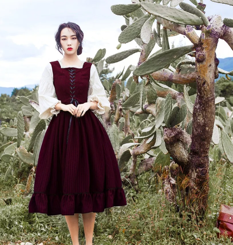 Yipinpay Autumn Winter Women Dress Vintage Lantern Sleeve Ruffles Tutu Dresses Sweet Lace-up High Waist Retro Female Bing