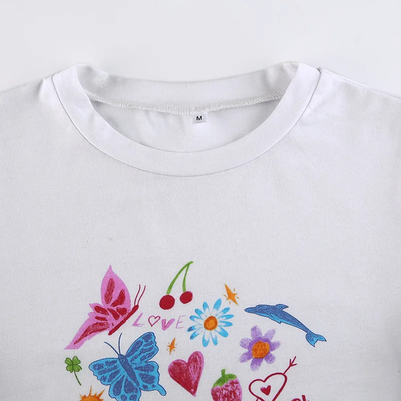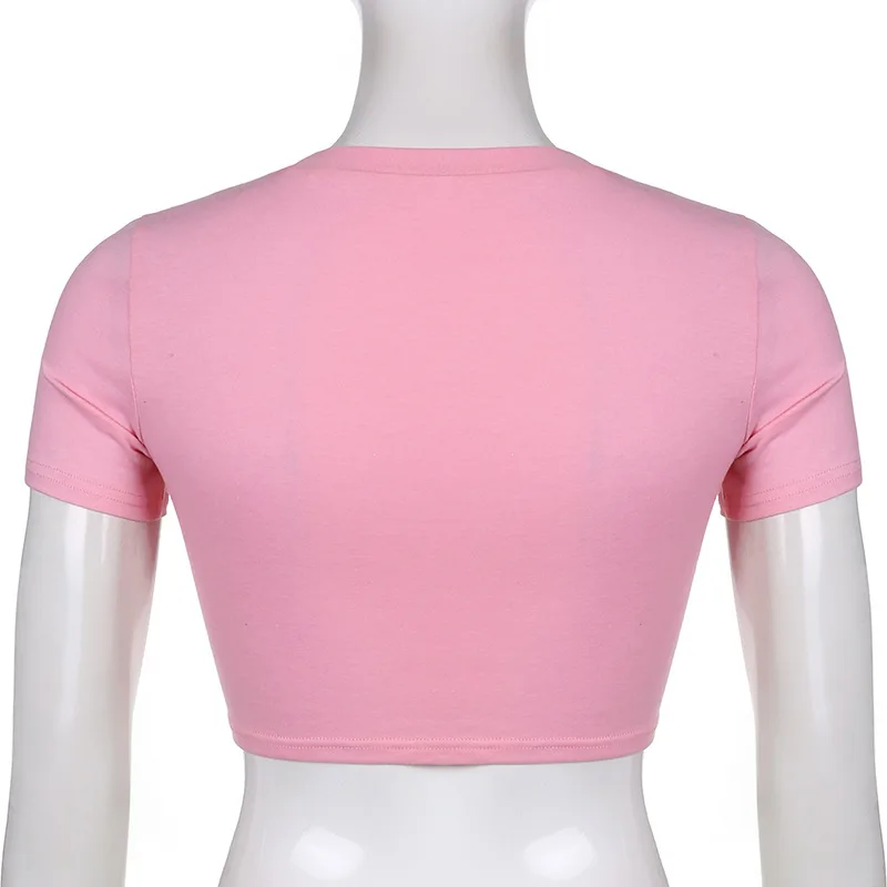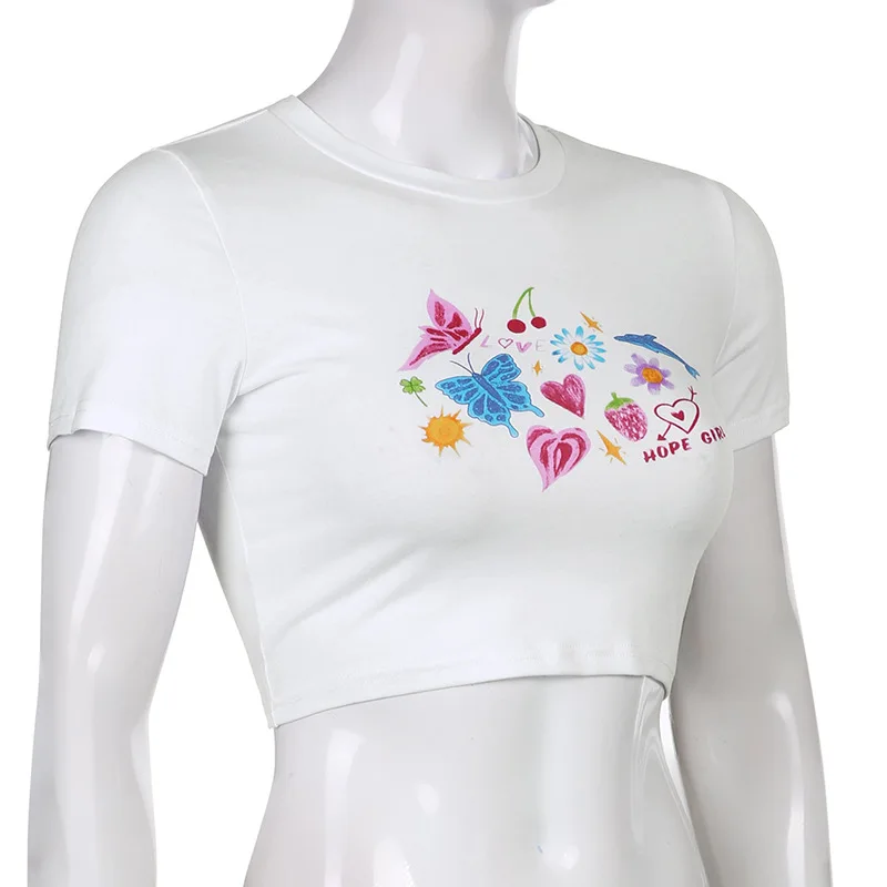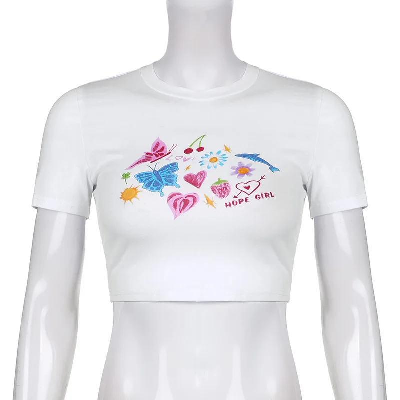 Yipinpay baby Summer Skinny Women Graphic T Shirts Navel Trend Print Stretchy Short Sleeve Kawaii Crop Top Streetwear Tees Aesthetic