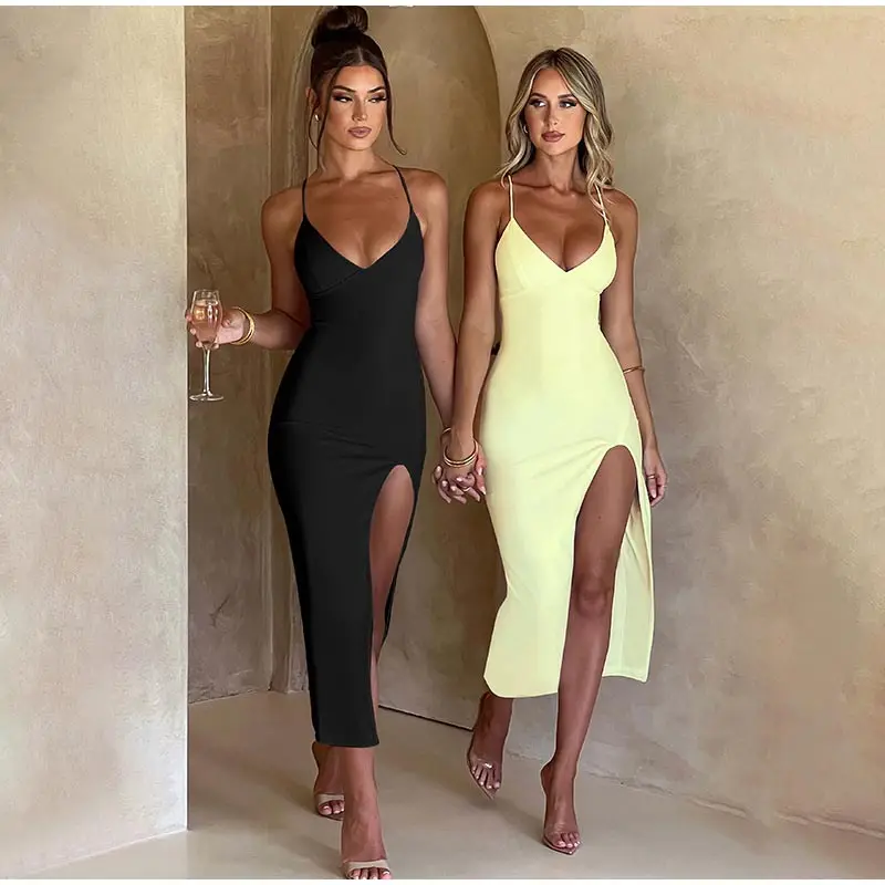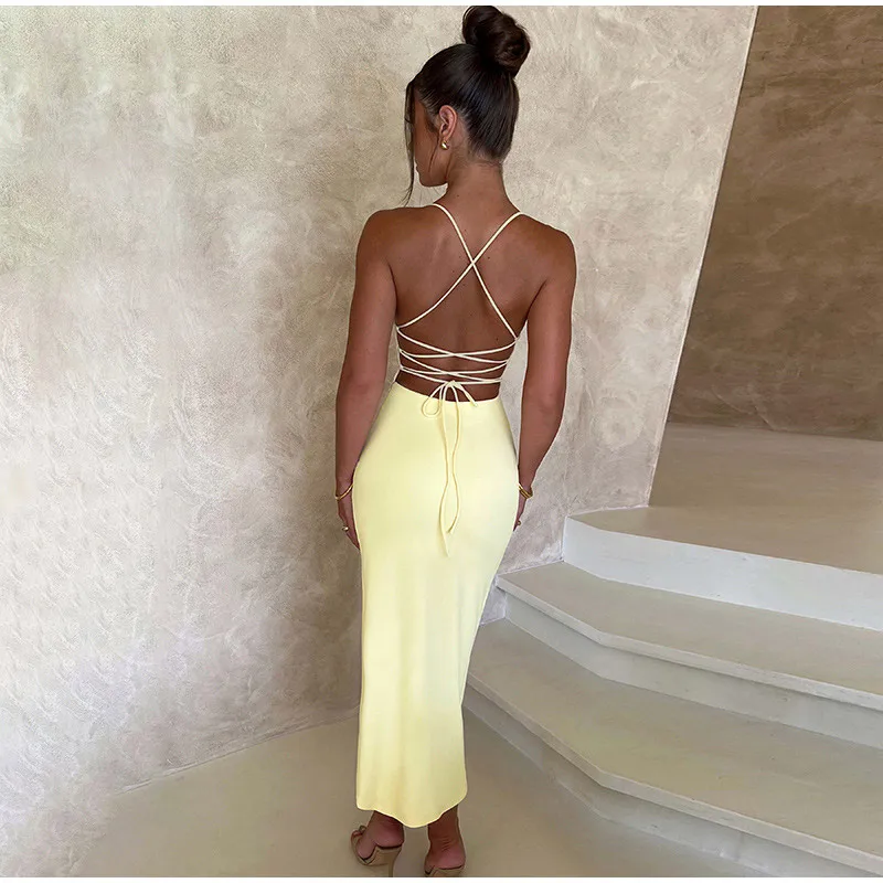 Model Number: Sexy Backless Split Spaghetti Strap Maxi Dress