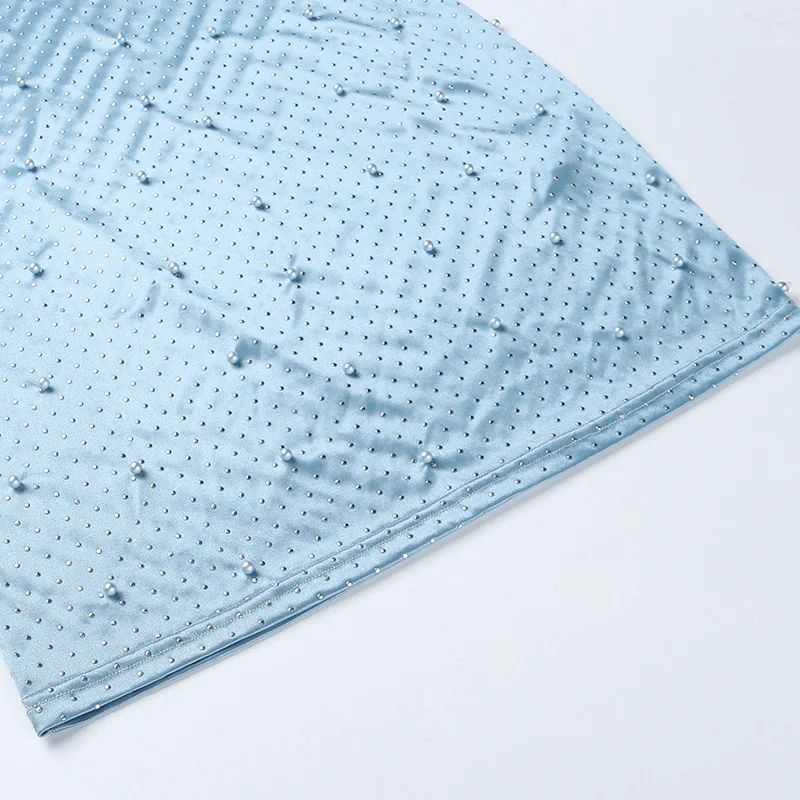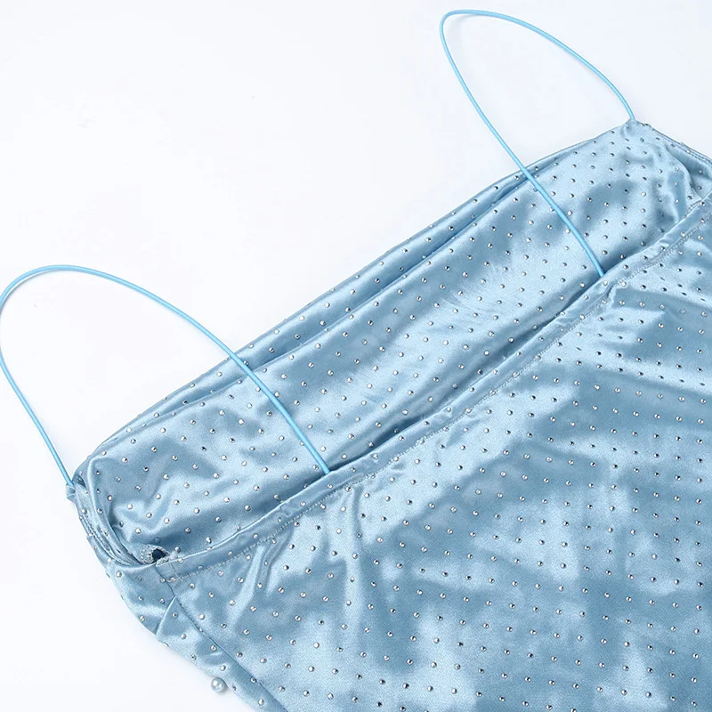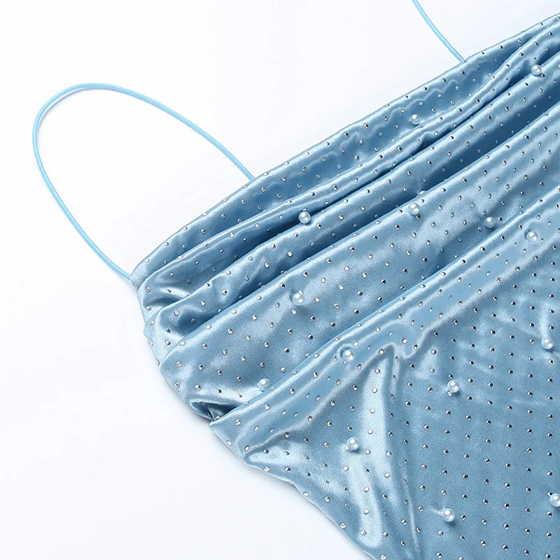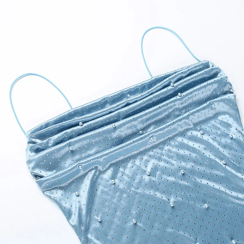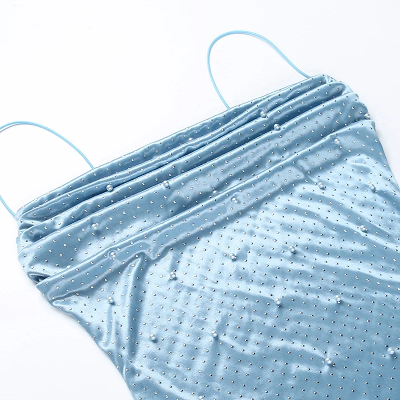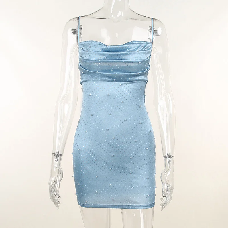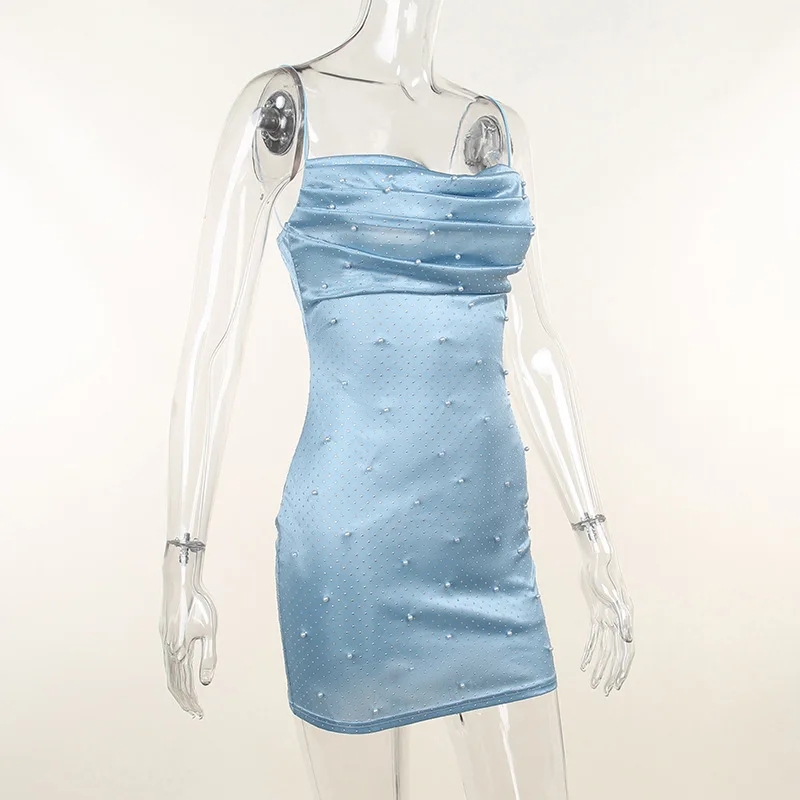 Yipinpay Beadings Spaghetti Strap Bodycon Mini Dress Women Sexy Sleeveless Cowl Neck Wrapped Sling Dress for Club Party Evening