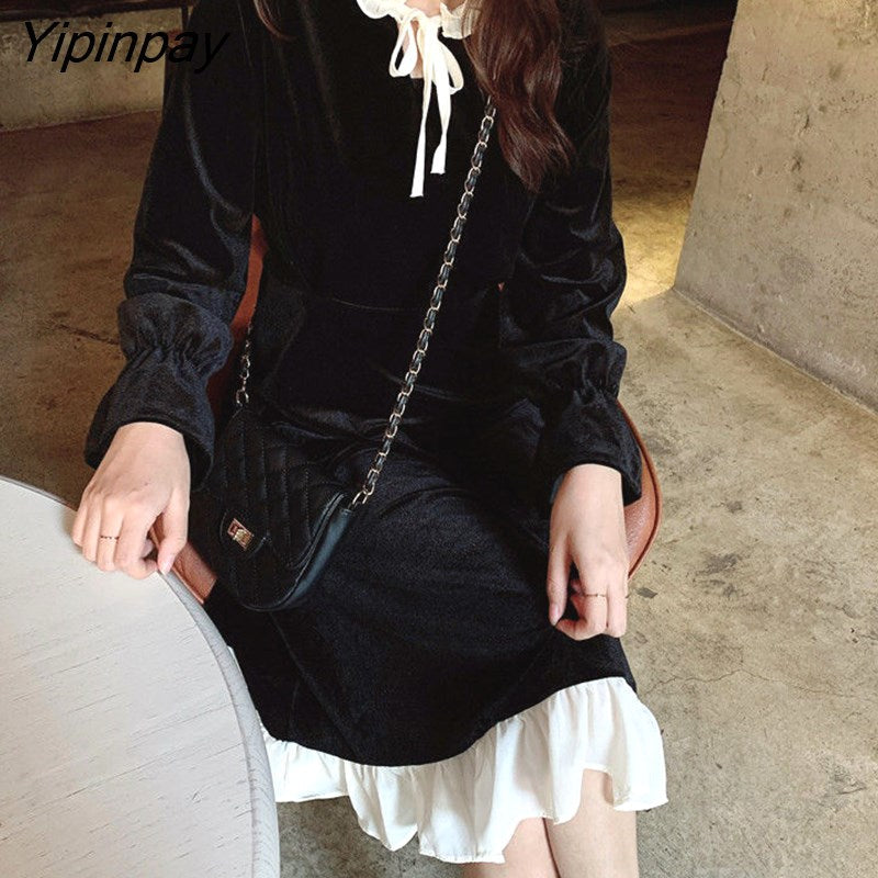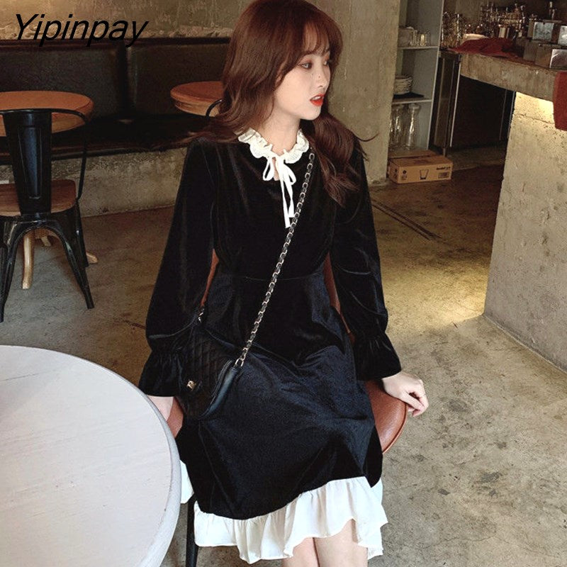 Yipinpay Black Color Dress Women Long-sleeved Dress Female 2023 New Korean Dresses for Women