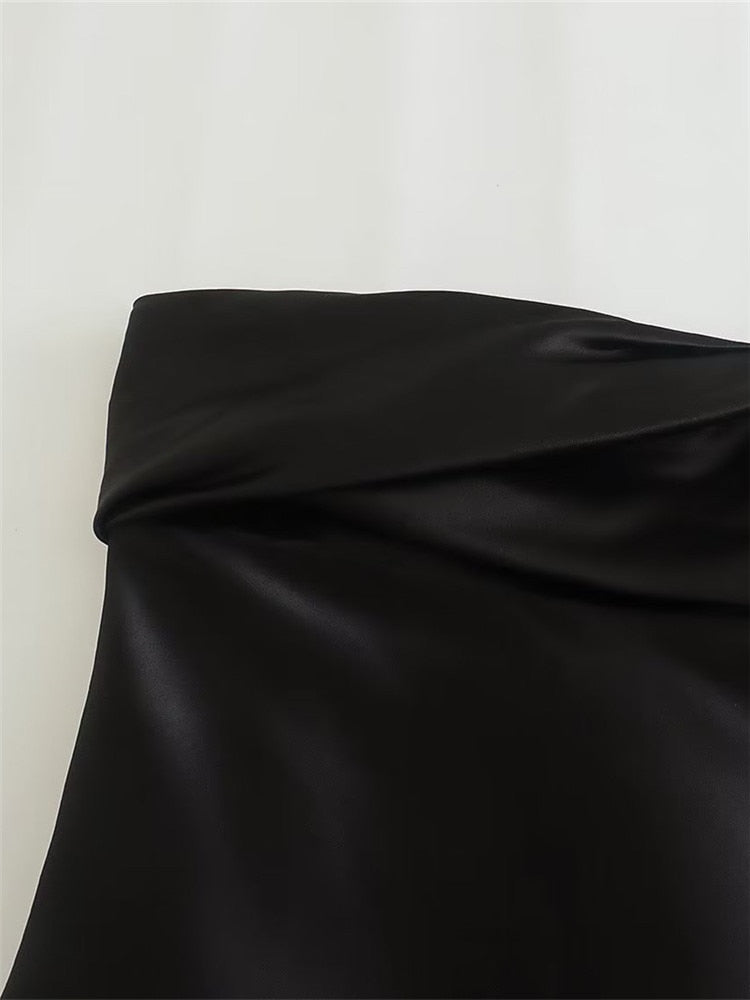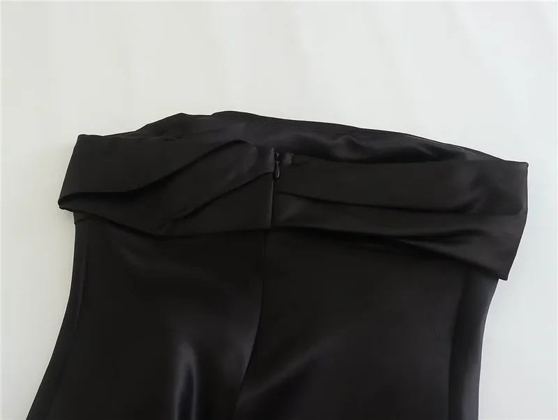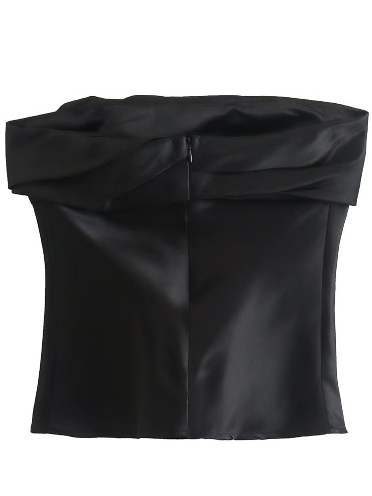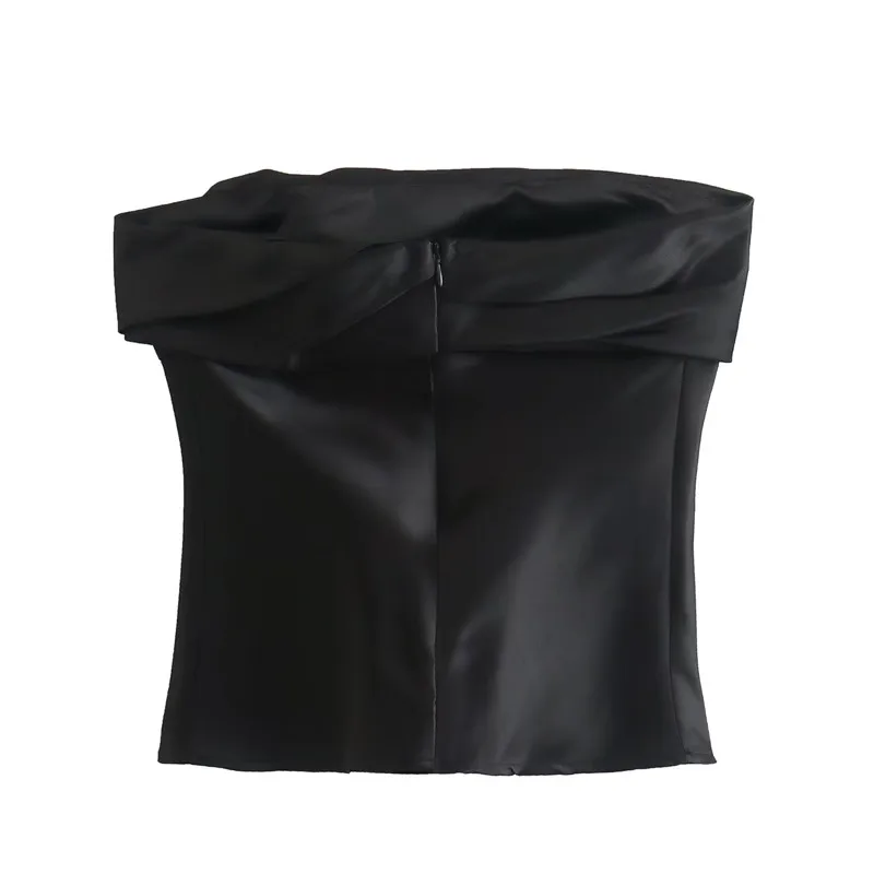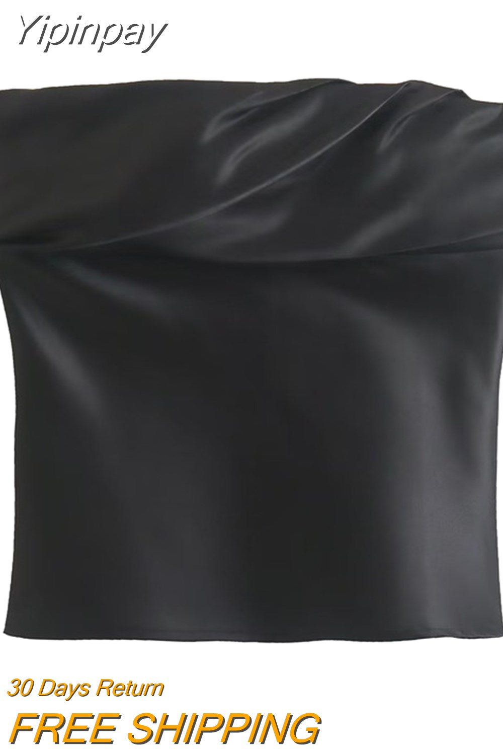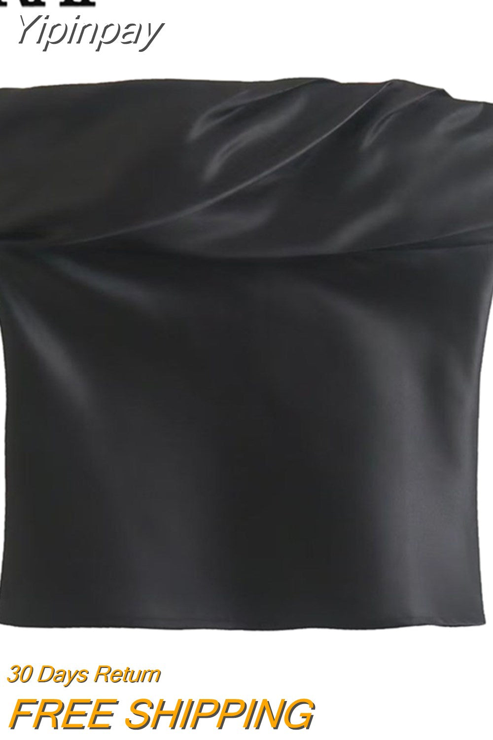 Yipinpay Black Crop Top Women Satin Corset Top Female Off Shoulder Sexy Tops For Women 2023 Pleated Sleeveless Backless Bustier Top