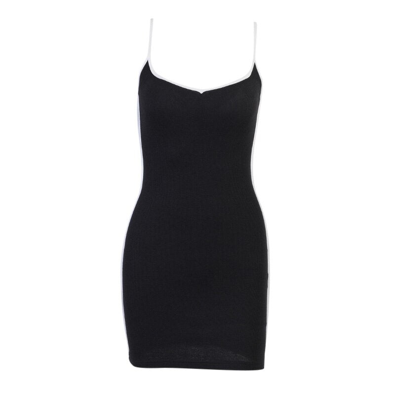Yipinpay Black Dress Women Patchwork Striped Sleeveless Mini Bodycon Dress Sexy Clubwear Summer Spaghetti Straps Outfit