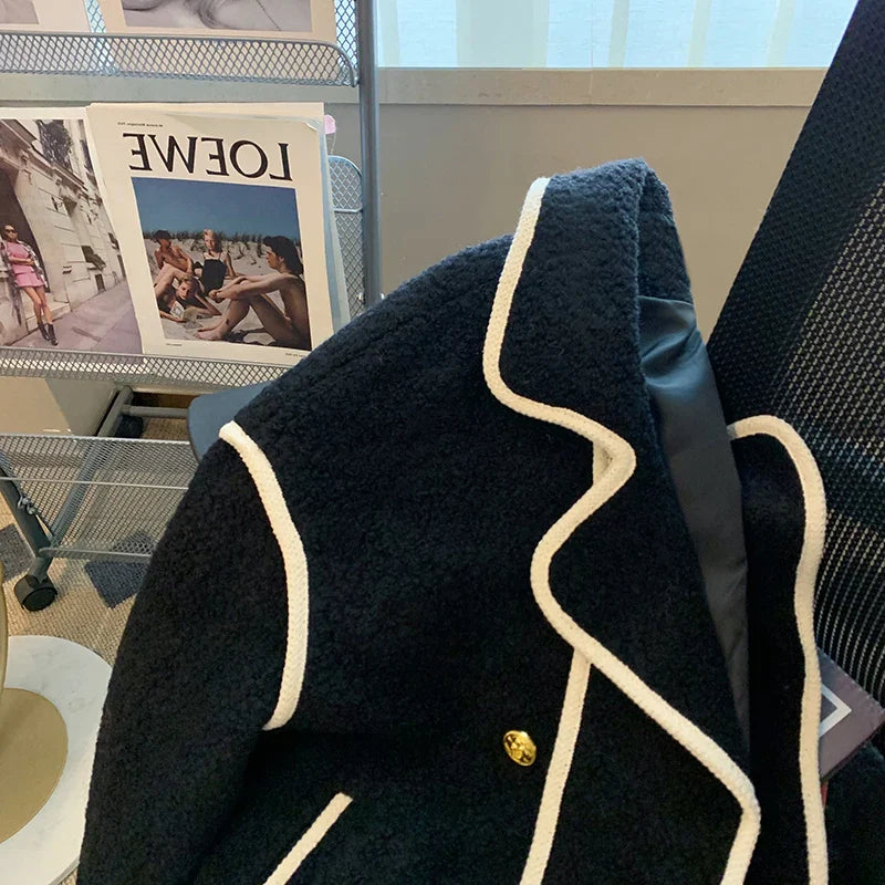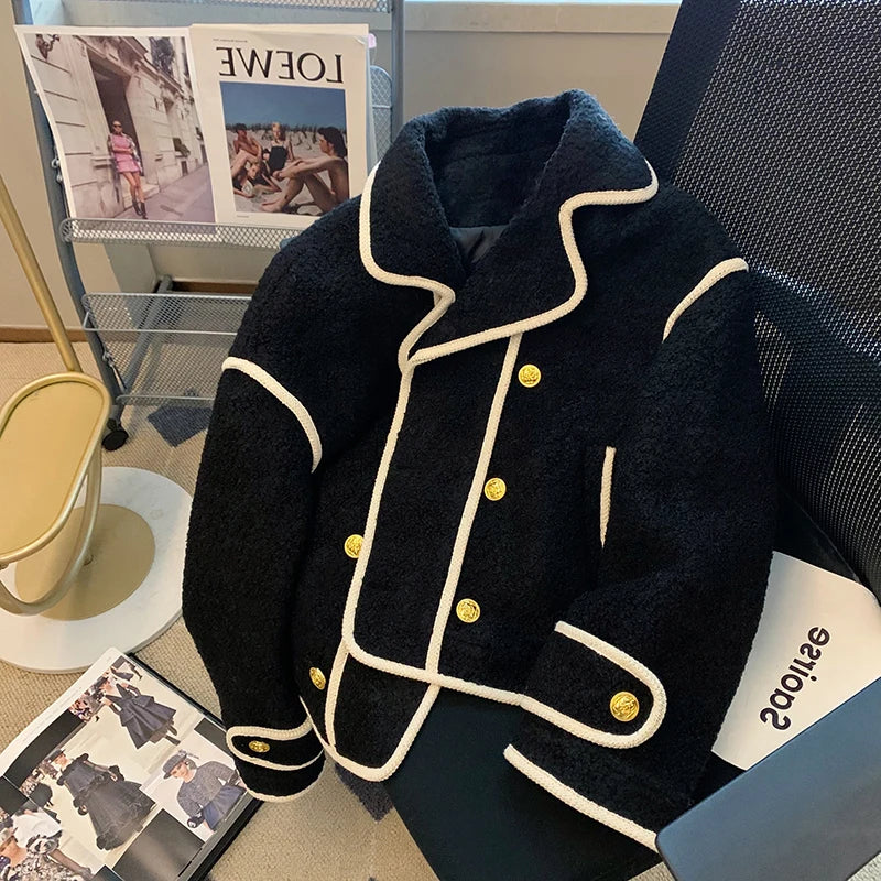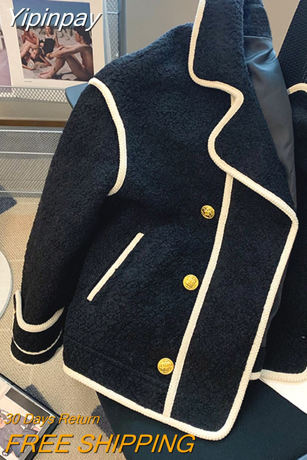 Yipinpay Black Jacket Fragrant Lamb Wool Short Coat Vintage Chaquetas Para Mujer Y2k Women Clothing Roupas Femininas Top