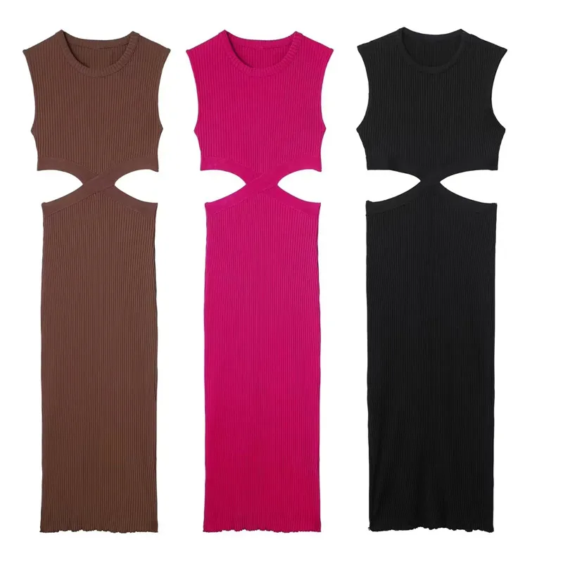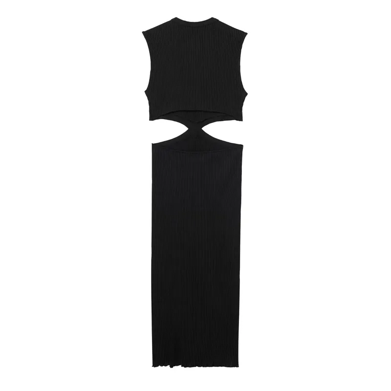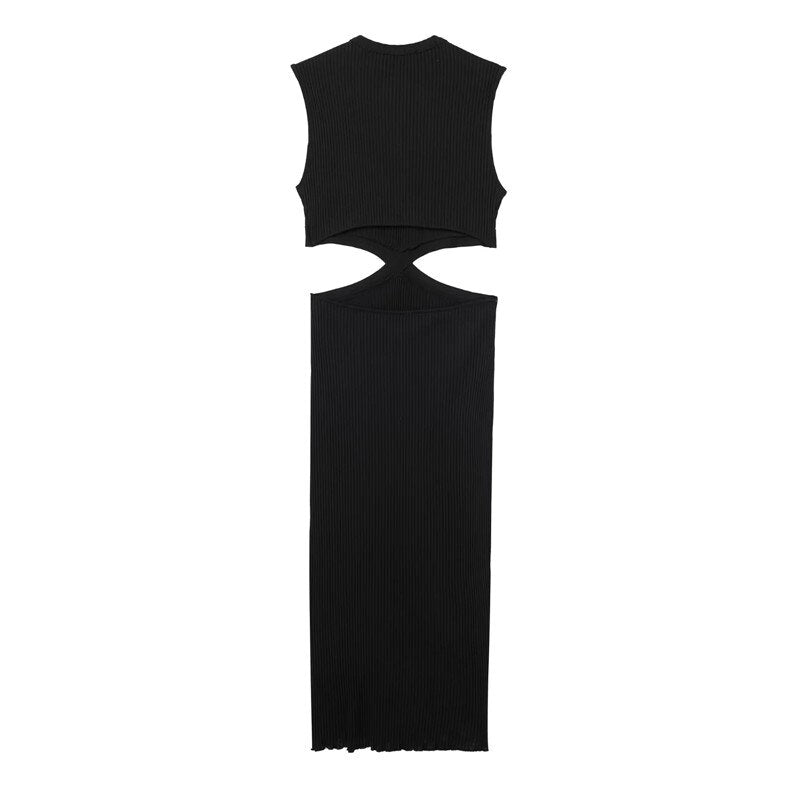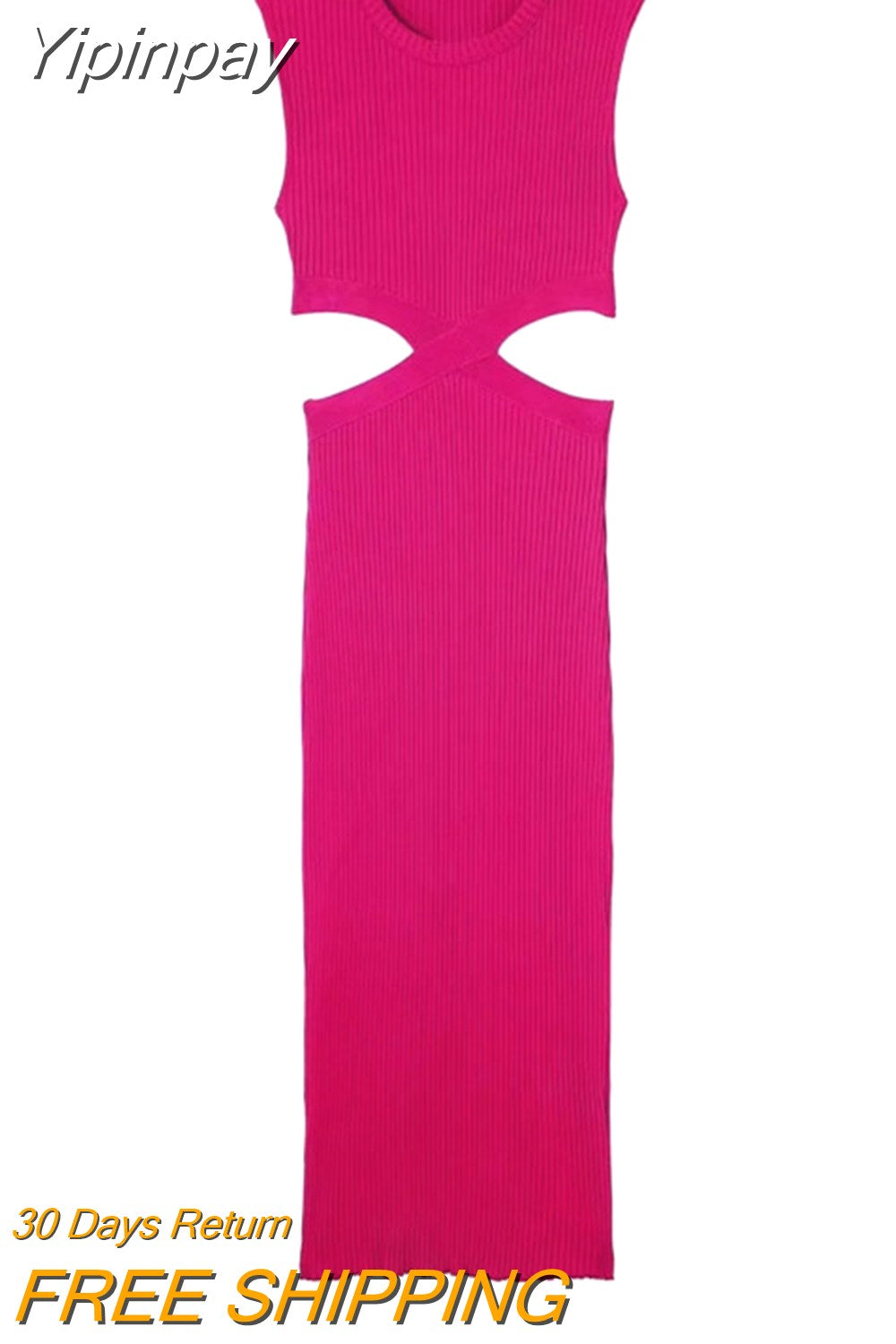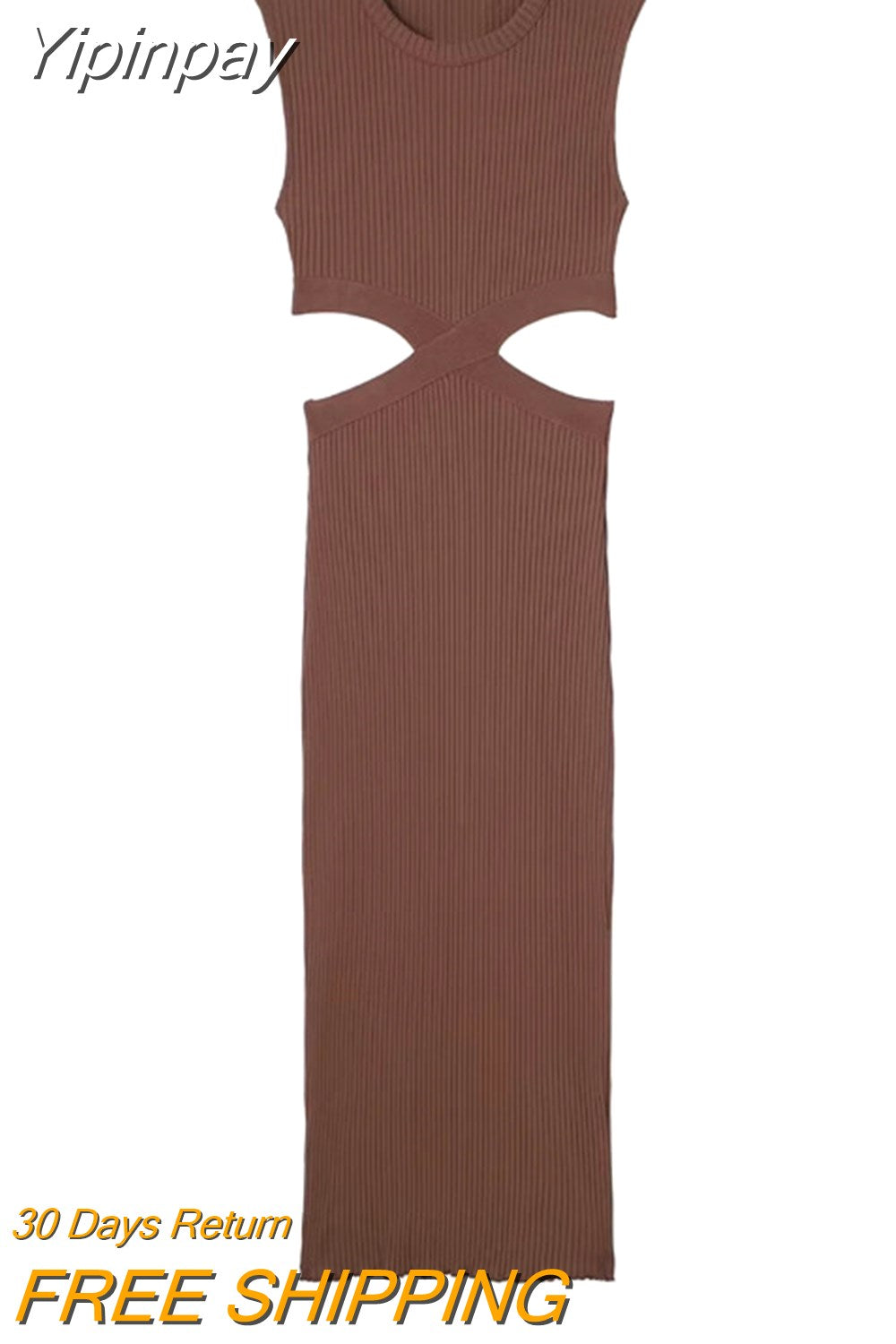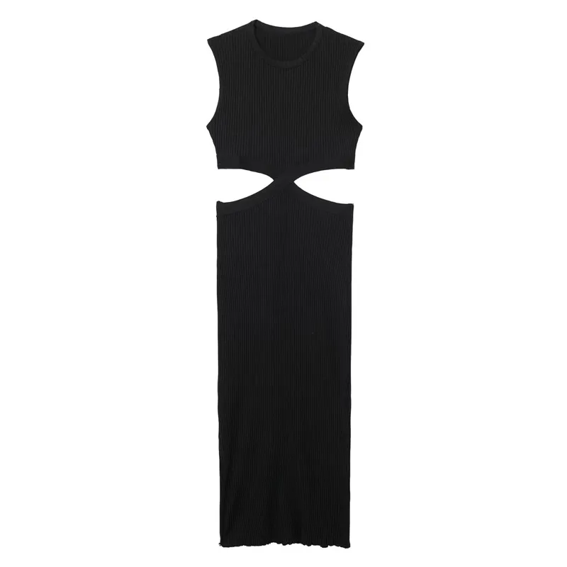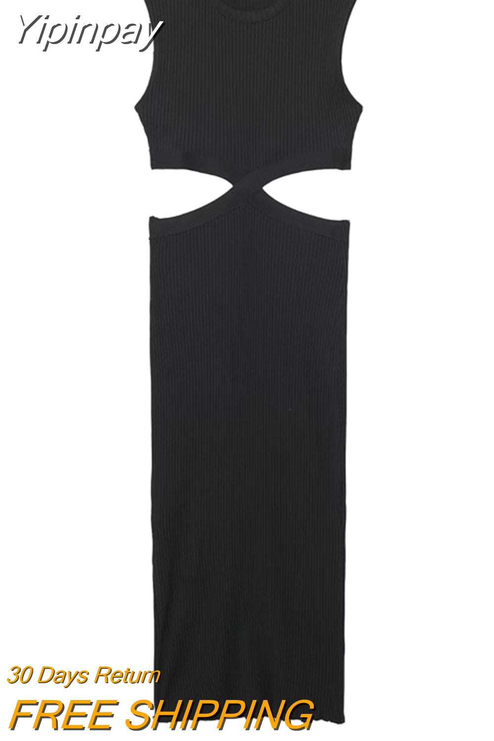 Yipinpay Black Knitted Dresses For Women 2023 Cut Out Bodycon Long Dress Women Sexy Midi Party Dresses Sleeveless Summer Dress