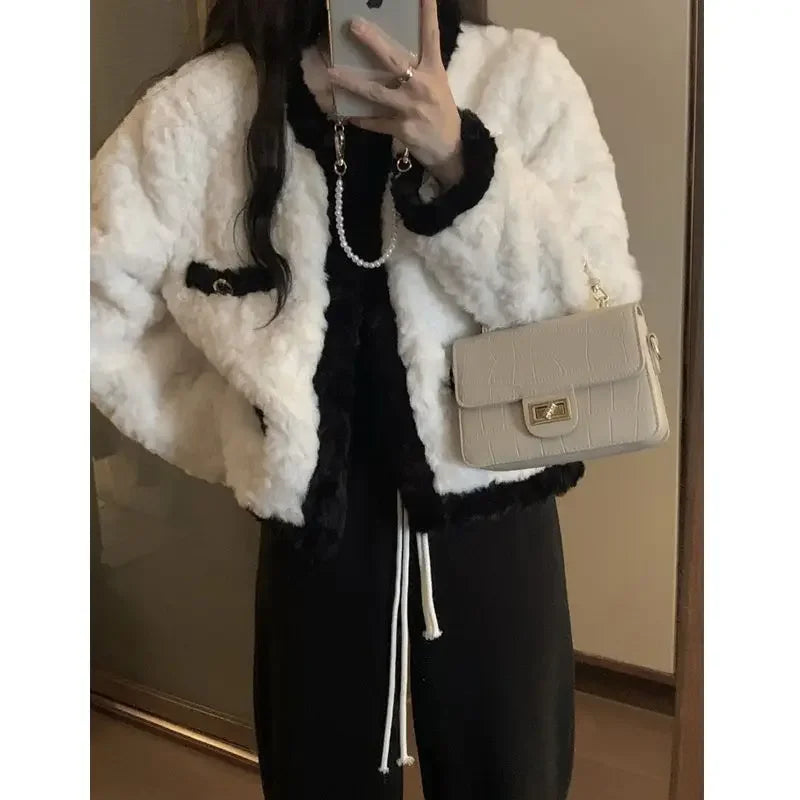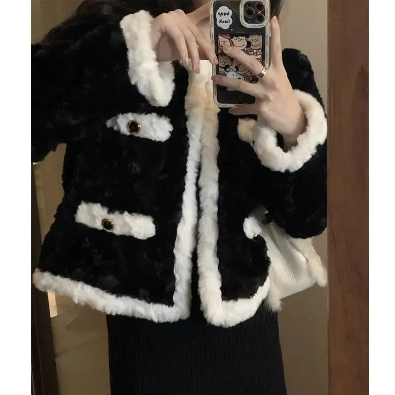 Yipinpay Black Lamb Plush Jacket Women's Autumn and Winter High-end Design Sense Temperament Niche Furry Top