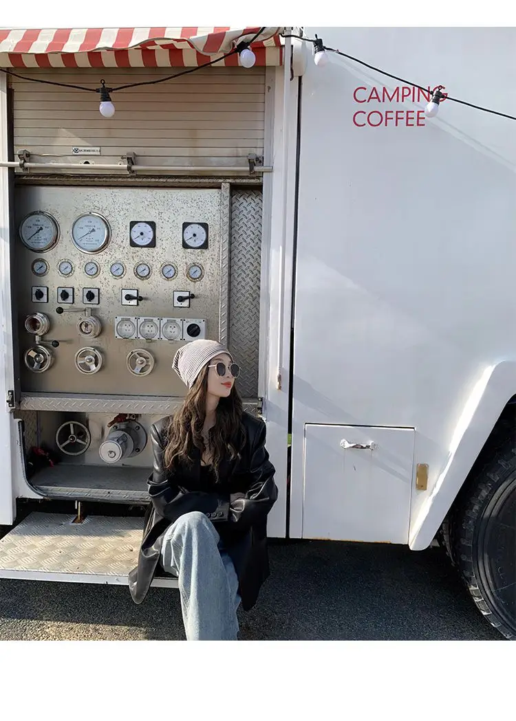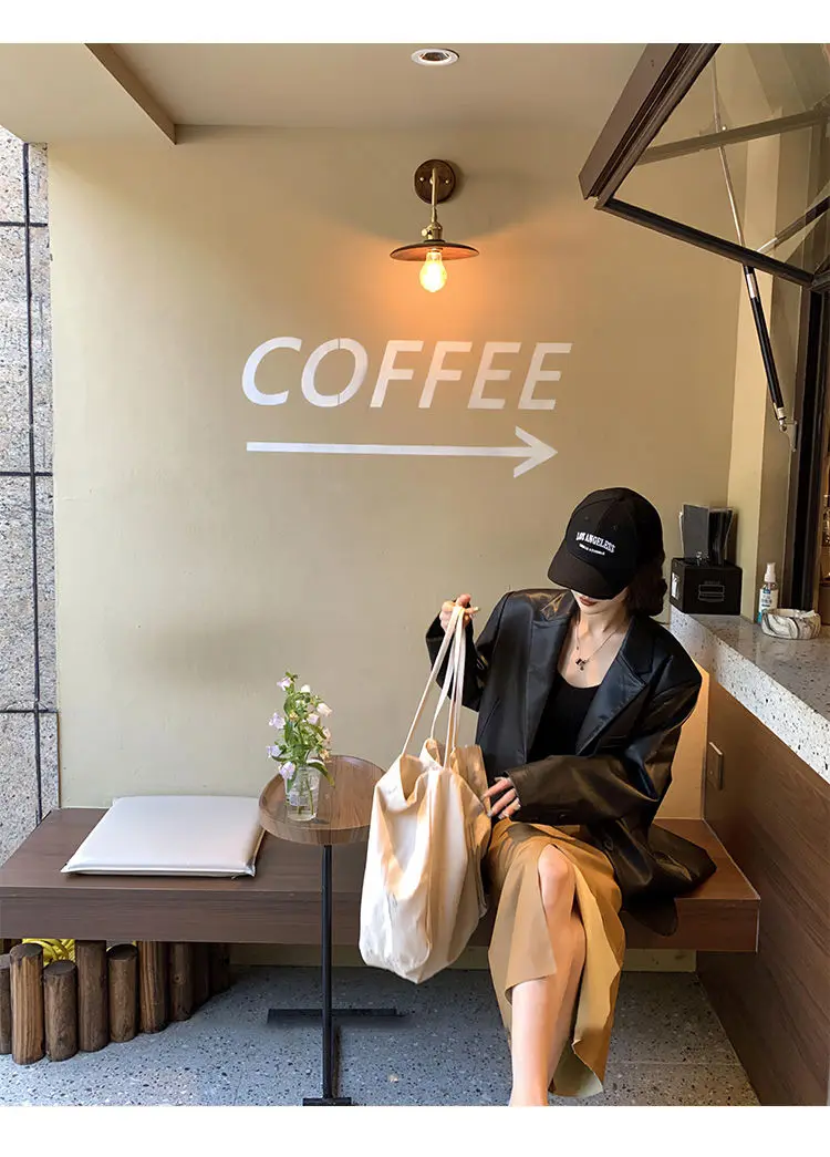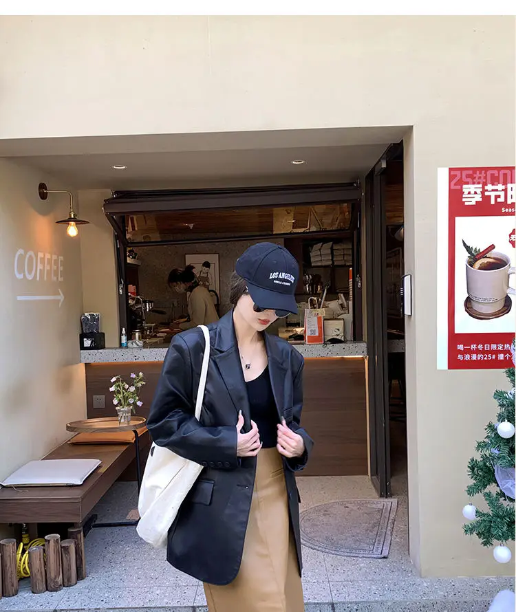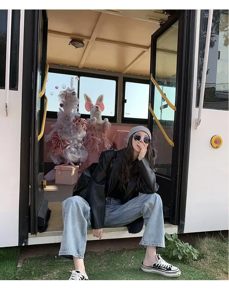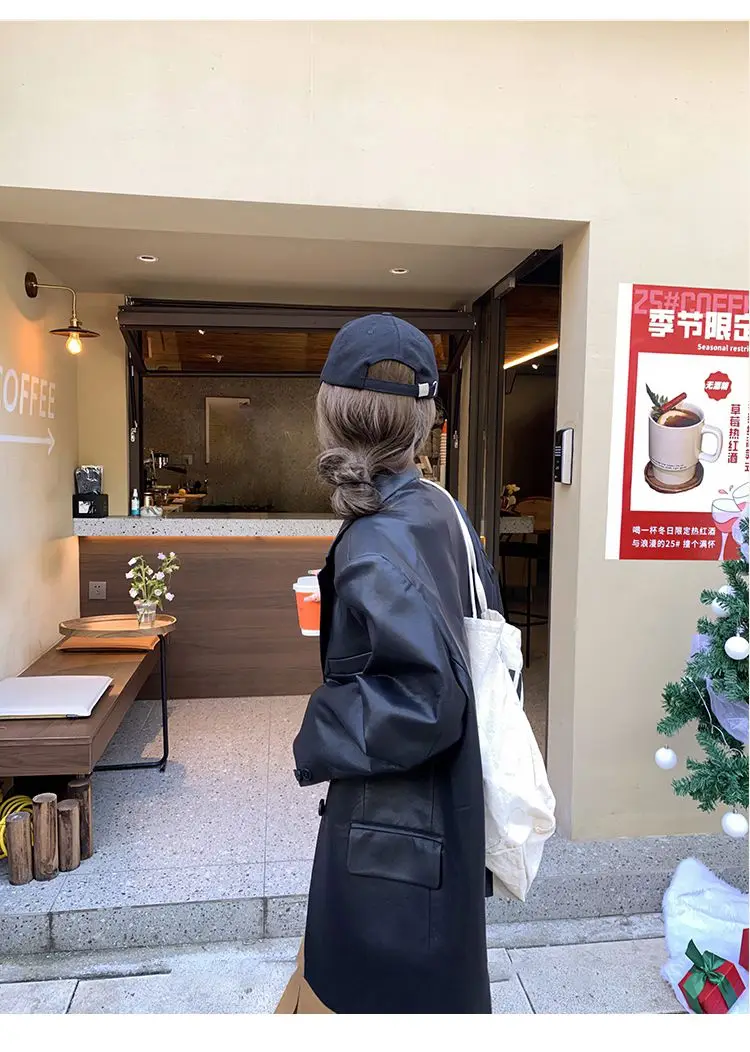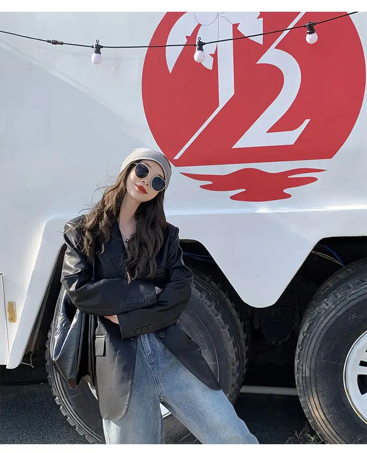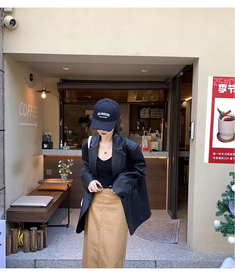 Yipinpay Black Leather Jacket Women Office Lady Pocket Faux Leather Blazers Vintage Casual Loose Single Breasted Winter Warm Coat