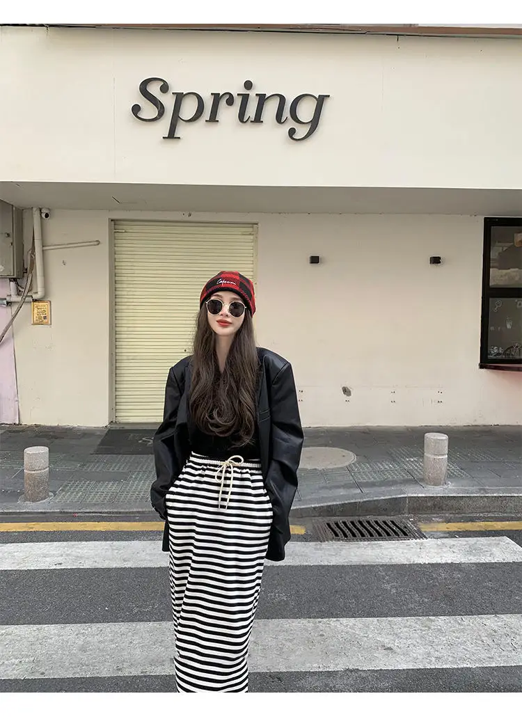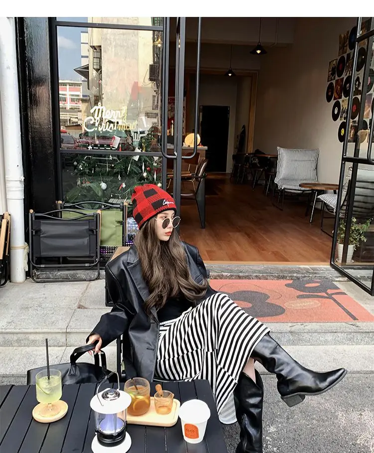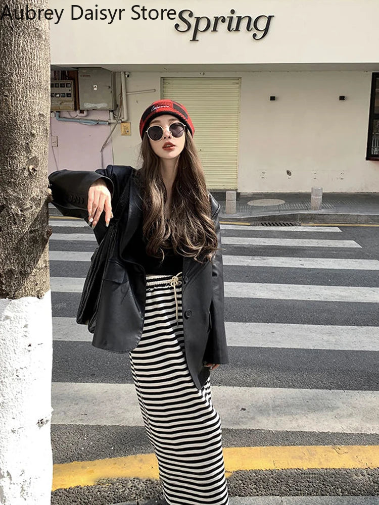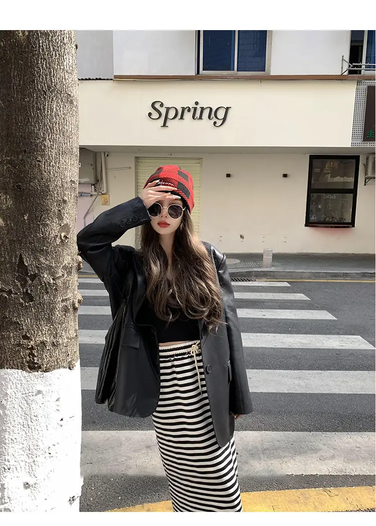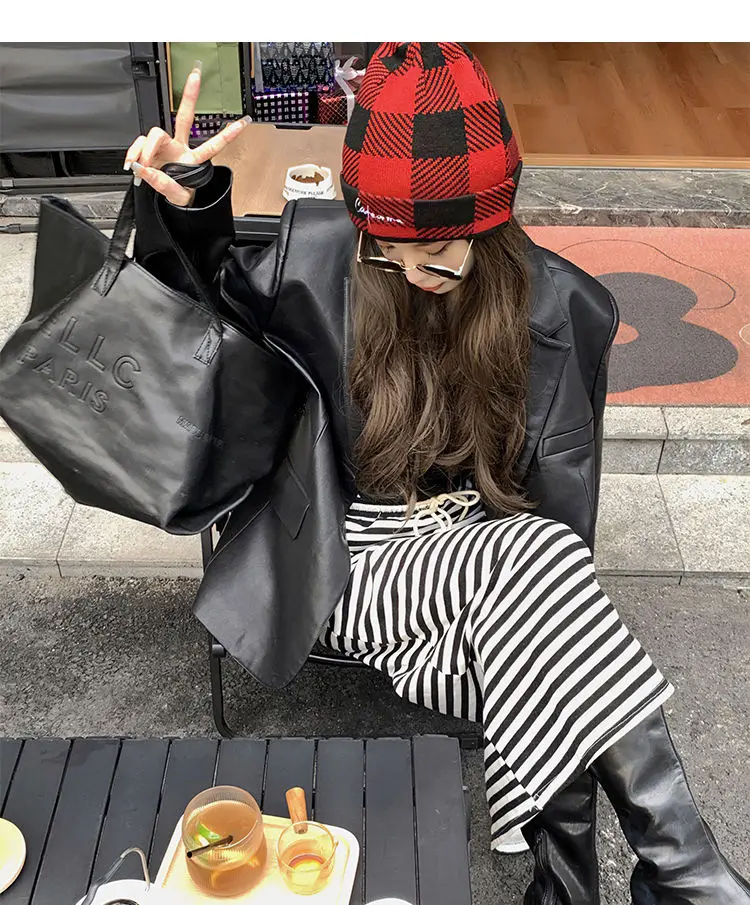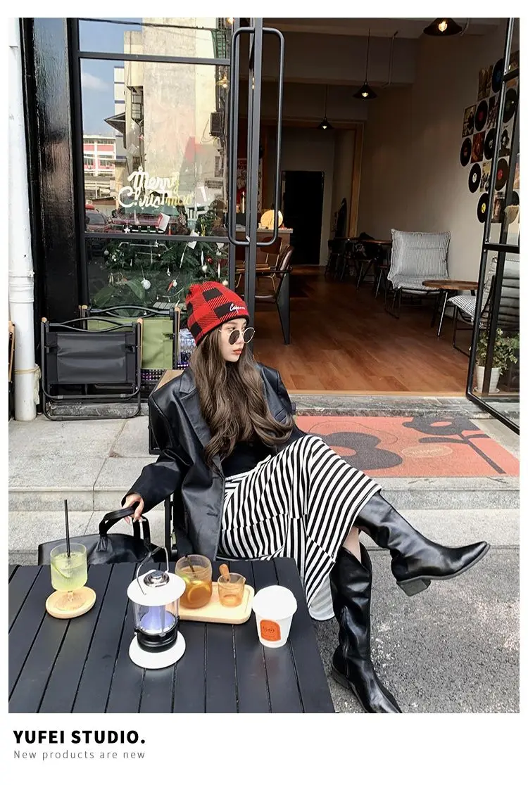 Yipinpay Black Leather Jacket Women Office Lady Pocket Faux Leather Blazers Vintage Casual Loose Single Breasted Winter Warm Coat