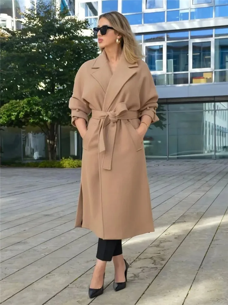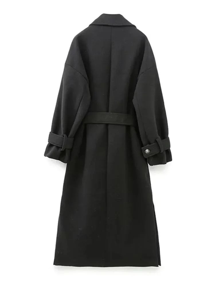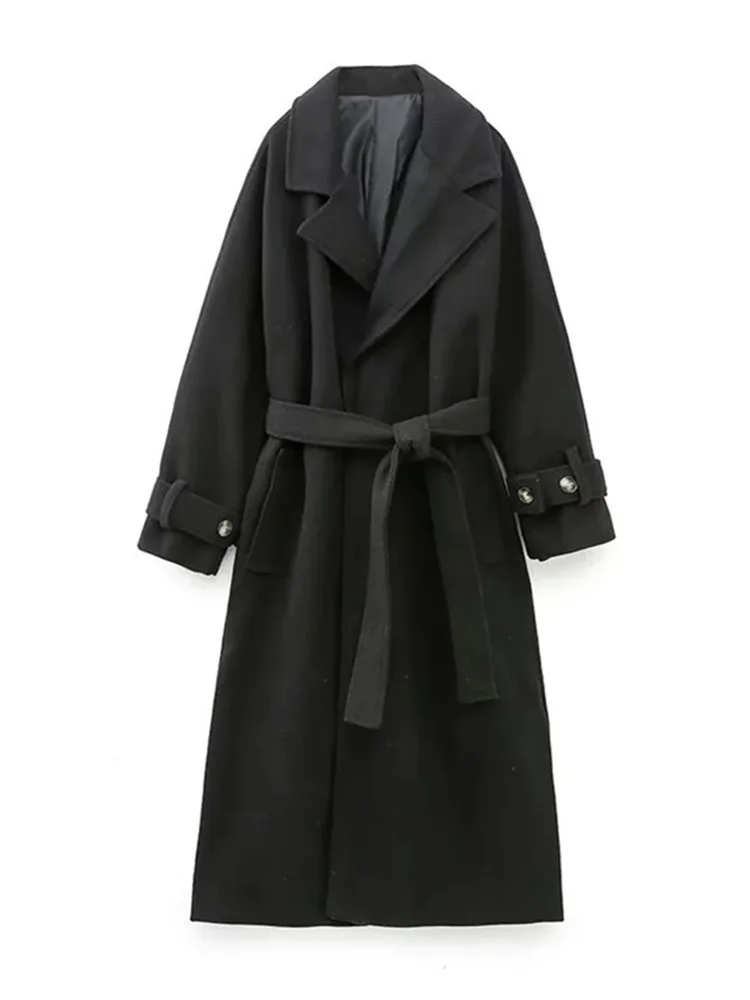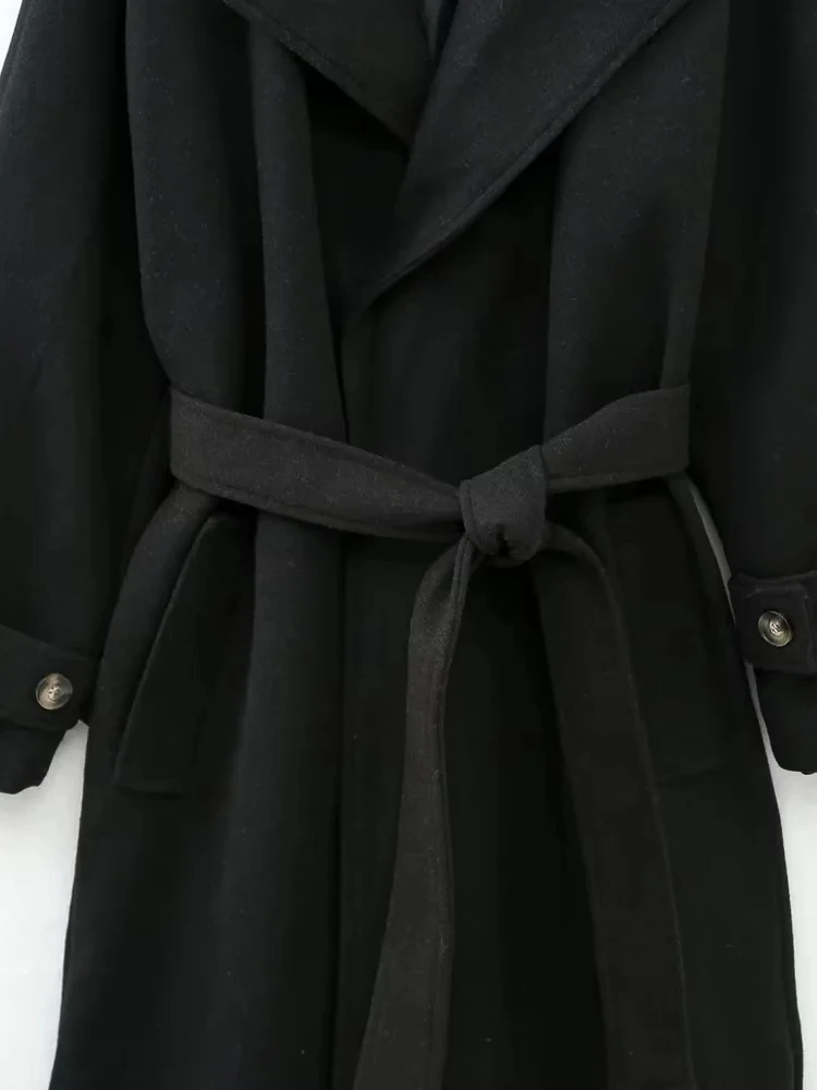 Yipinpay Black Long Coat For Women Long Sleeve Elegant Winter Woman Coats 2023 Fashion Belt Winter Overcoat Female New In Outerwears