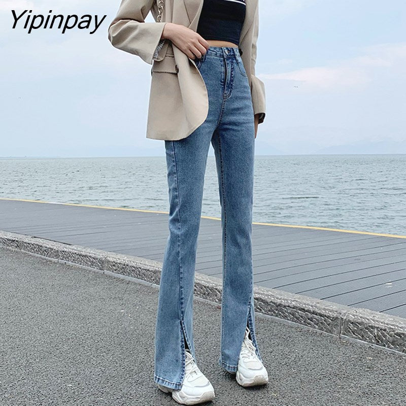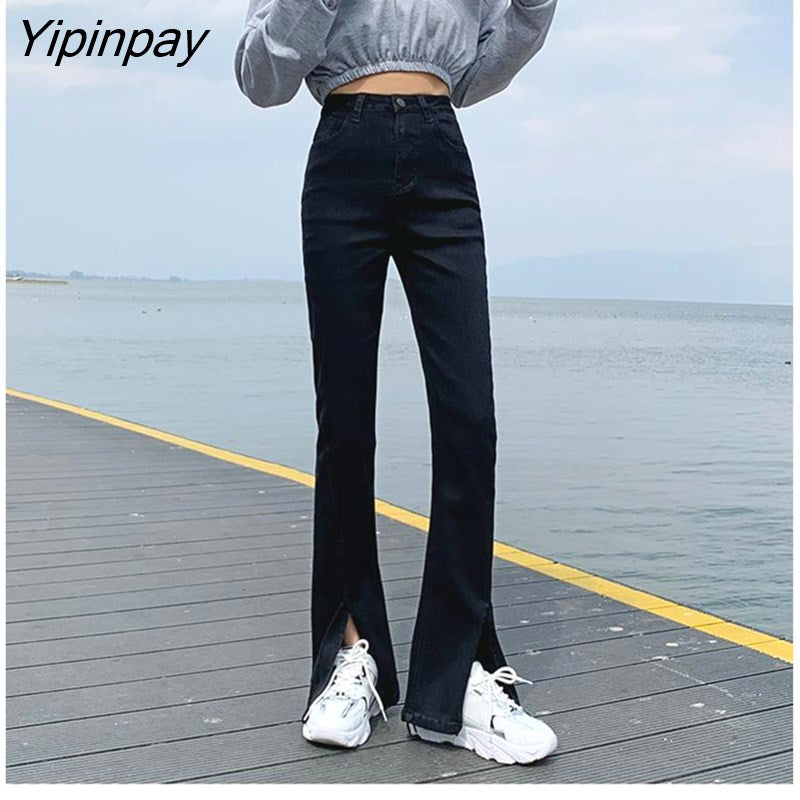 Yipinpay Black Loose Split Mom Jeans Woman Denim Pants High Waist Jeans Trousers Women Jean Taille Haute Femme