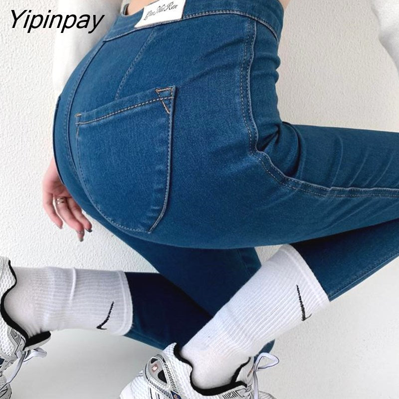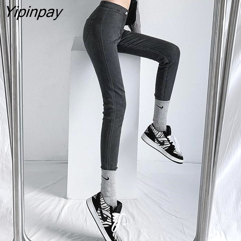 Yipinpay Black Skinny Stretch Mom Jeans High Waist Plus Up Pencil Pants Woman Denim Pantalones De Mujer Autumn Winter