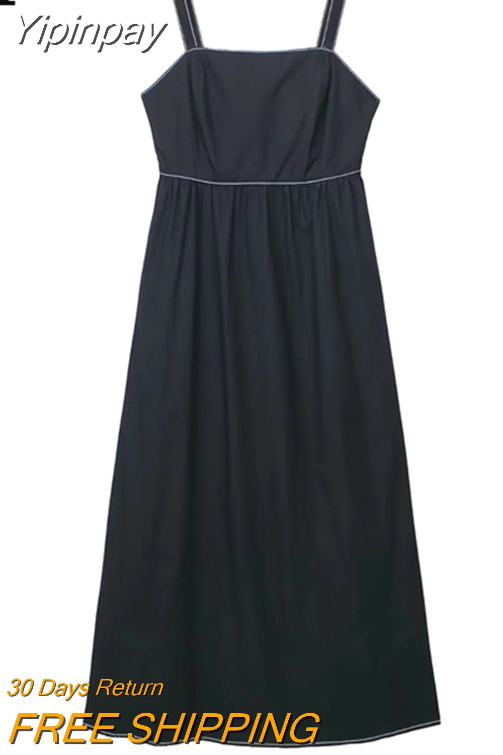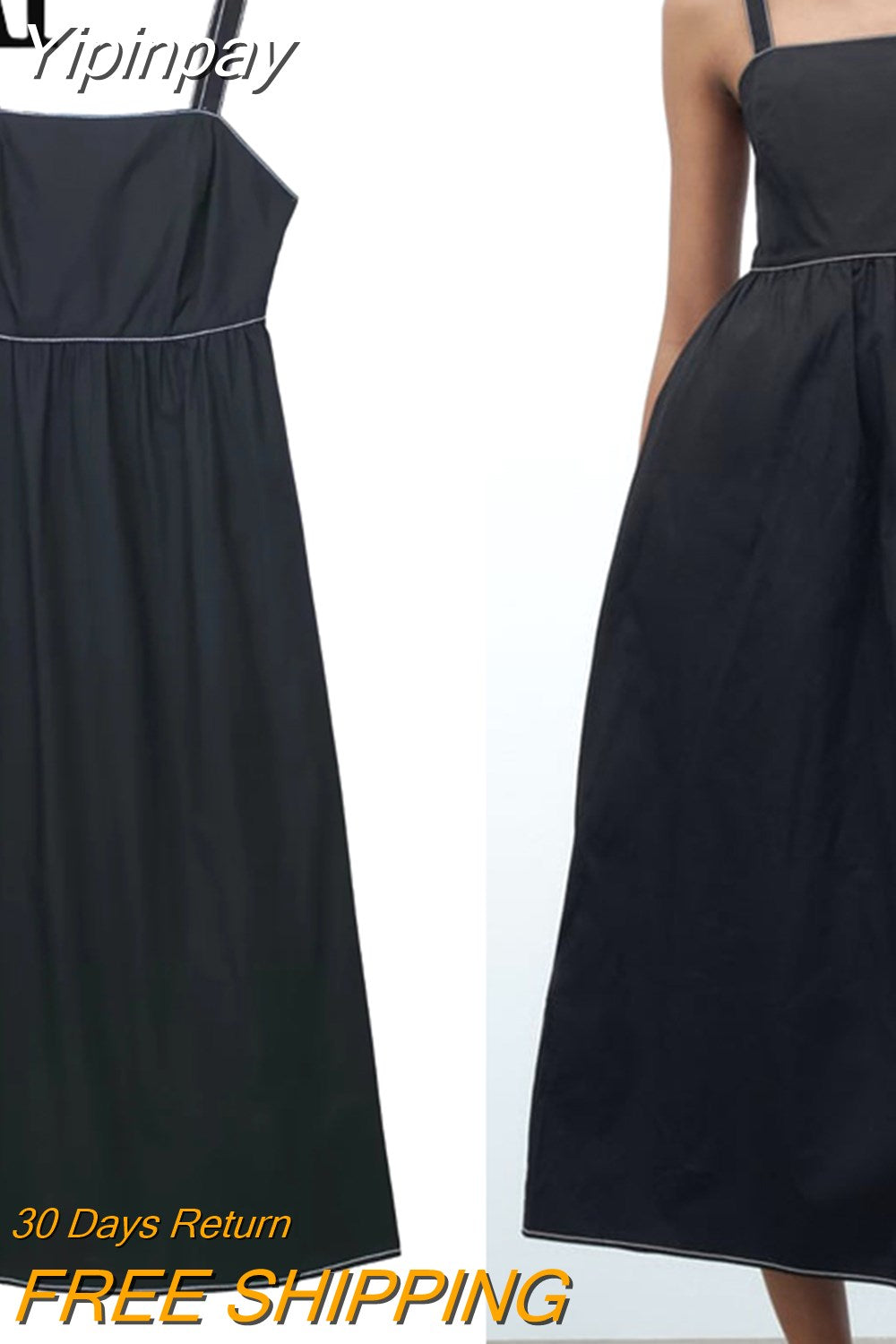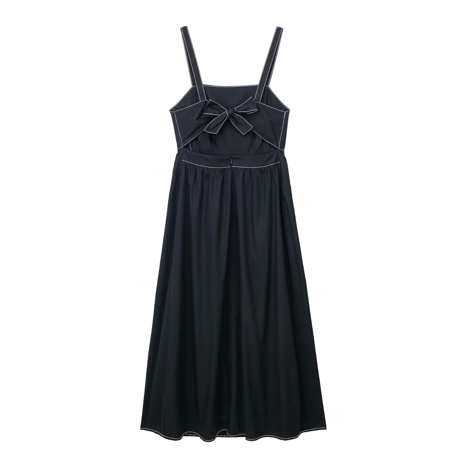 Yipinpay Black Slip Dress Woman Bow Backless Long Dress Women Sleeveless Midi Party Dresses Women Casual Summer Women's Dresses
