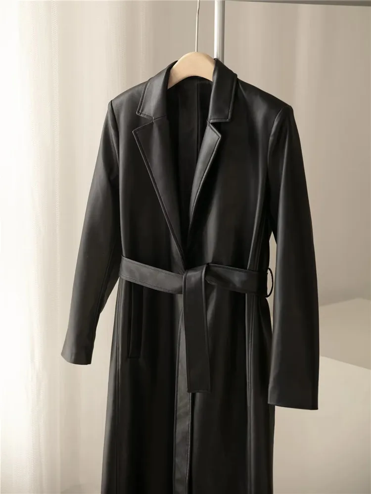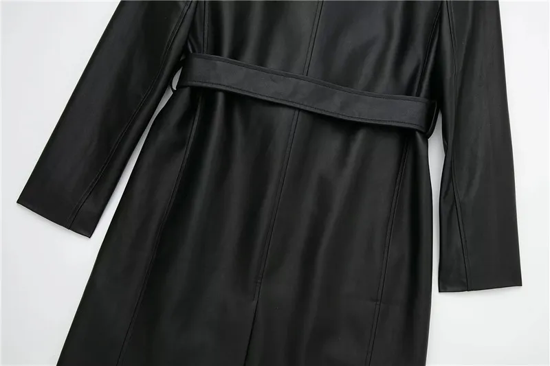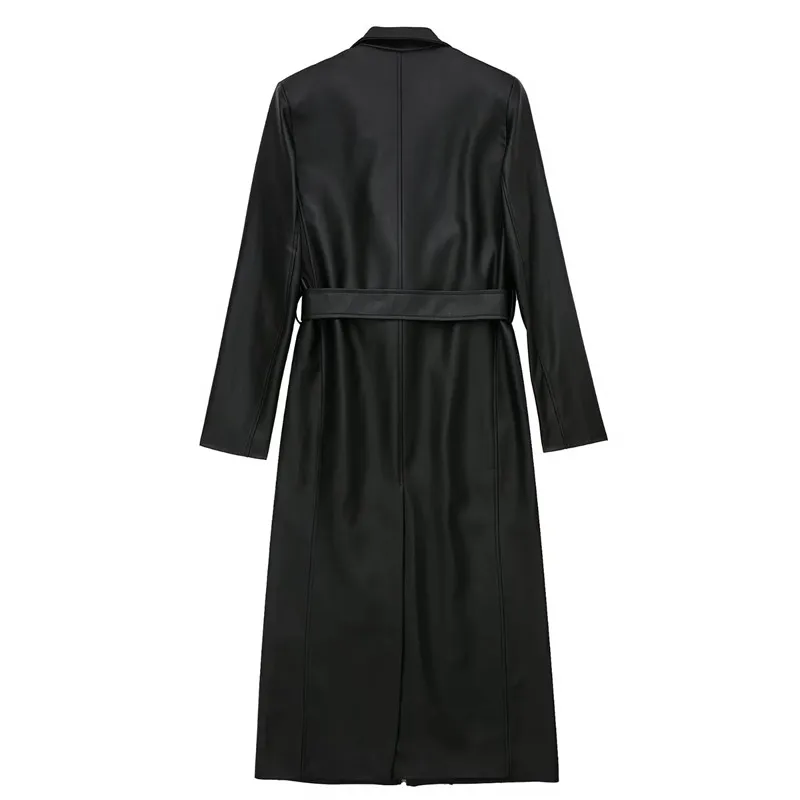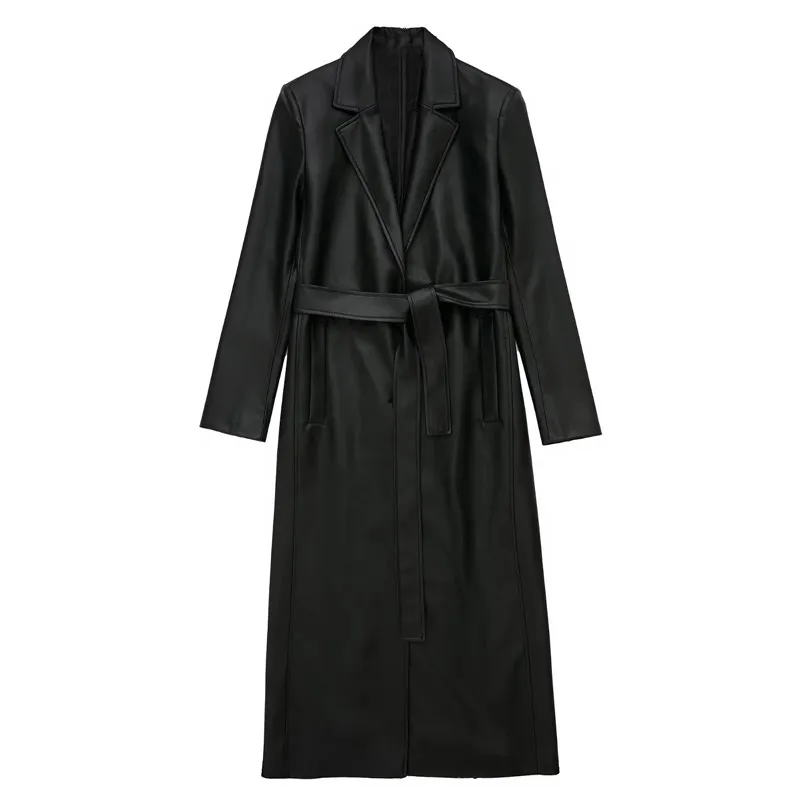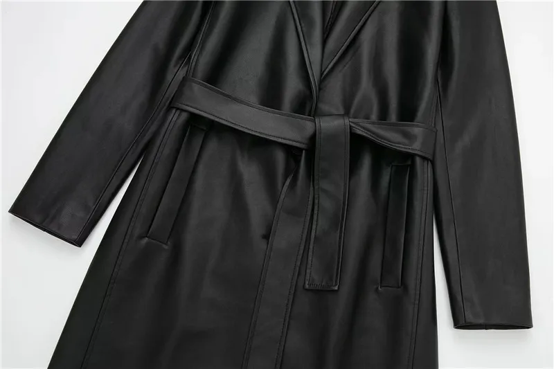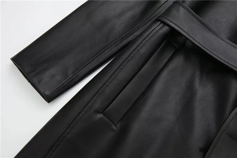 Yipinpay Black Trench Coat For Women Faux Leather Long Coat Women Winter 2023 Belt Elegant Woman Trench Coat Women's Windbreaker