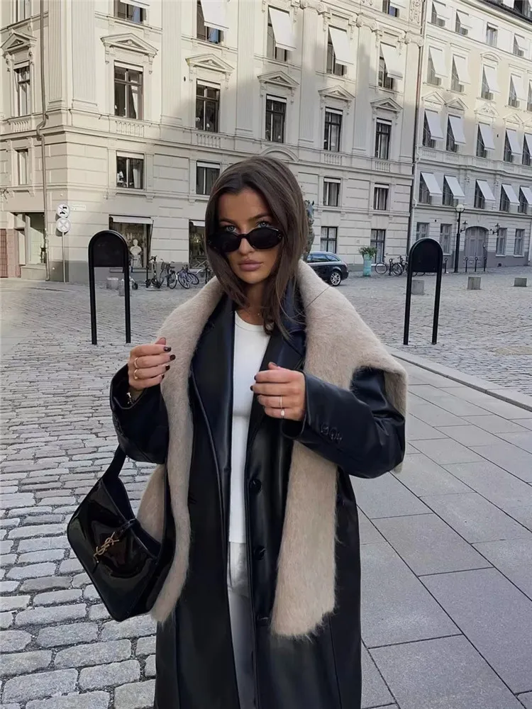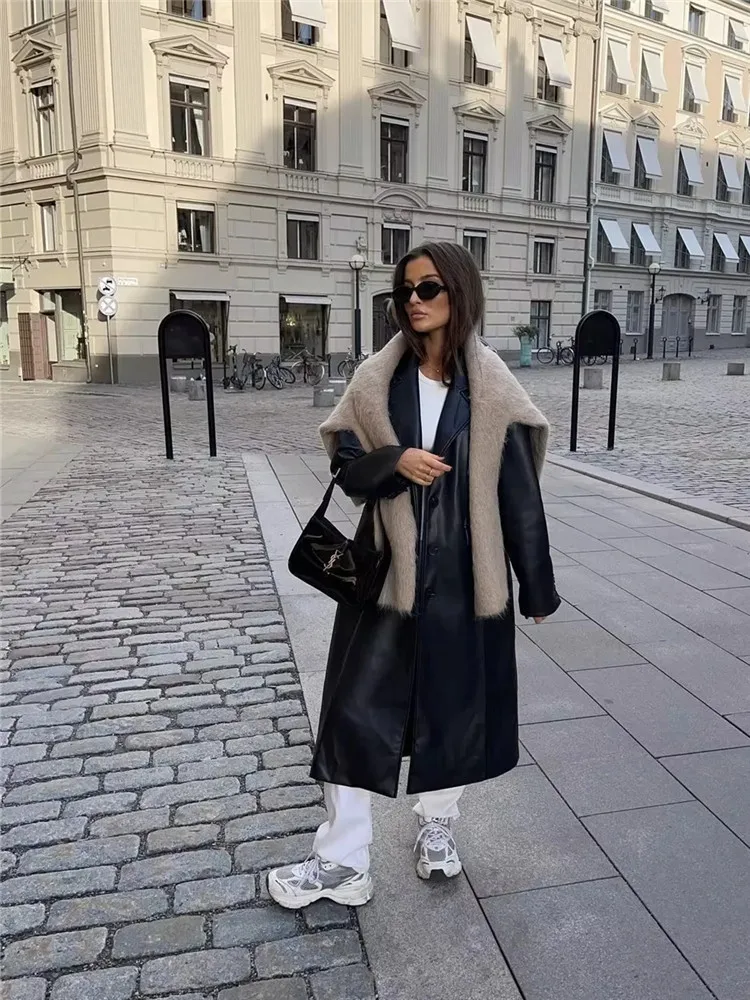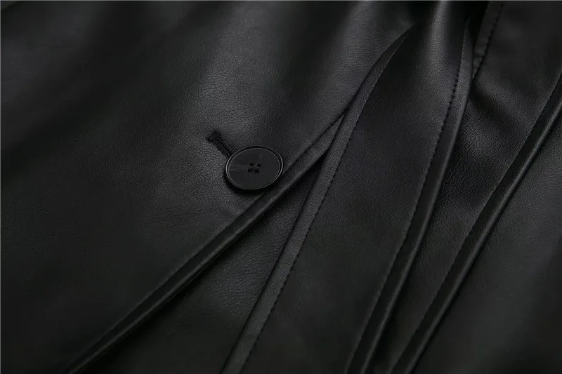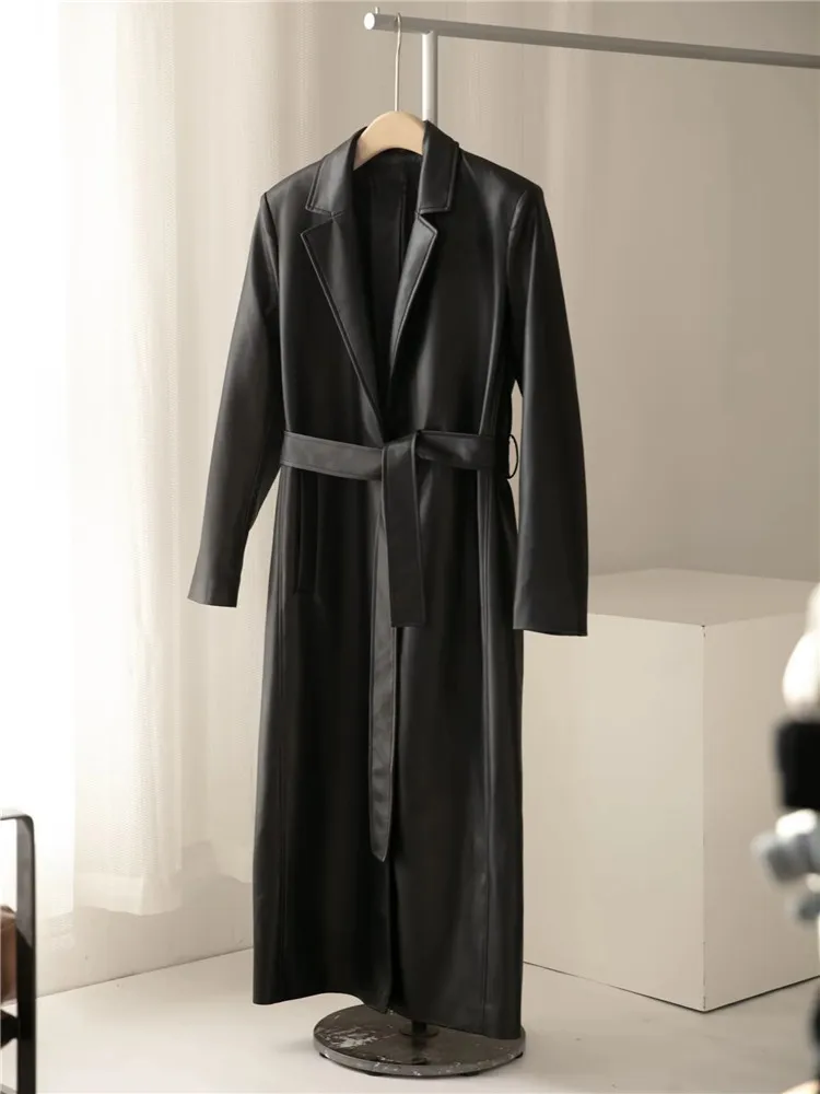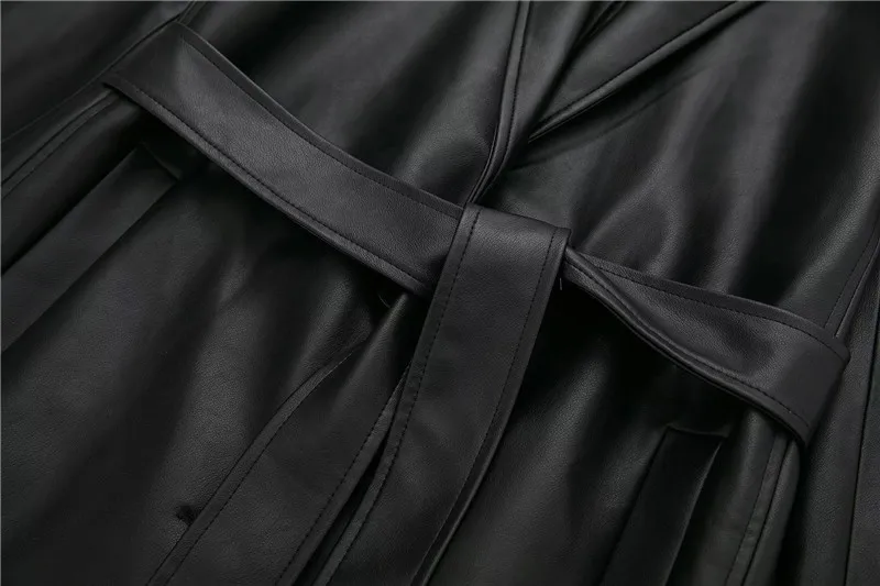 Yipinpay Black Trench Coat For Women Faux Leather Long Coat Women Winter 2023 Belt Elegant Woman Trench Coat Women's Windbreaker