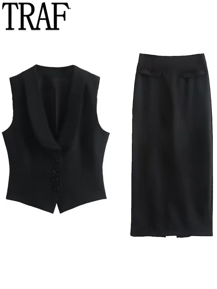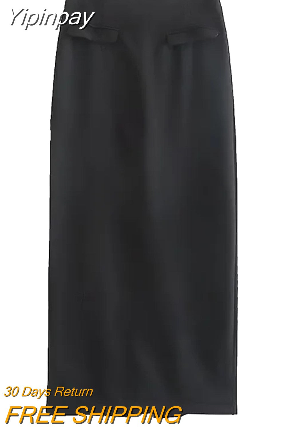 Yipinpay Black Vest Woman Cropped Women's Sleeveless Jacket Fashion Vests Sets Office Waistcoat Women Elegant Winter Short Coat