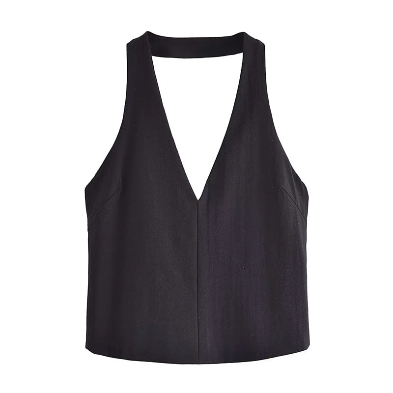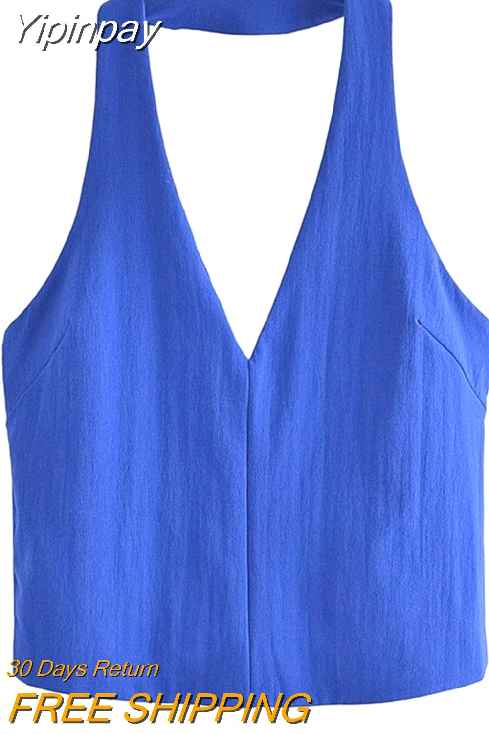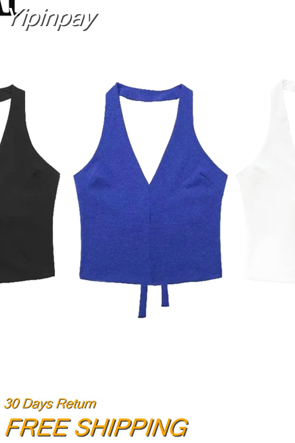 Yipinpay Black White Halter Top Female Tied Backless Crop Top Women Blue Sleeveless Sexy Tops Woman Fashion Off Shoulder Summer Tops