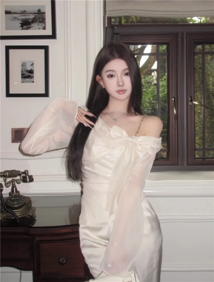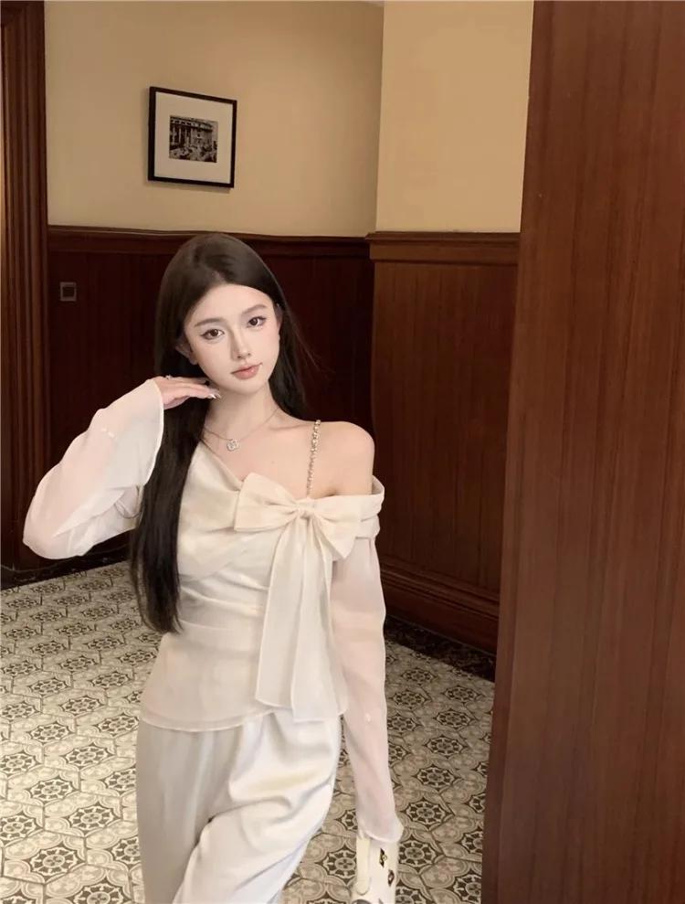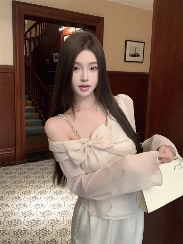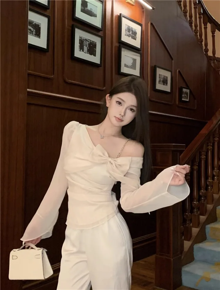 Yipinpay Blouse Women Bowknot Off Shoulder Flare Sleeve Elegant Fairy Slash Neck Spring Summer Tops Ladies Fashion Shirts Chic