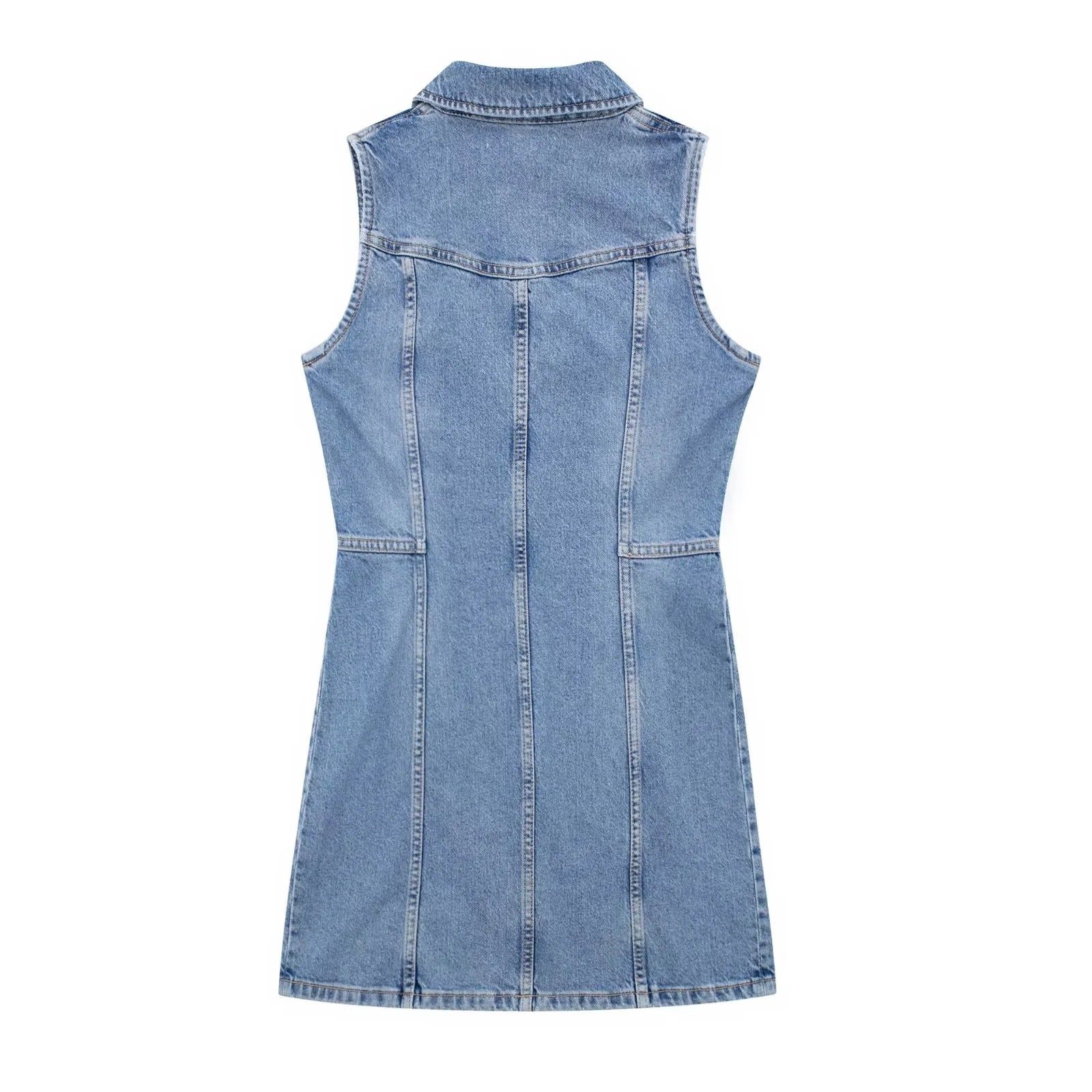 Yipinpay Blue Denim Dress Woman Sleeveless Short Dresses For Women Zip Up Jean Mini Dress 2023 Streetwear Casual Summer Dresses