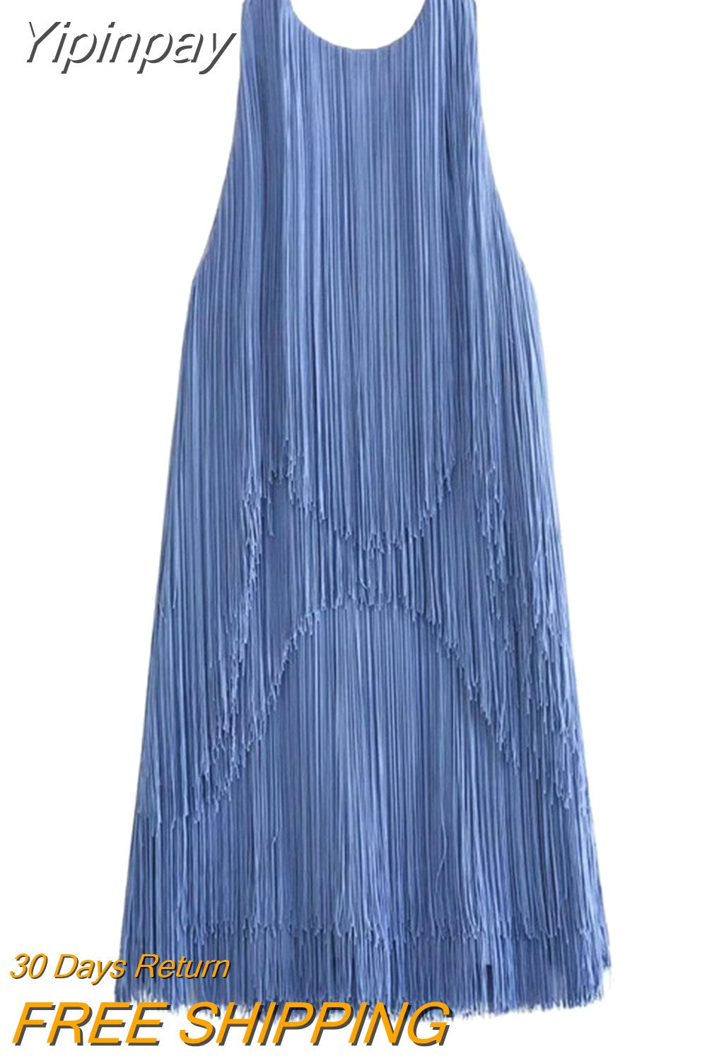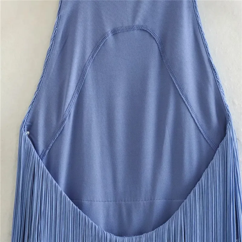 Yipinpay Blue Fringed Mini Dress Woman Halter Backless Dress Summer Sexy Short Dresses For Women 2023 Evening Party Dresses For Prom