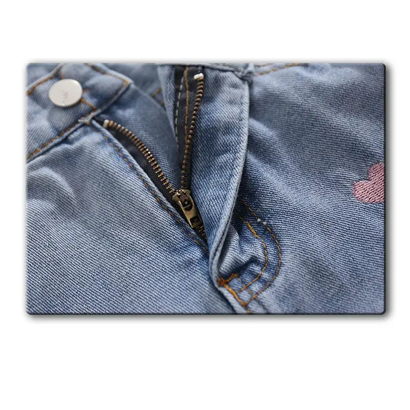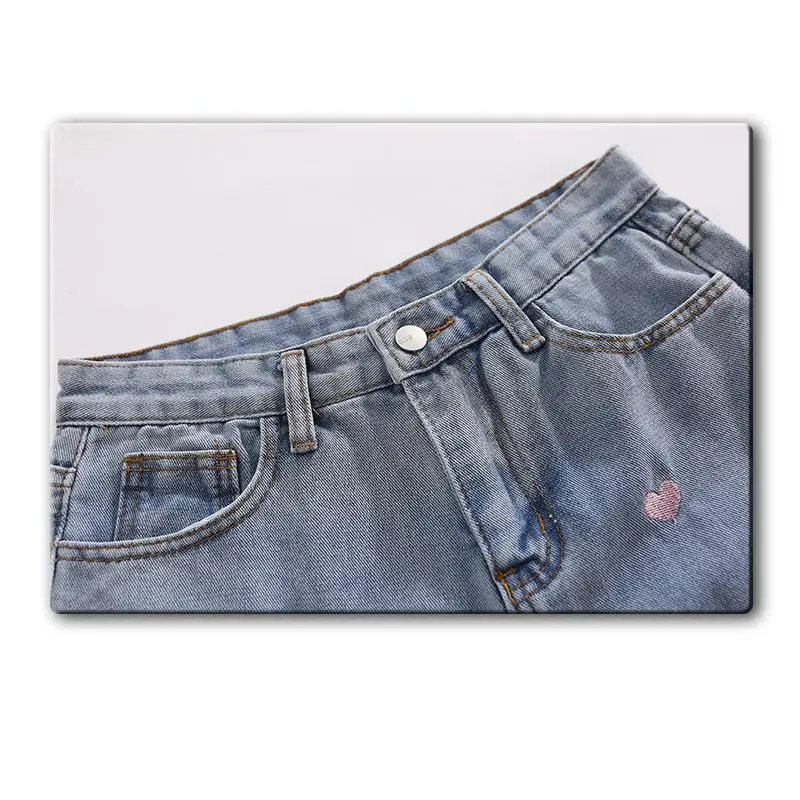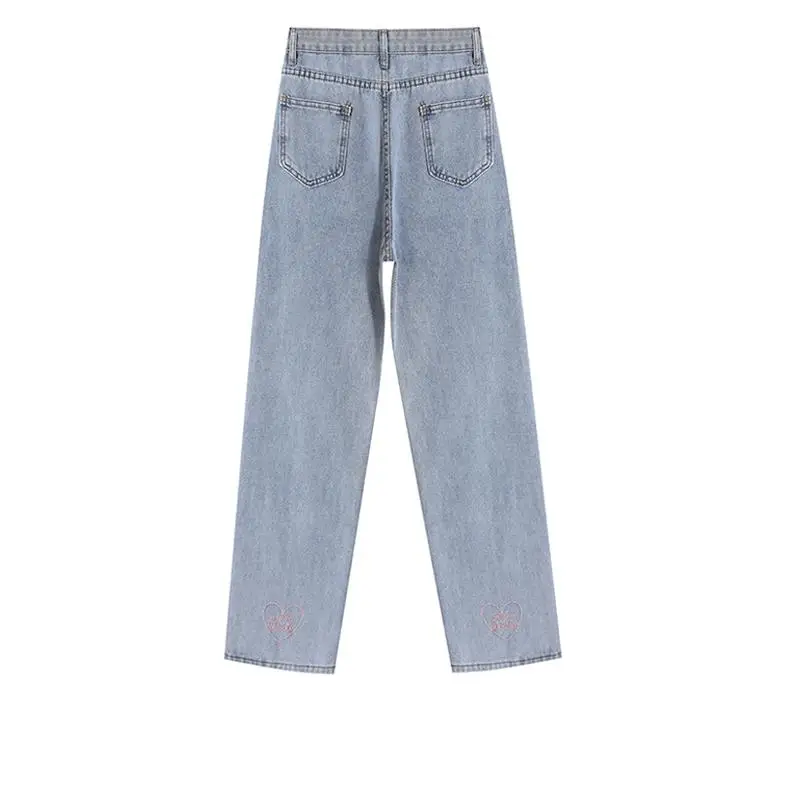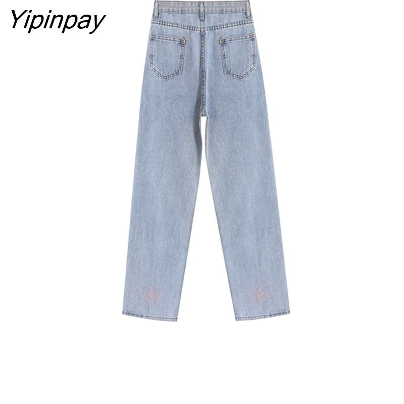 Yipinpay Blue Love Embroidery Wide Leg Jeans Woman Loose High Waist Loose Casual Straight Women Jeans Pants