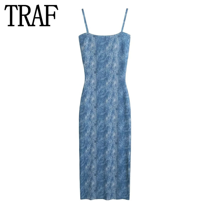 Yipinpay Blue Slip Bodycon Dress Women Print Midi Summer Dresses Woman 2023 Sexy Backless Long Dress Women Night Party Dresses