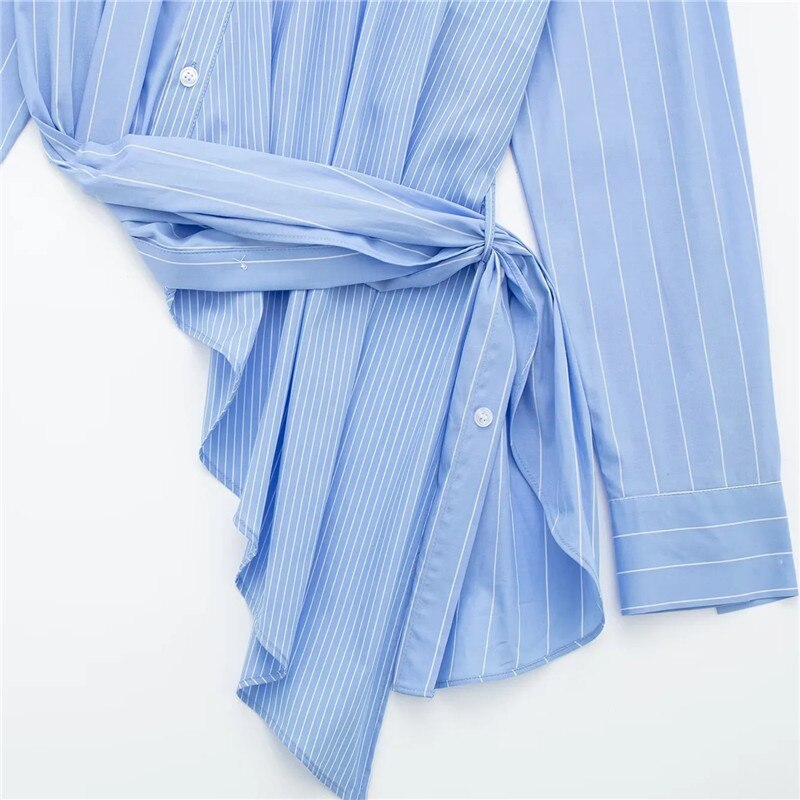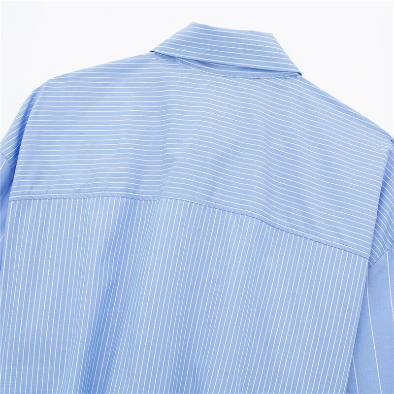Yipinpay Blue Striped Shirt Woman Asymmetric Crop Top Women Long Sleeve Button Up Shirt Woman Fashion Streetwear Chic Woman Blouse