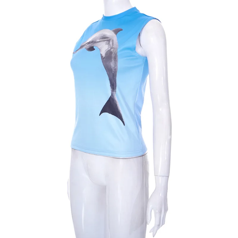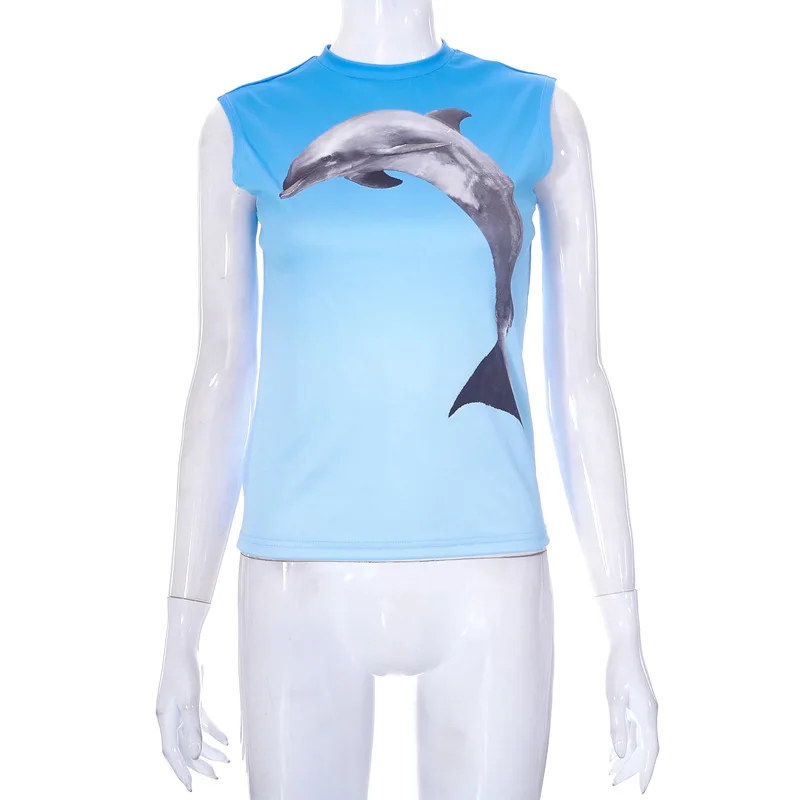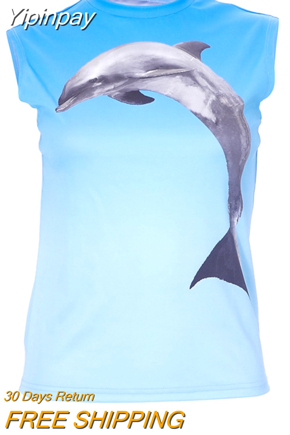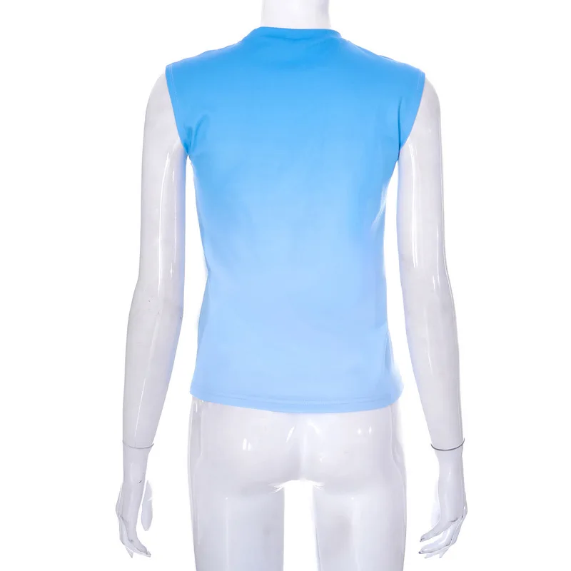 Yipinpay Blue Tank Top Women Clothing Summer 2023 Casual Concise O-Neck Sleeveless Slim Tops Fashion Vest Streetwear