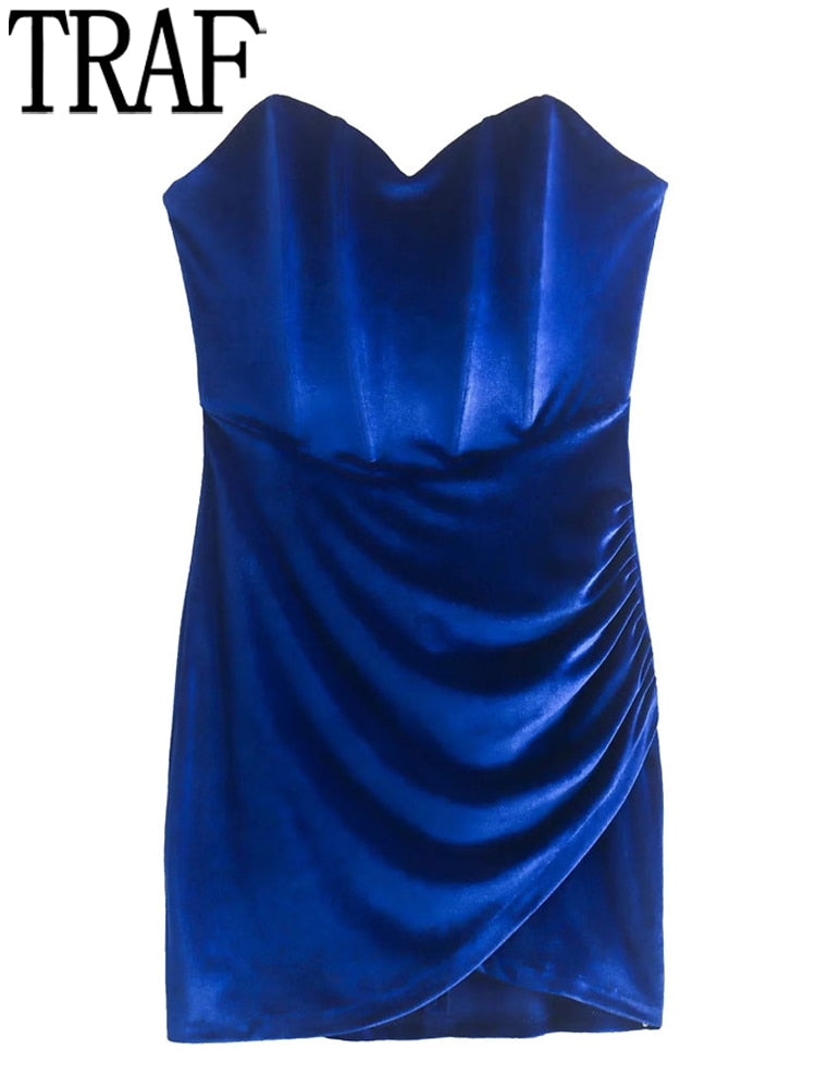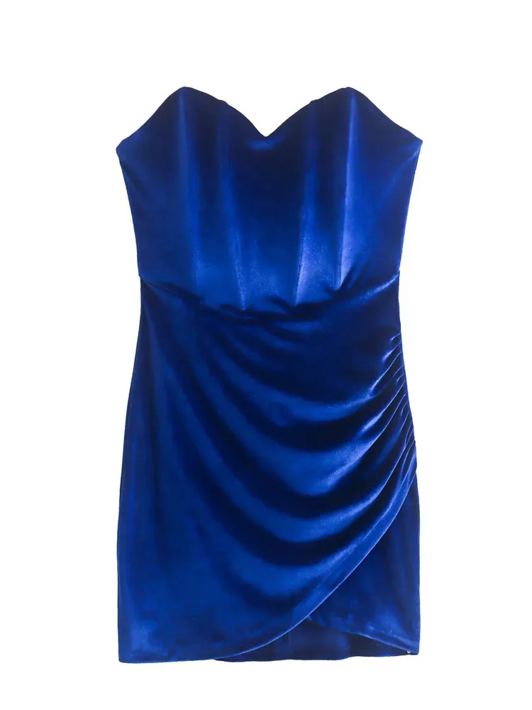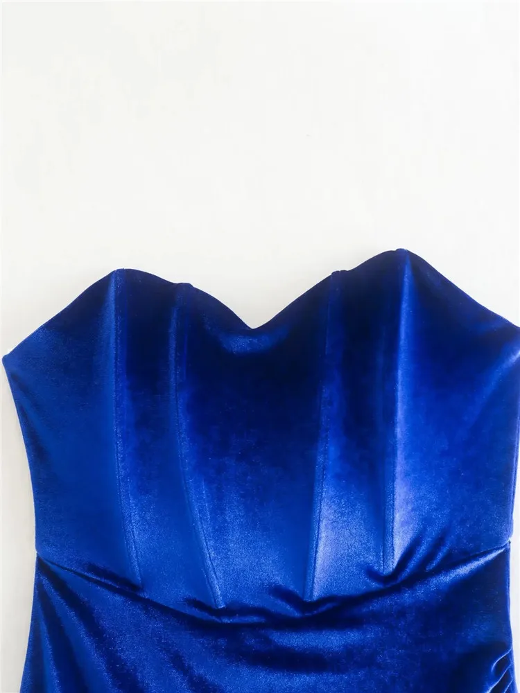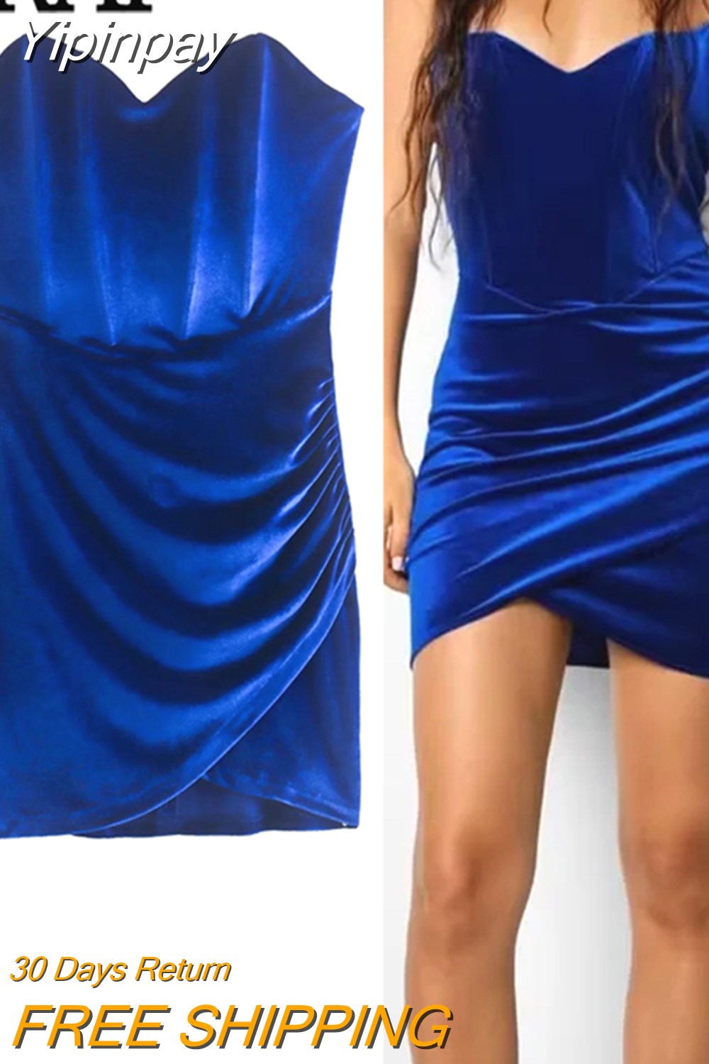 Yipinpay Blue Velvet Dress Women Off Shoulder Corset Dress Woman Backless Sexy Short Dresses Ruched Evening Party Dresses For Women