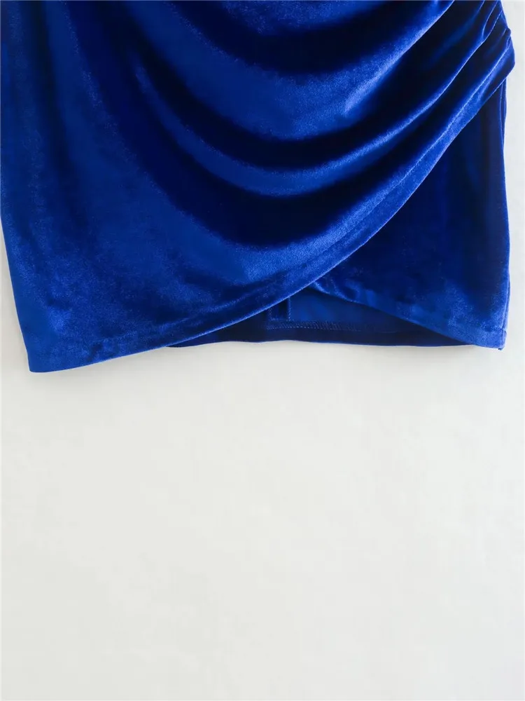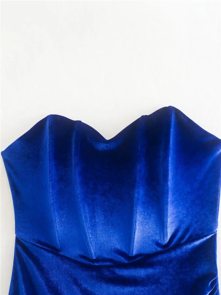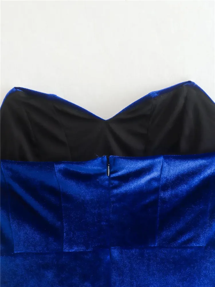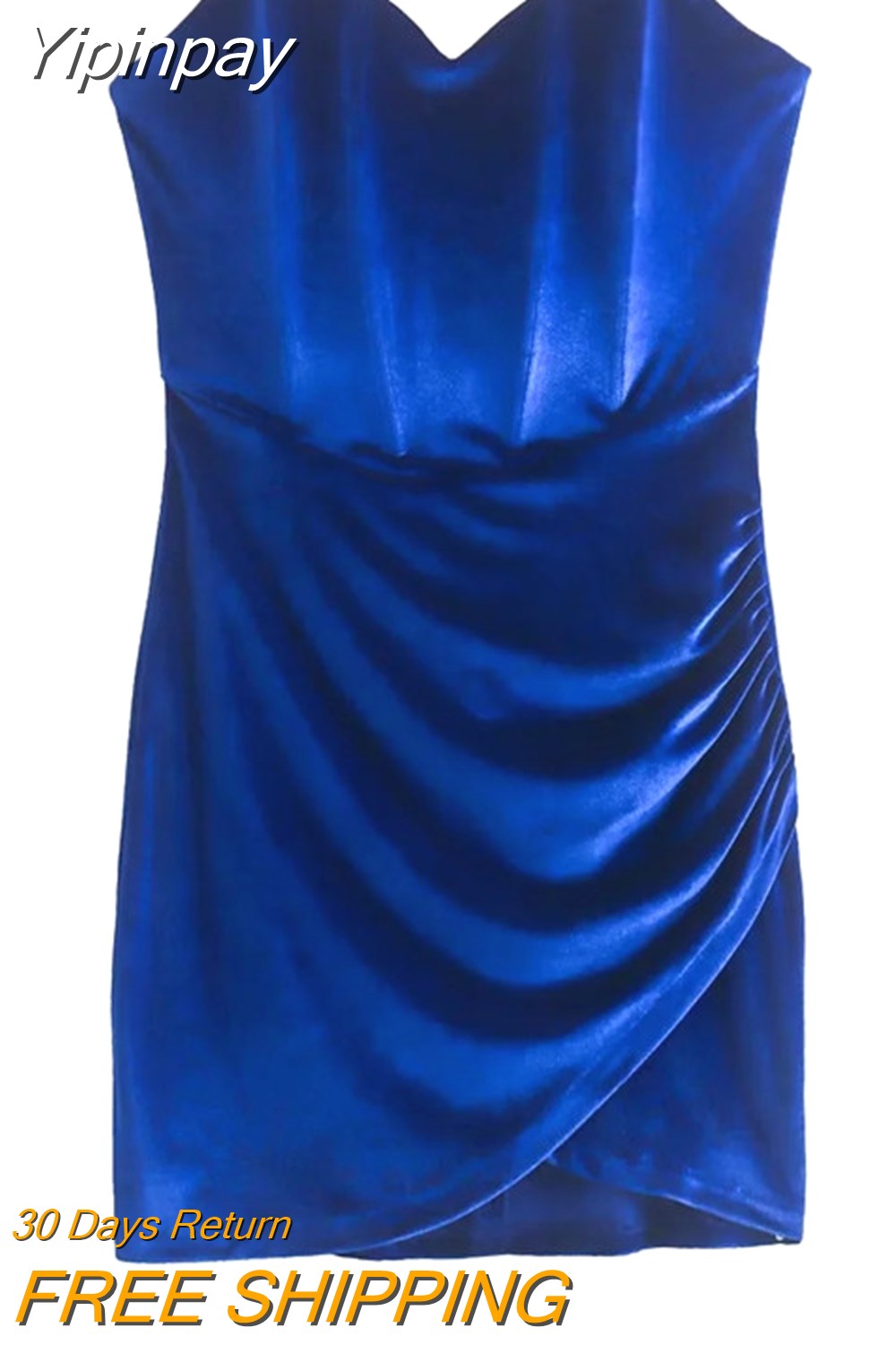 Yipinpay Blue Velvet Dress Women Off Shoulder Corset Dress Woman Backless Sexy Short Dresses Ruched Evening Party Dresses For Women