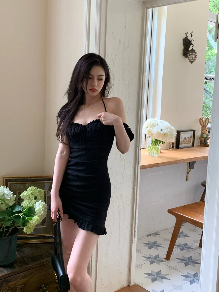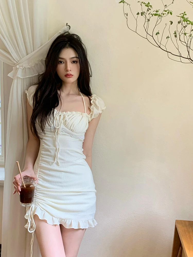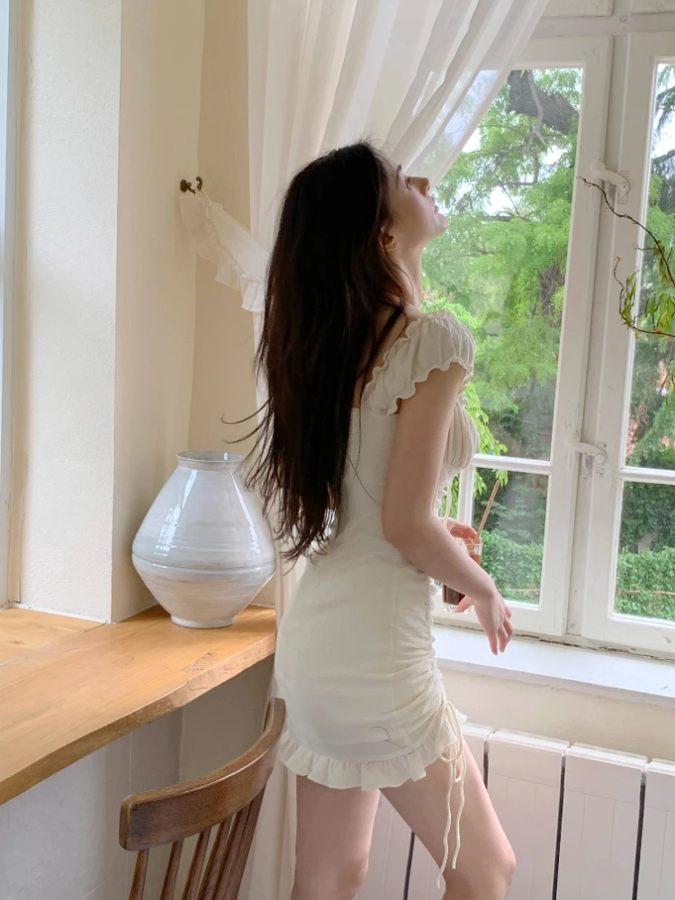 Yipinpay Bodycon Mini Dress Pure Color Short Sleeve Dress Woman Casual Evening Party One Piece Dress Korean Elegant 2023 Summer Slim