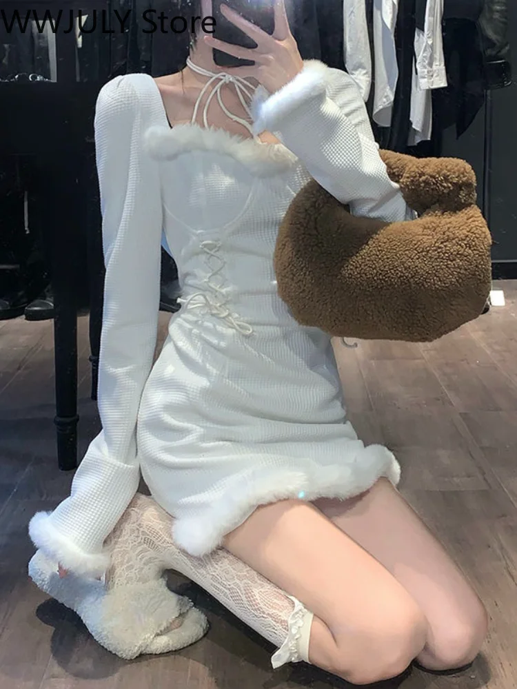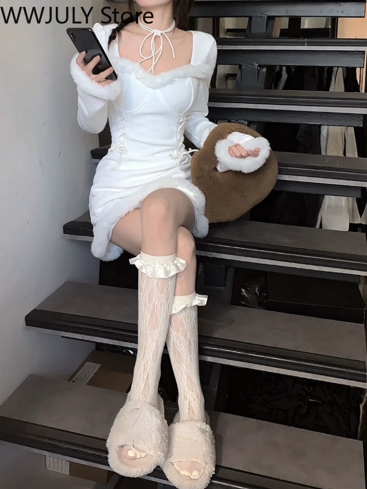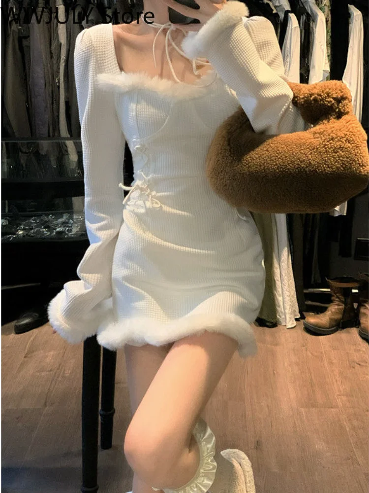 Yipinpay Bodycon Sweater Dress Woman Korean Fashion 2023 Spring Long Sleeve Knitted Mini Dress Sweet Slim Evening Party Dress Female