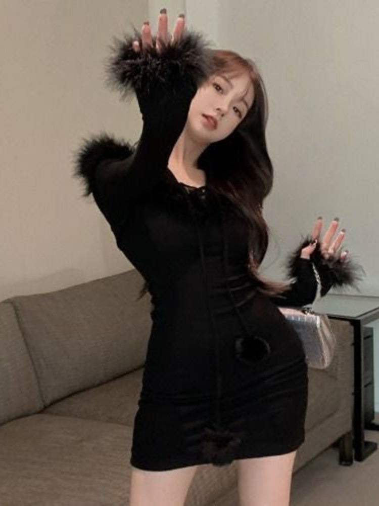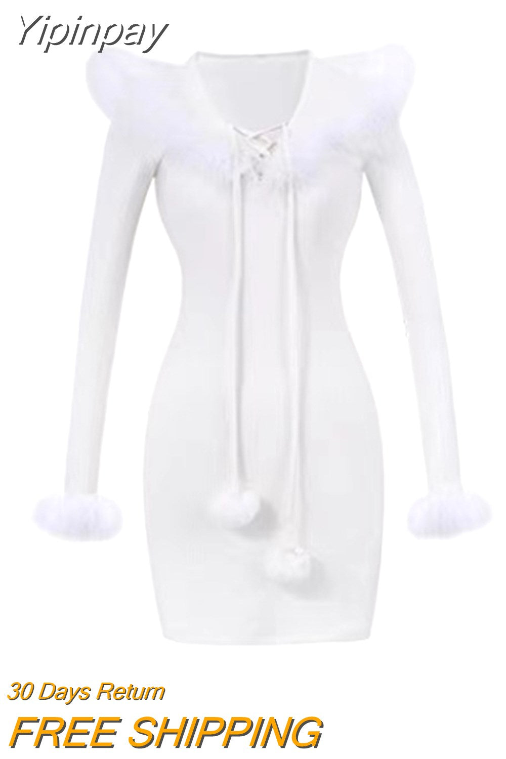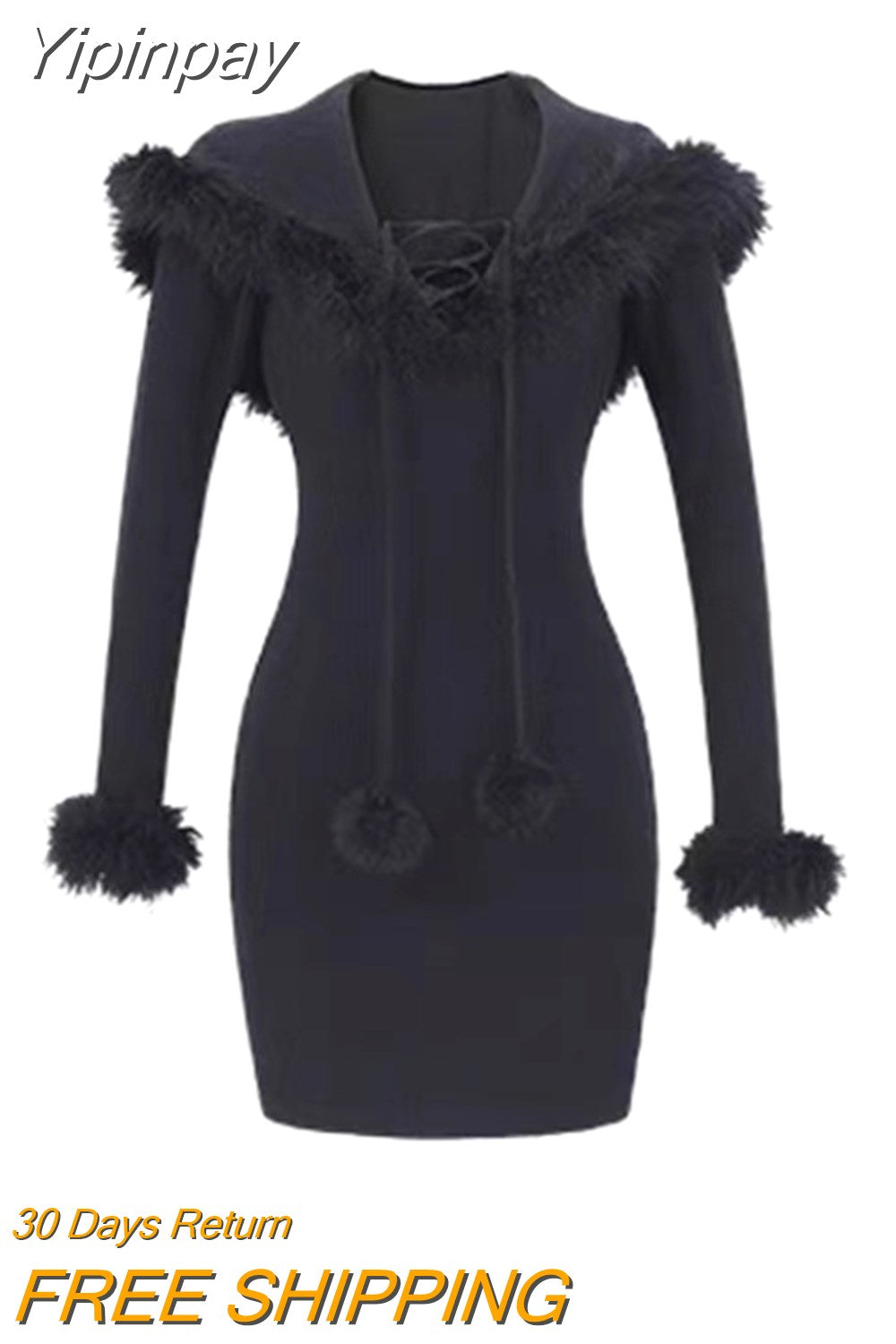 Yipinpay Bodycon Y2k Mini Dress Party 2023 Winter Pure Color One Piece Dress Korean Fashion Slim French Elegant Casual Dress Design