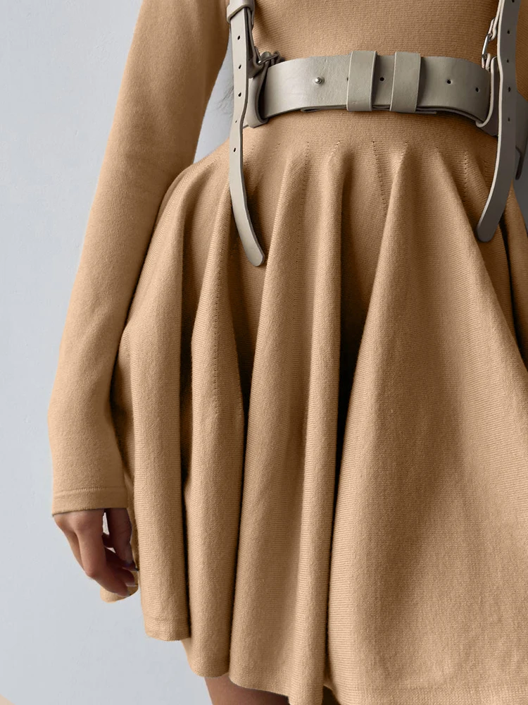 Yipinpay Bodycon Y2k Mini Dress Women Long Sleeve O Neck Tight Sexy Chic Pleated Sweater Skirt Winter Basic Female Knit Jumper