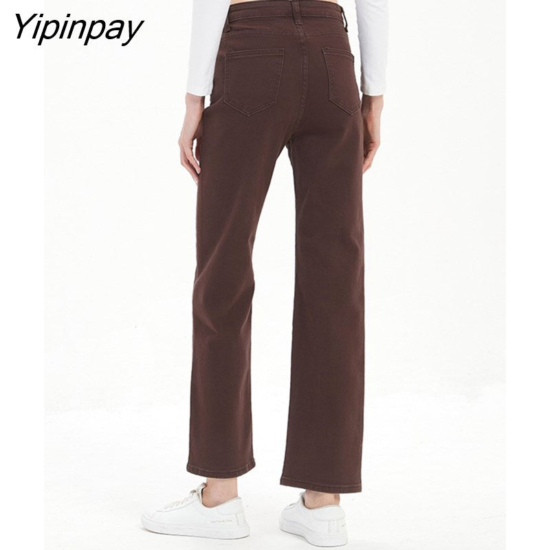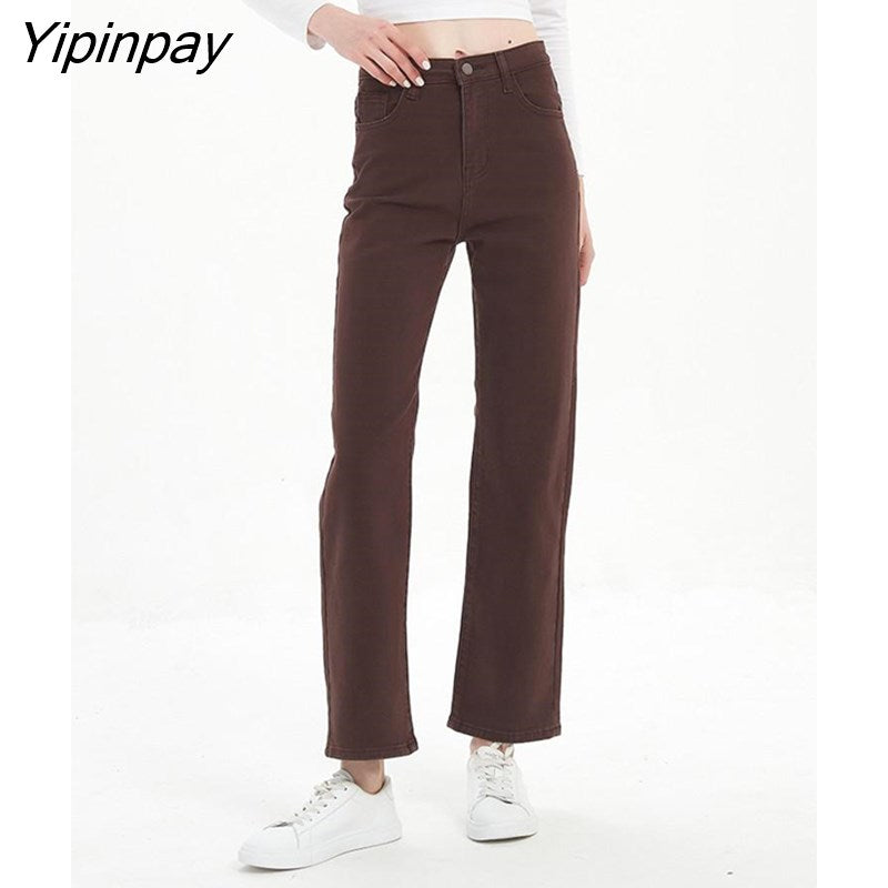 Yipinpay Brown Vintage Baggy Jeans Women 2023 Spring Casual Streetwear Wash Elastic Denim Striaght Jeans Ladies Pants
