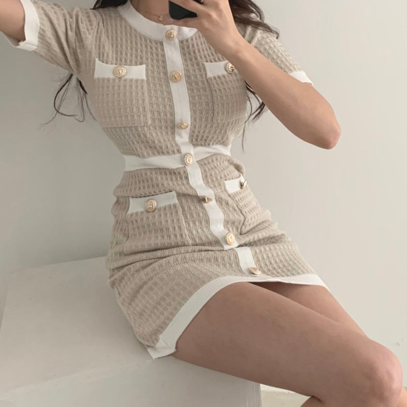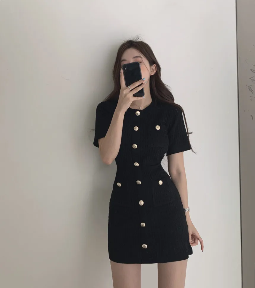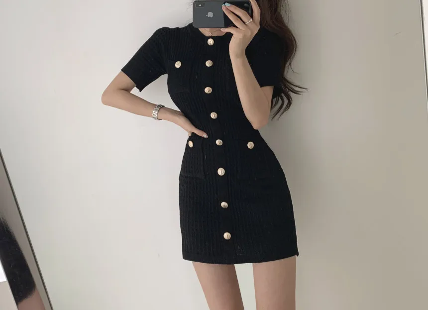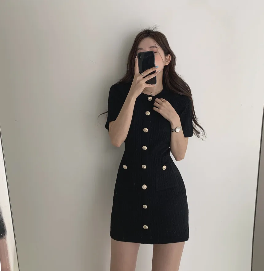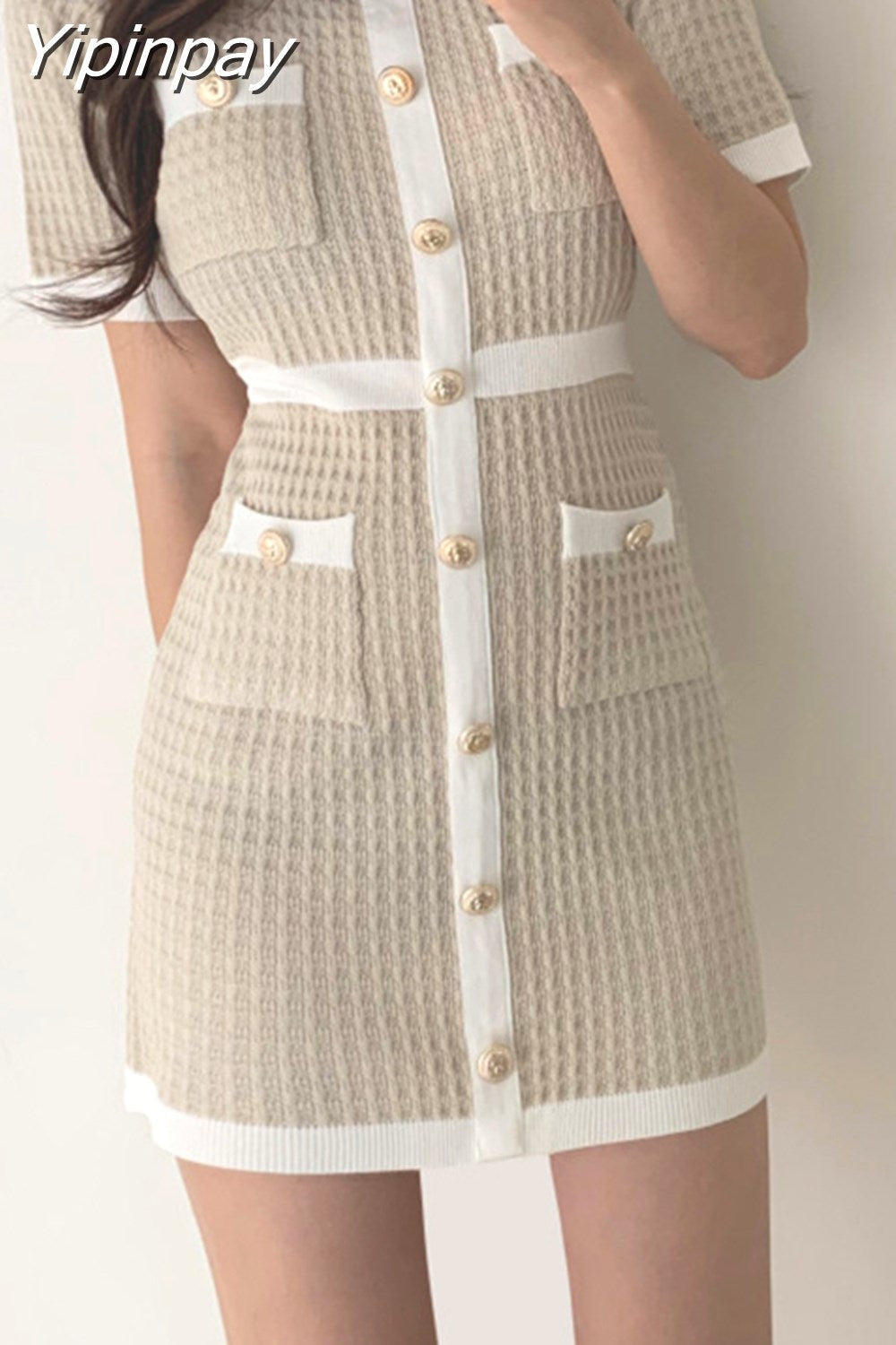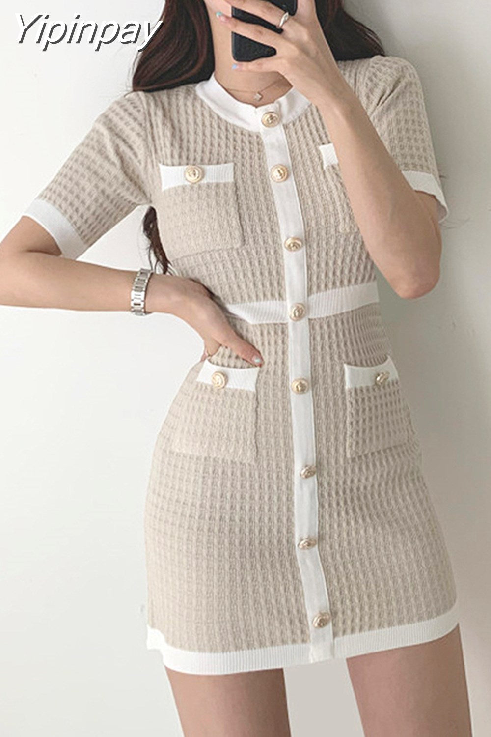Yipinpay Button Knitted Dress Sexy Mini O-Neck Vestido Curto Korean Summer Party Elegant Black Sweet Spring 2023 vetement femme